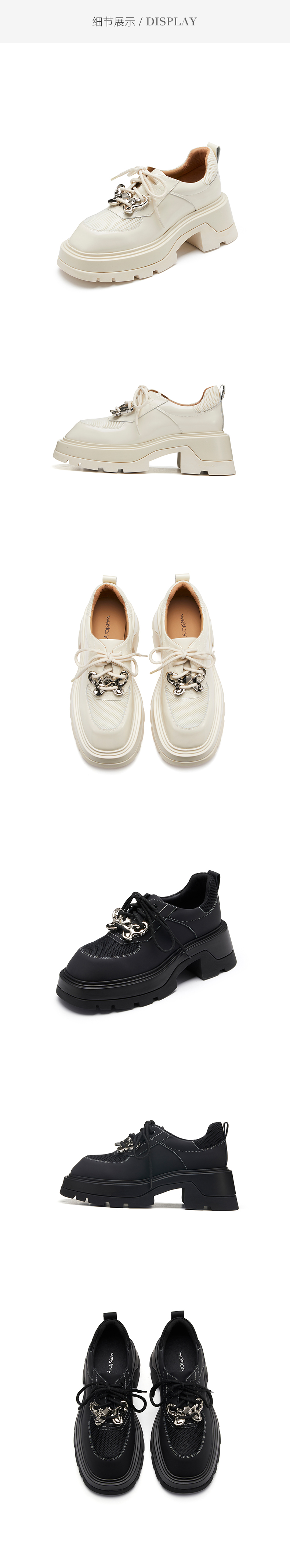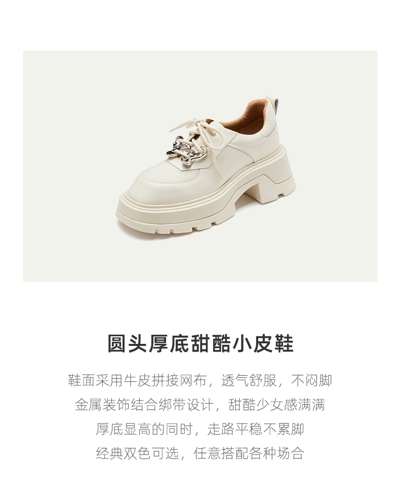 westory23年春新款复古美式金属扣学院乐福鞋小个子厚底增高55451