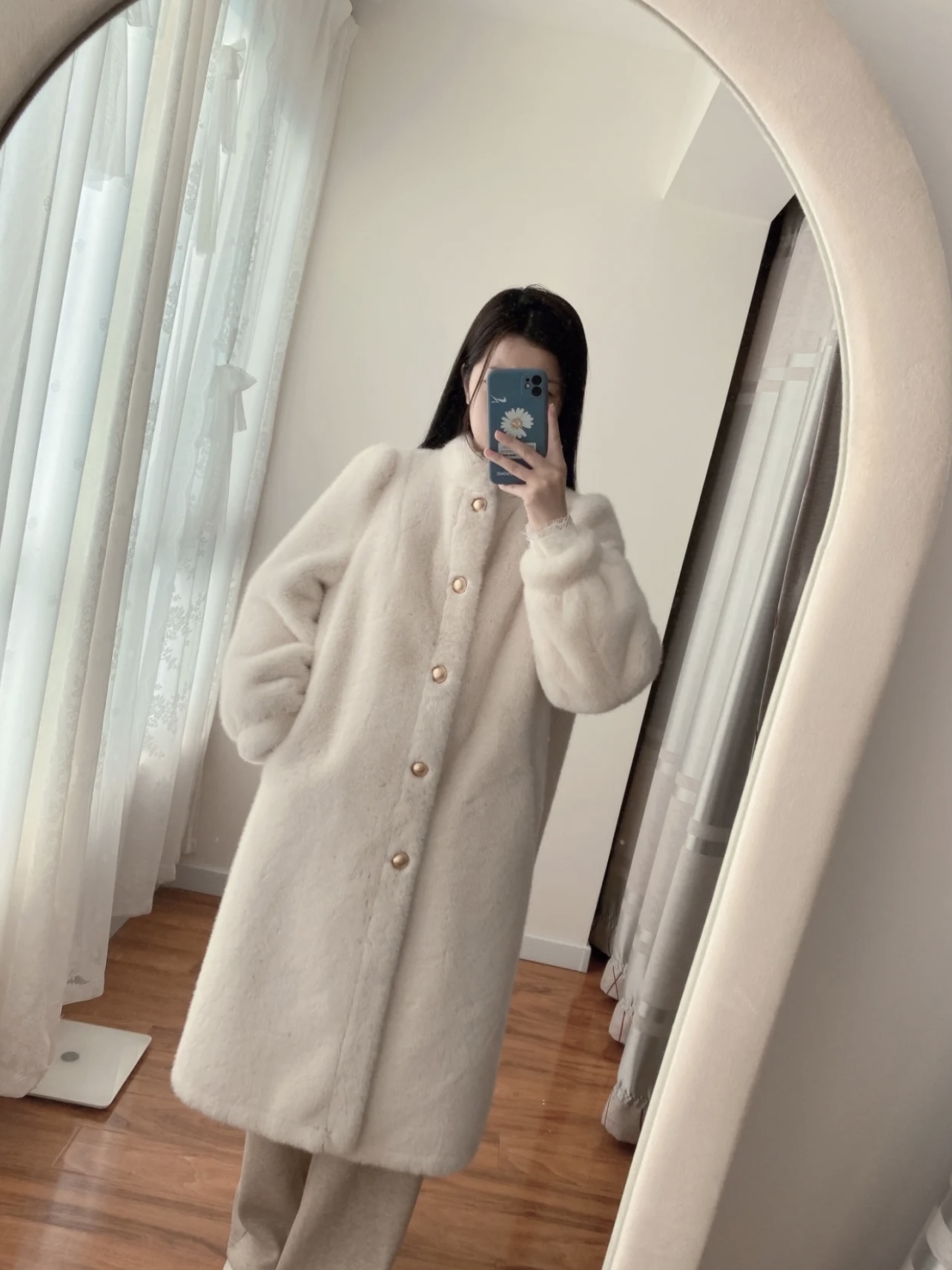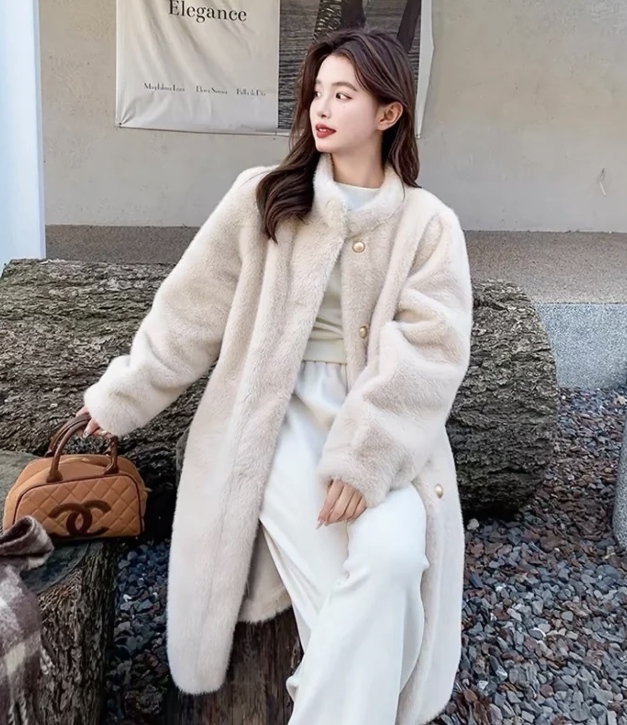 【反季清仓福利】仿水貂绒皮草一体长款外套 加厚皮毛 环保皮草大衣 气质百搭,穿出高级感