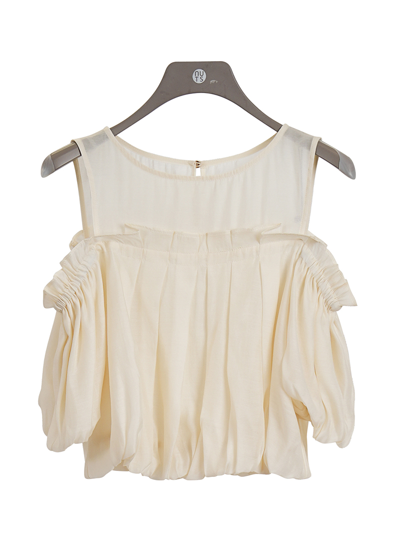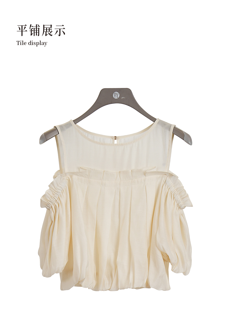 NUTS商场同款夏季设计感小众气质露肩短袖套头衬衫423011082