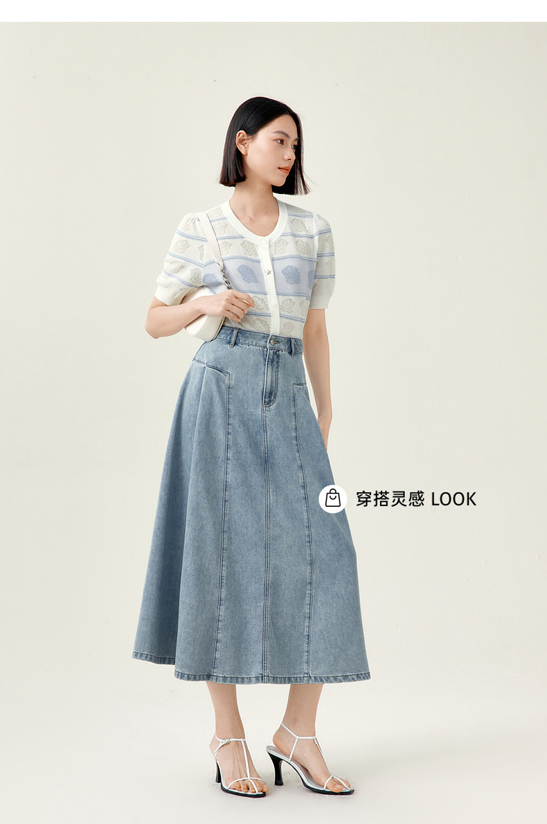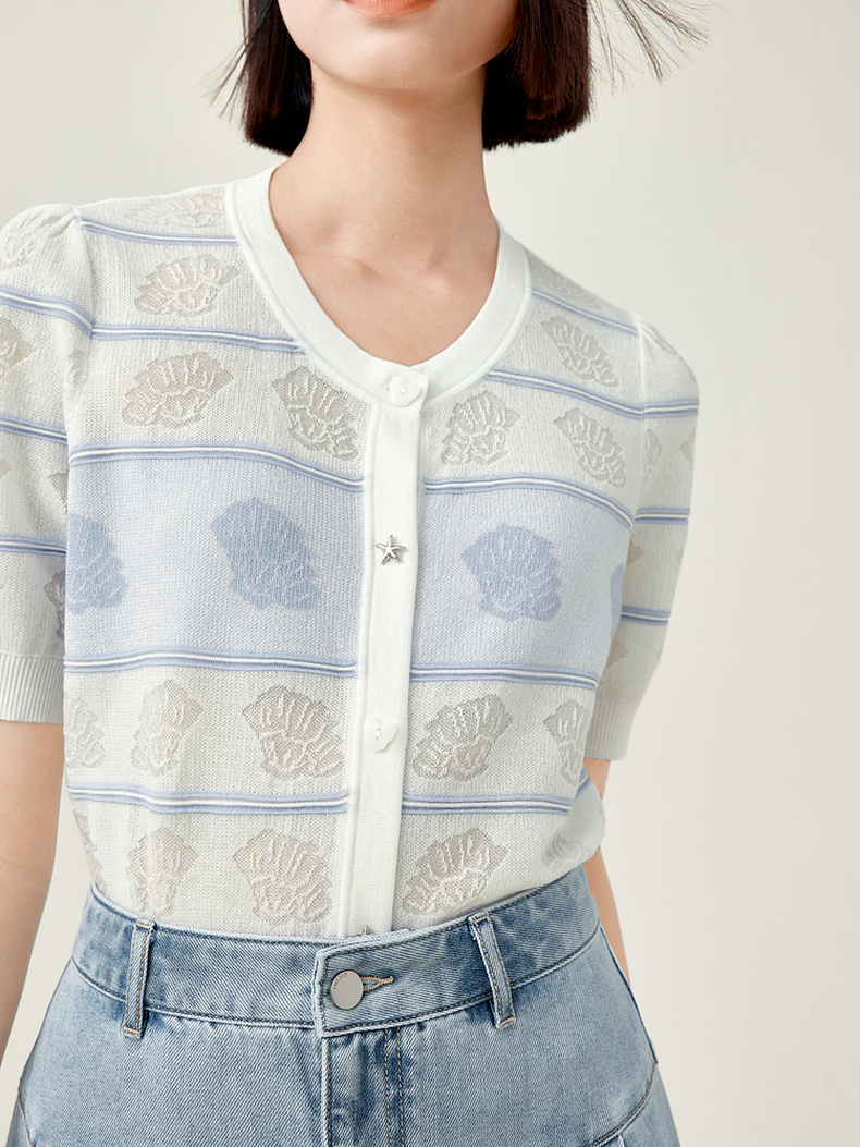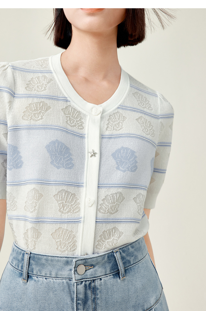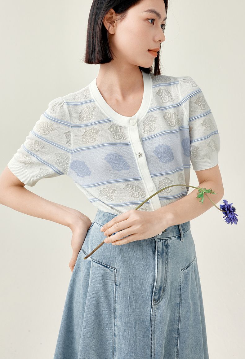 【商场同款】伊芙丽夏冰点蓝莱赛尔三醋酸舒适开衫1F6230781G