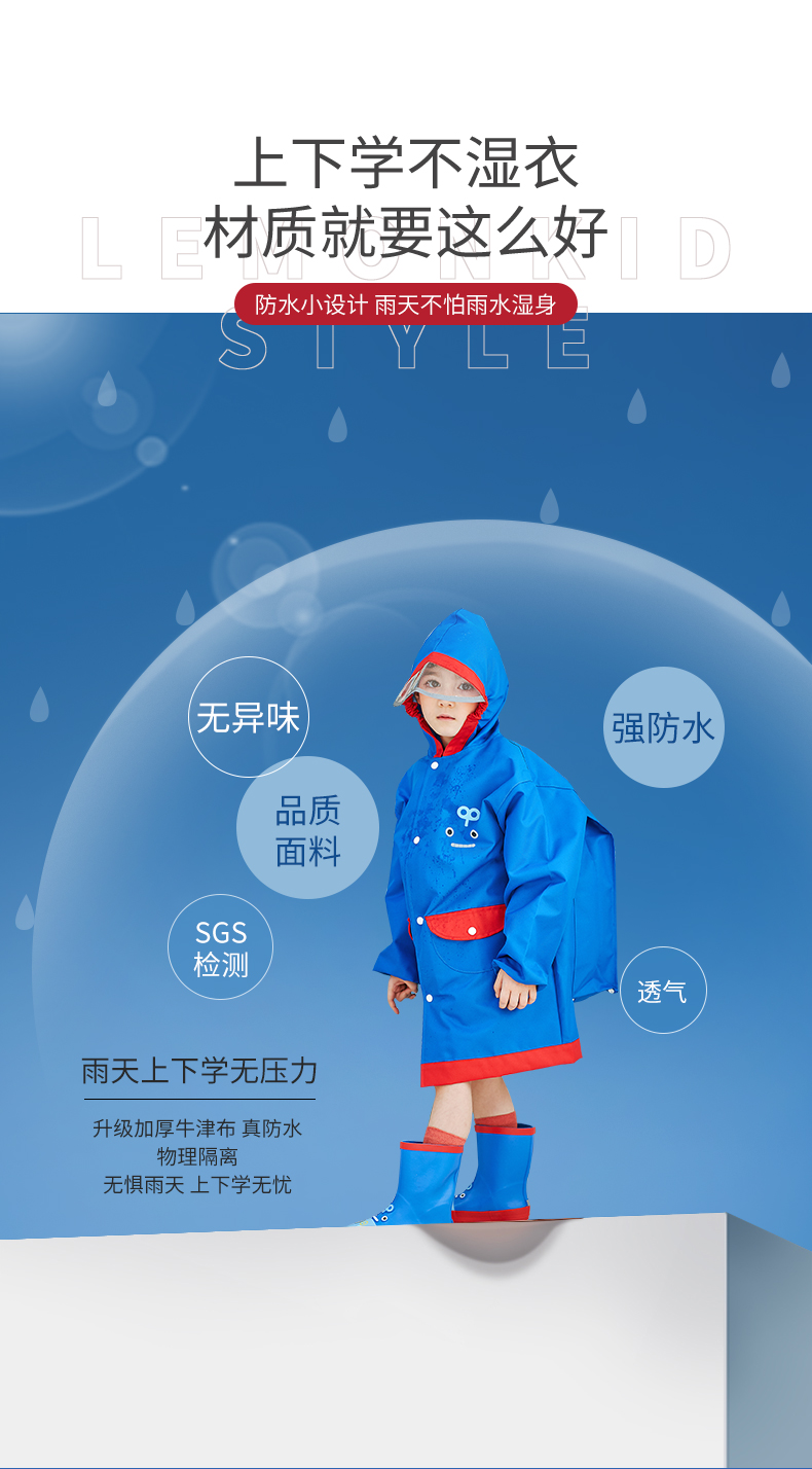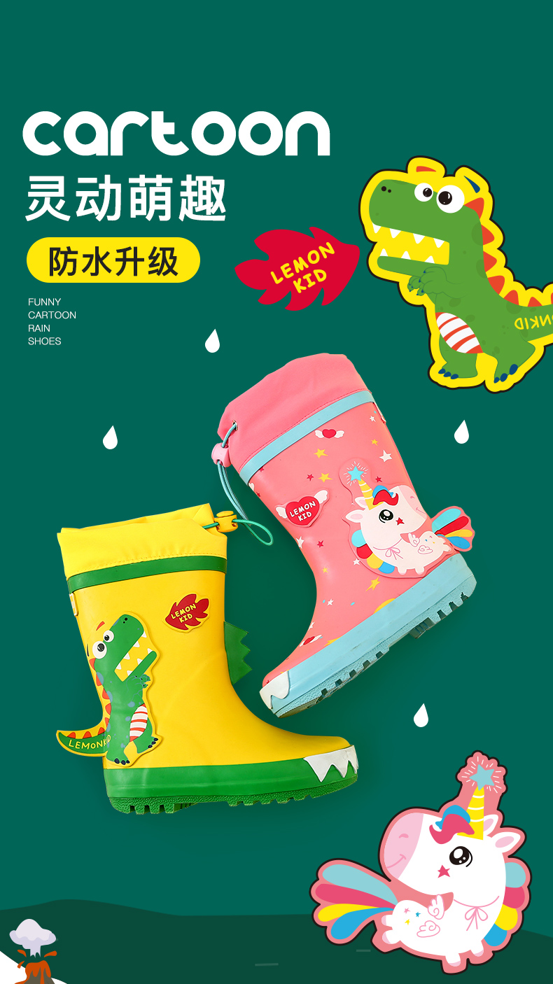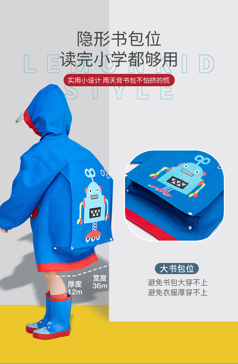 【团品】Lemonkid柠檬宝宝立体卡通造型雨鞋/经典款+书包位雨衣