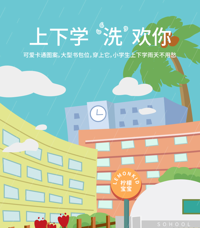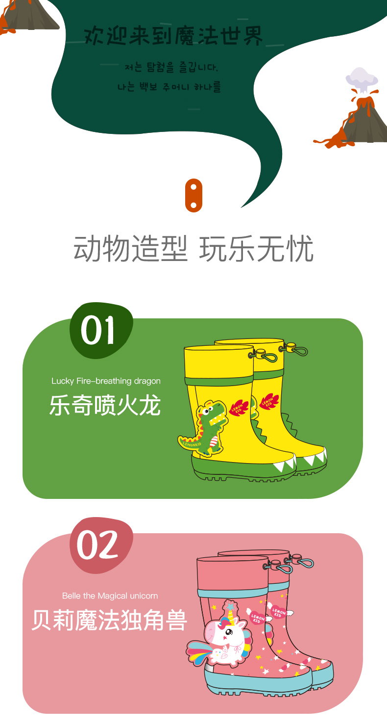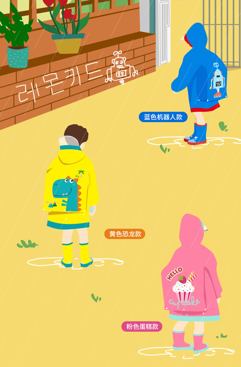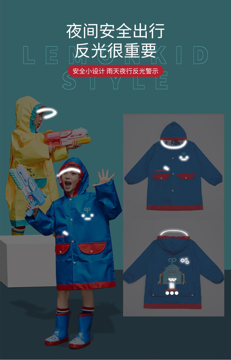 【团品】Lemonkid柠檬宝宝立体卡通造型雨鞋/经典款+书包位雨衣
