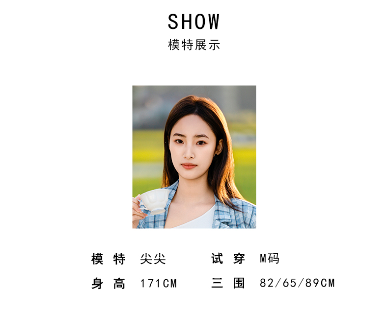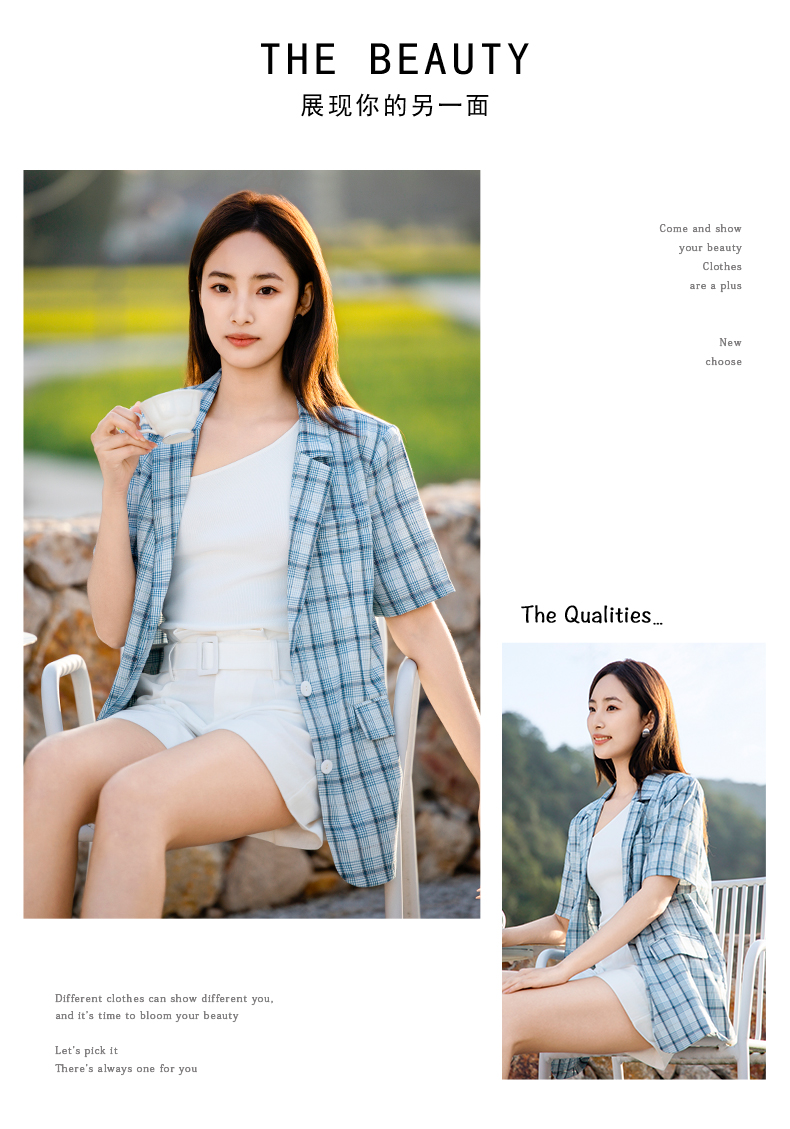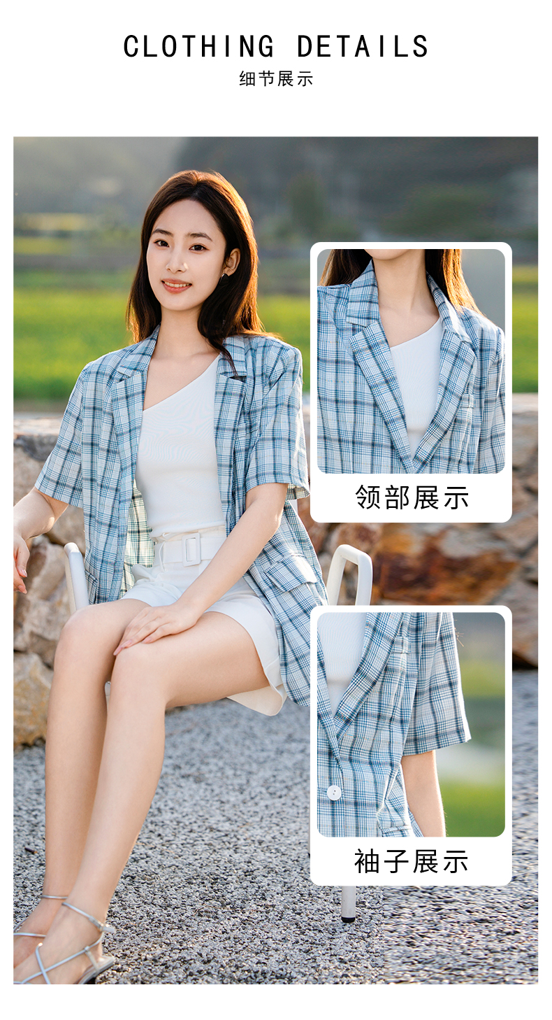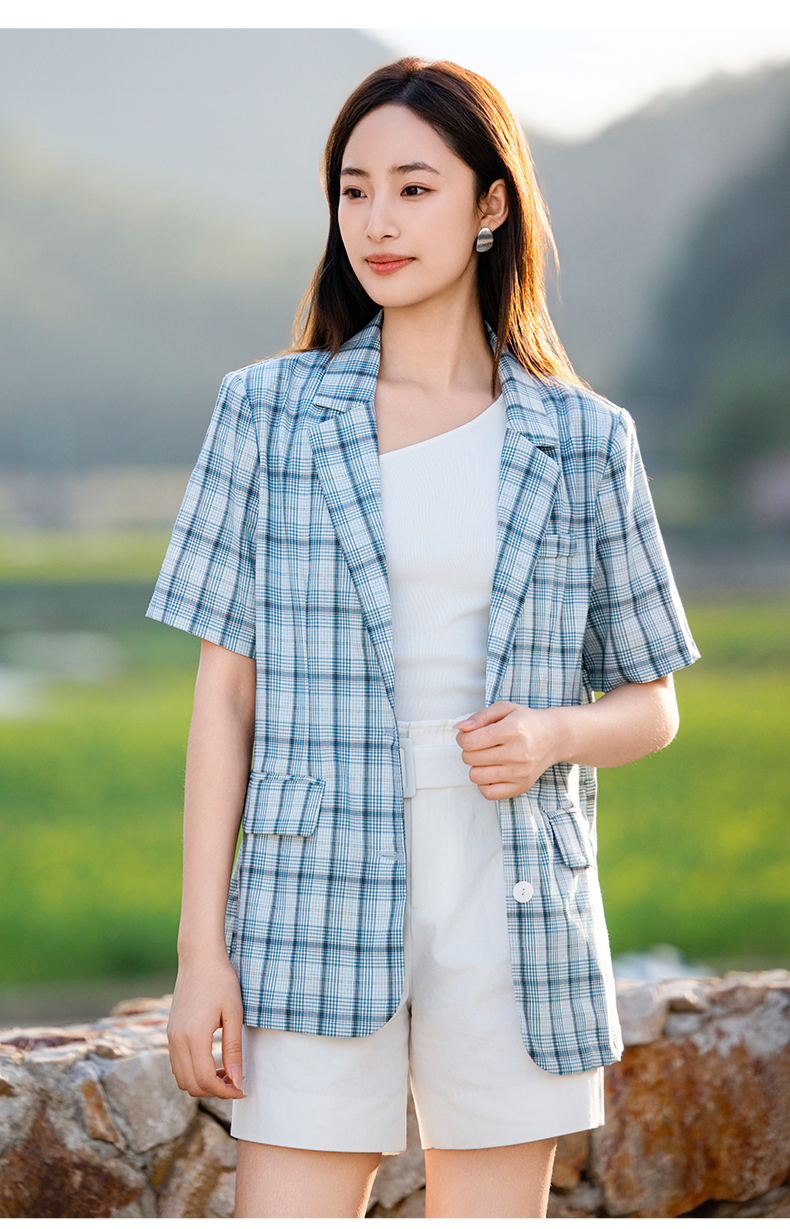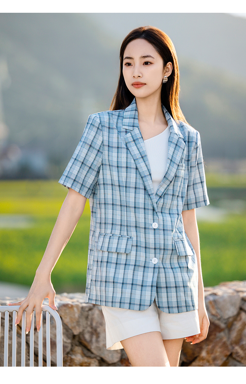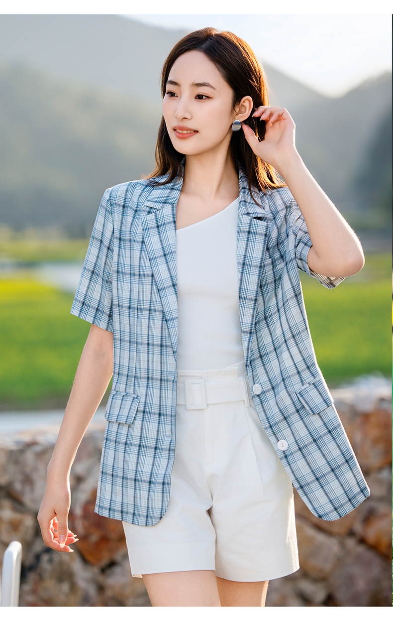 NUTS夏季时尚休闲西装领短袖修身格子外套女221048341