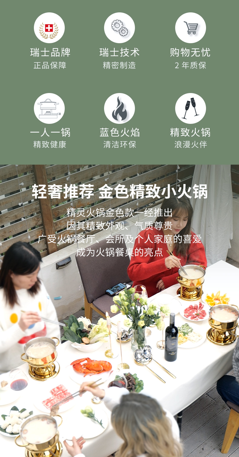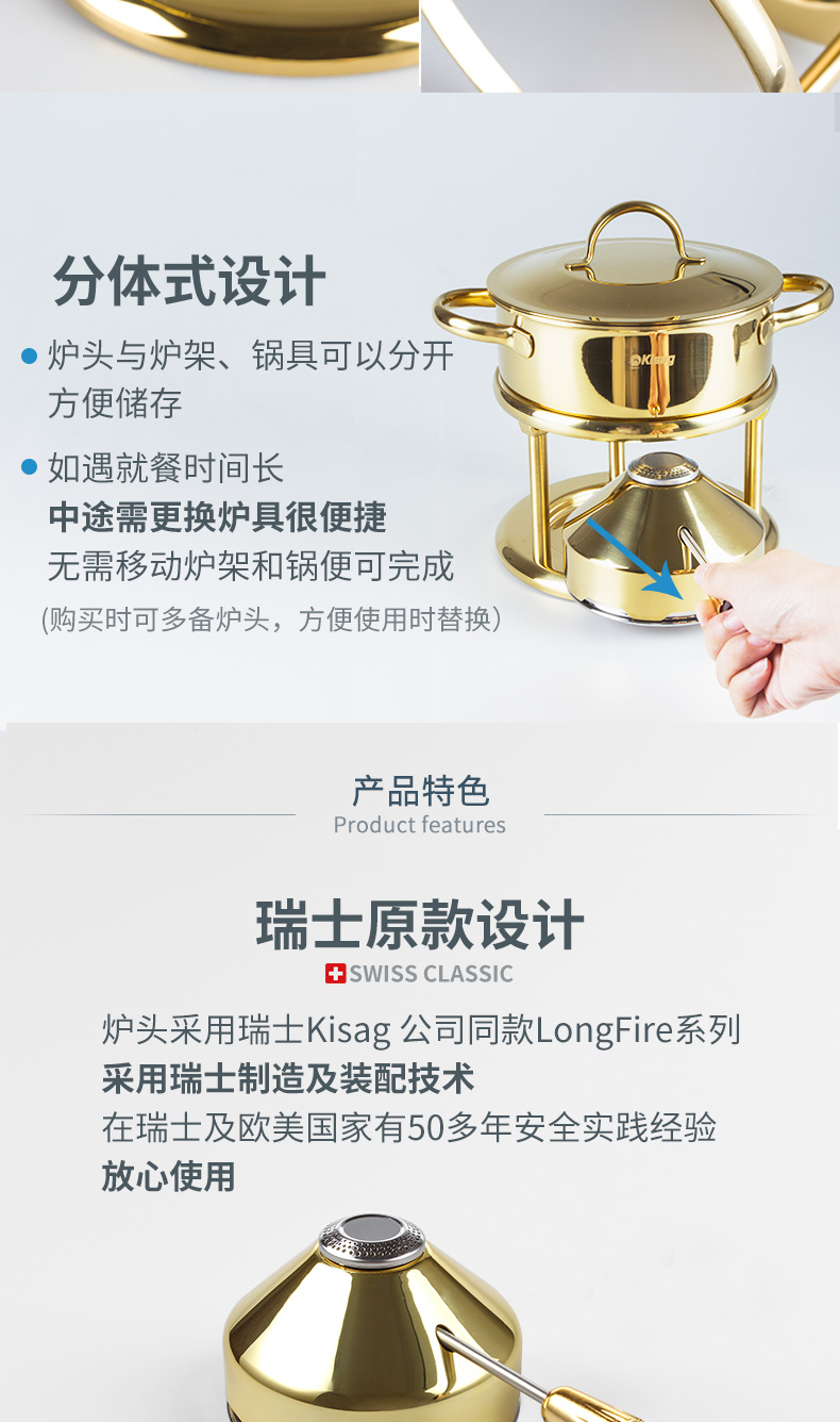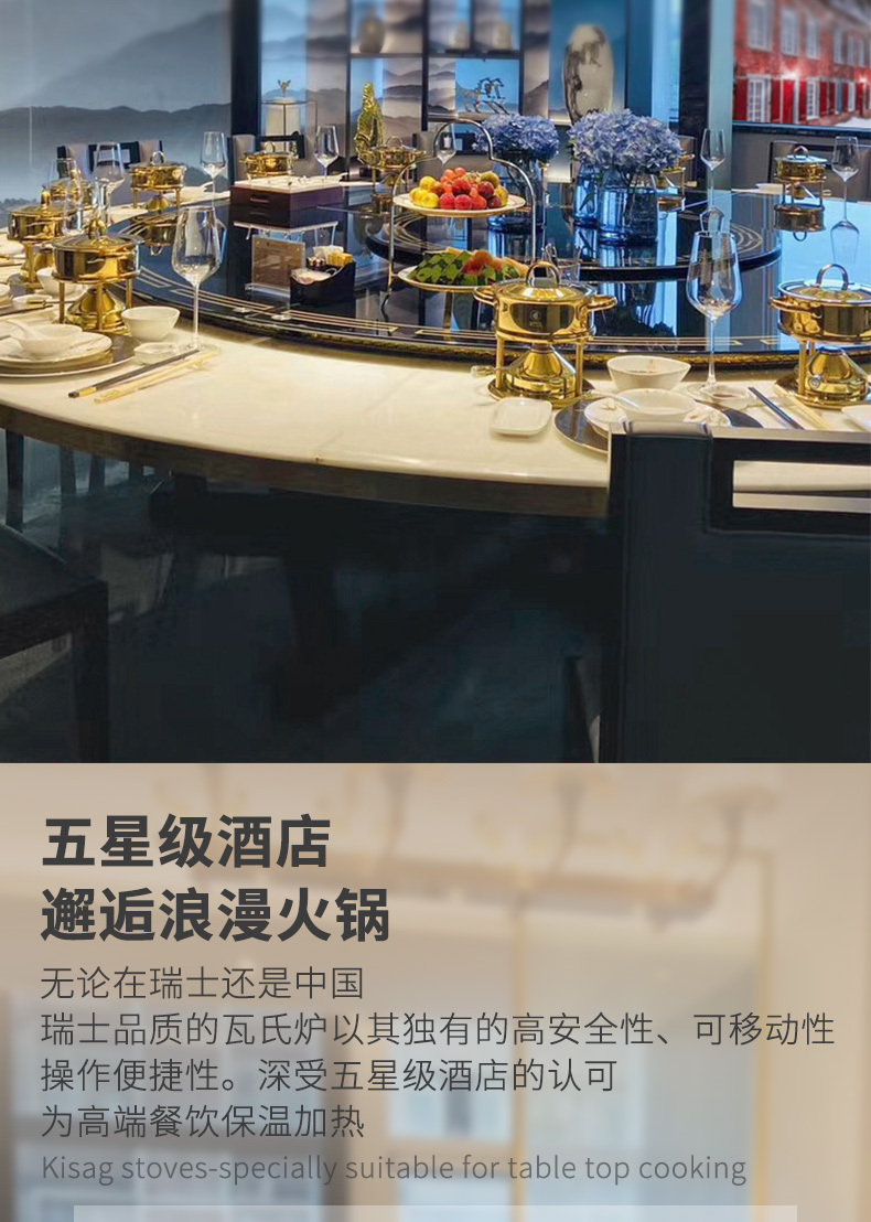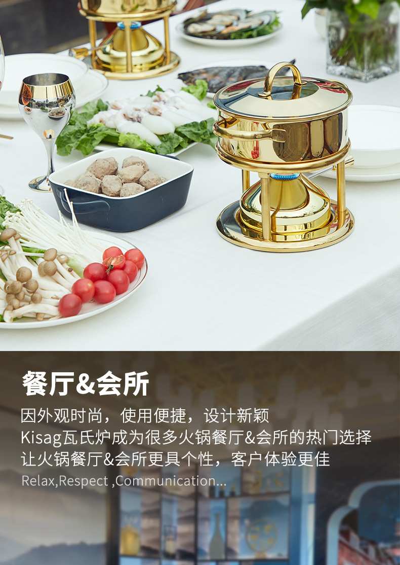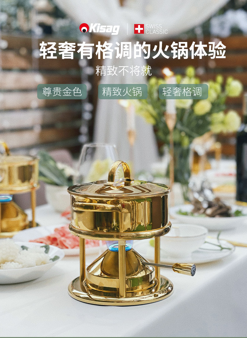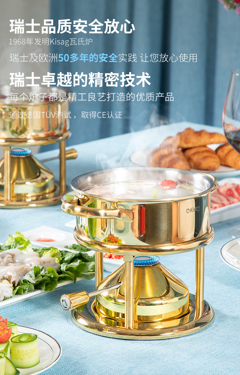 瑞士Kisag金色单人小火锅家用/酒店/会所 燃气小火锅炉