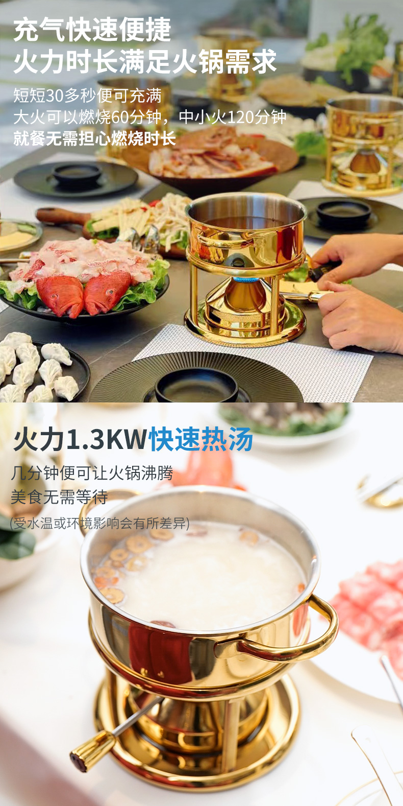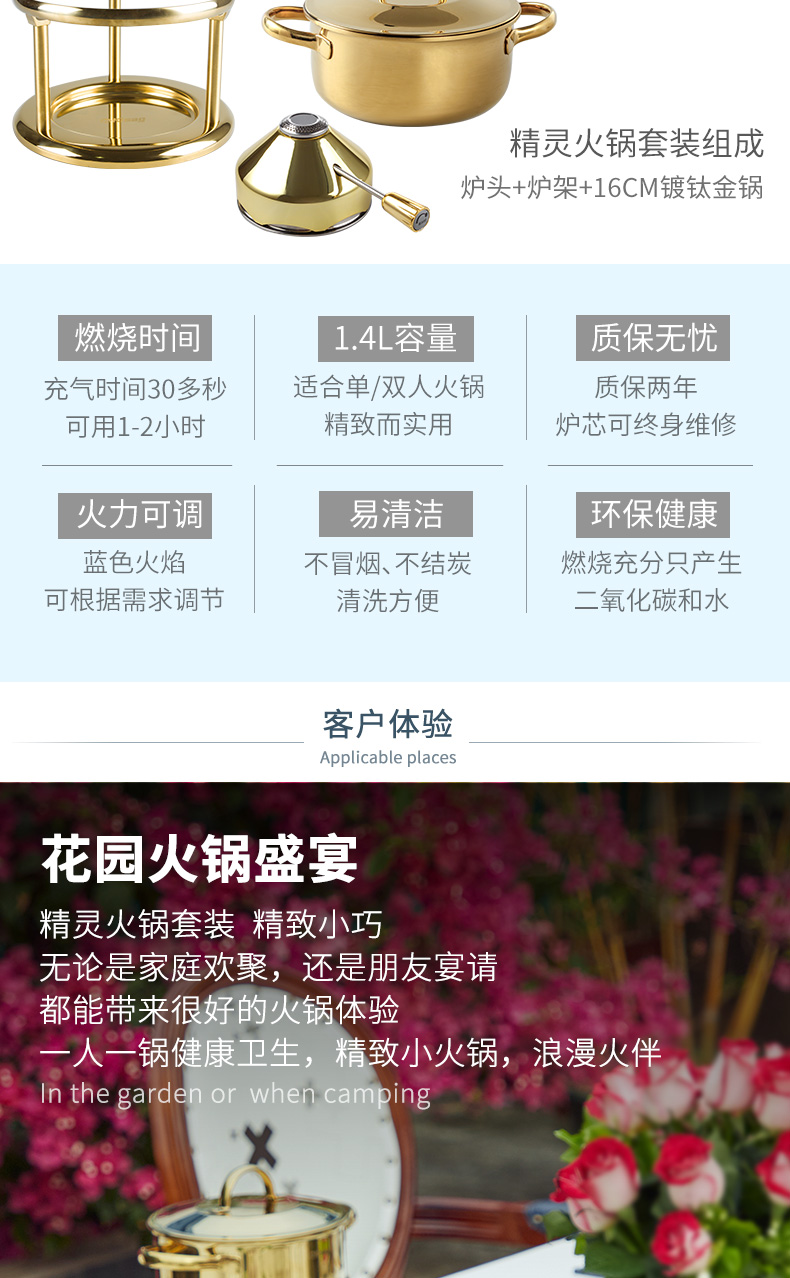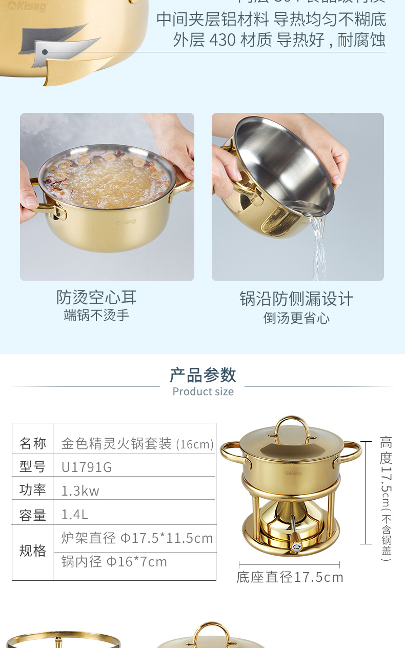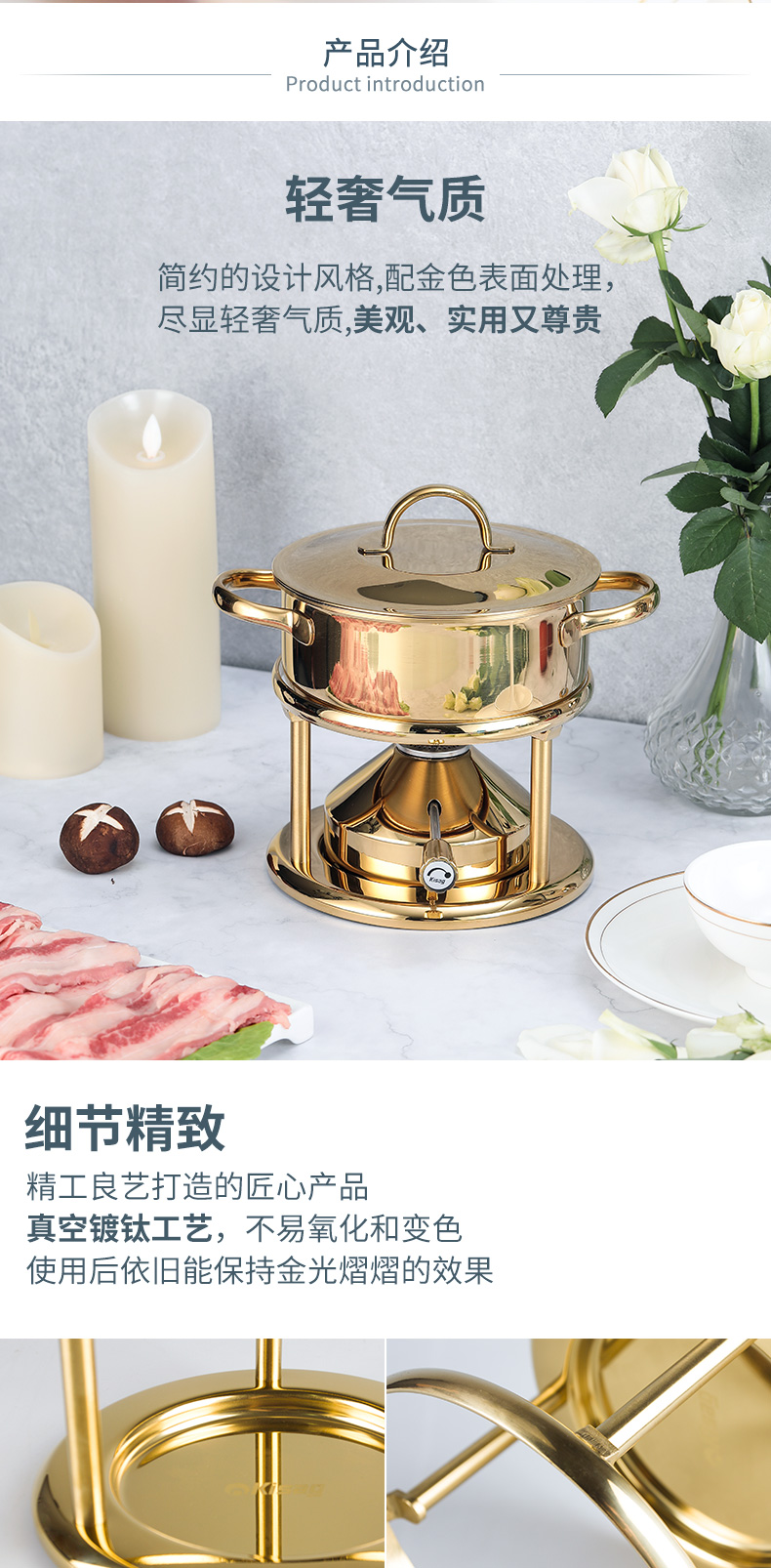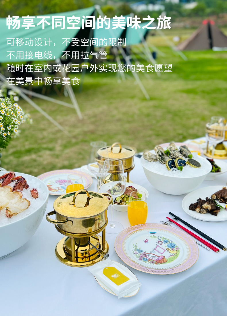 瑞士Kisag金色单人小火锅家用/酒店/会所 燃气小火锅炉