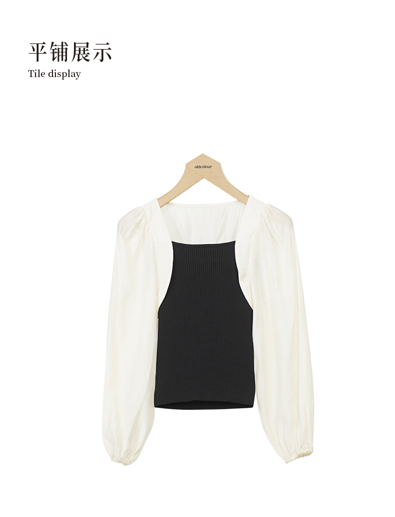 oldcolour法式拼接衬衫秋季新款设计感百搭修身上衣女GO31013021