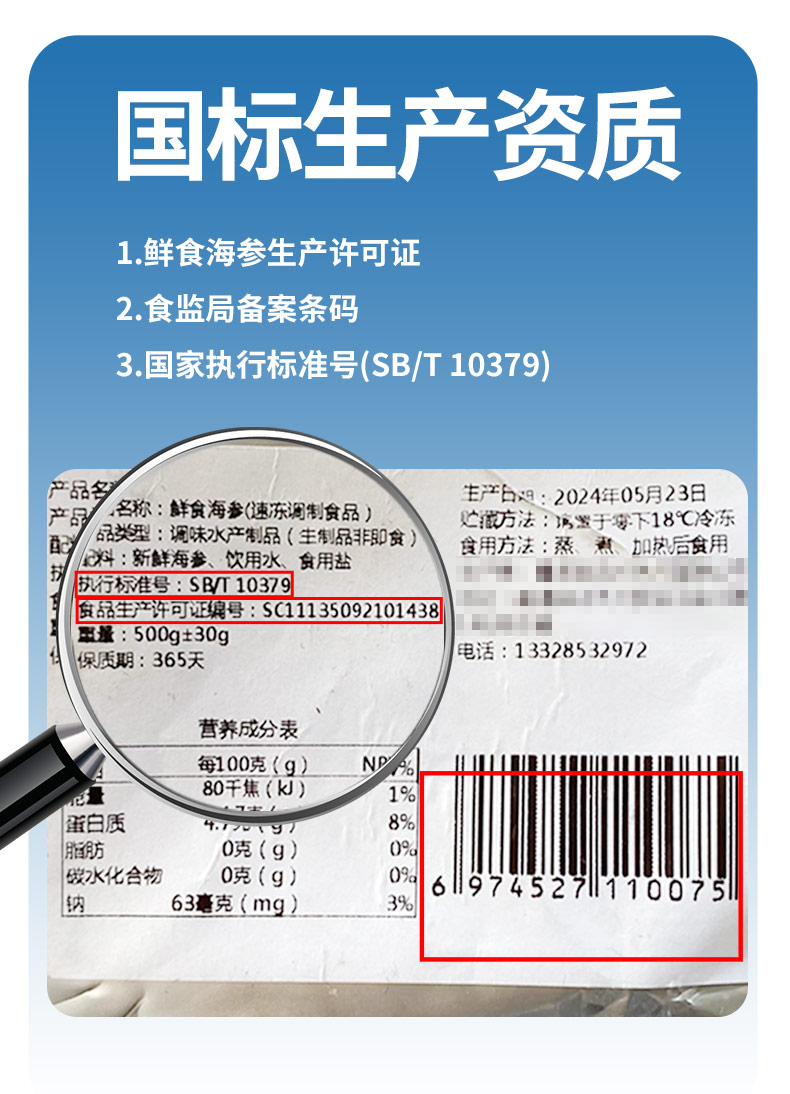 鲜食海参大礼包(500g±30g/盒 9-11只 配保温袋)生产日期: 2月