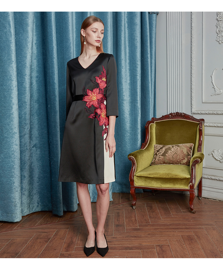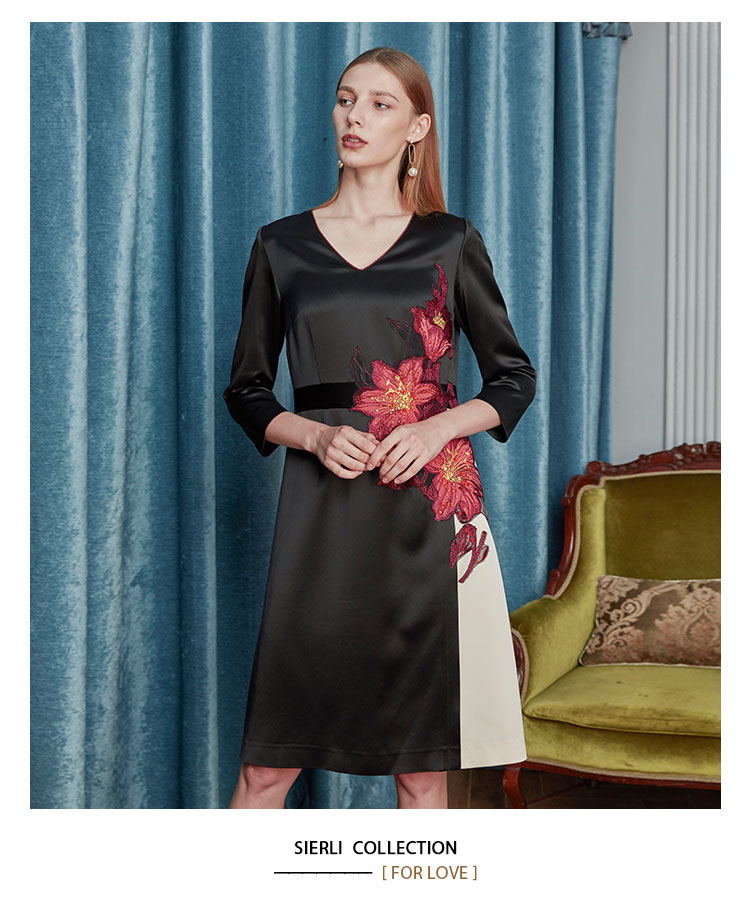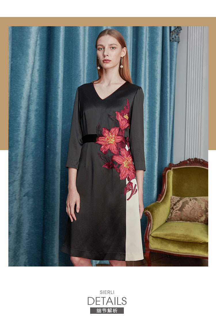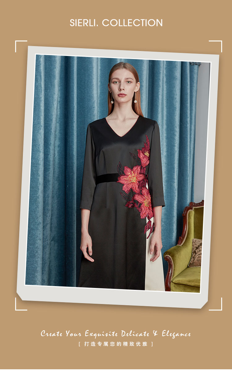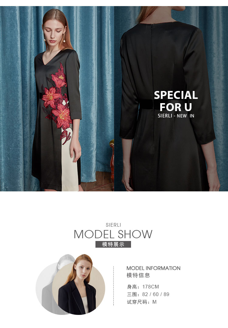 QE85C斯尔丽瑟俪2021年春季上新V领贴花连衣裙