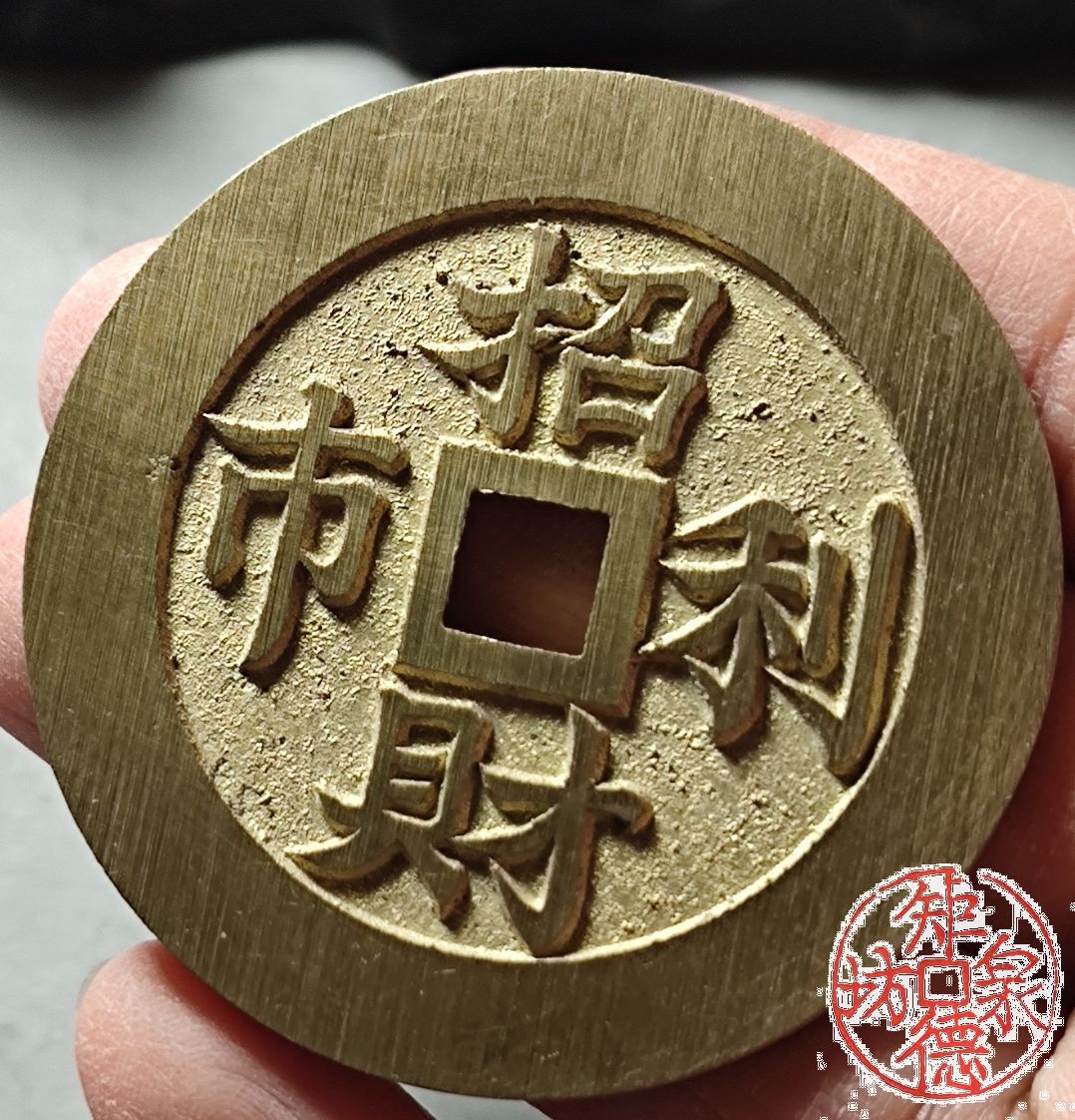 古法文创铸币 招财利市背吉祥图 文房铜镇 HFH12