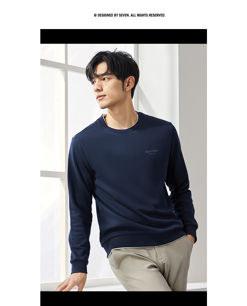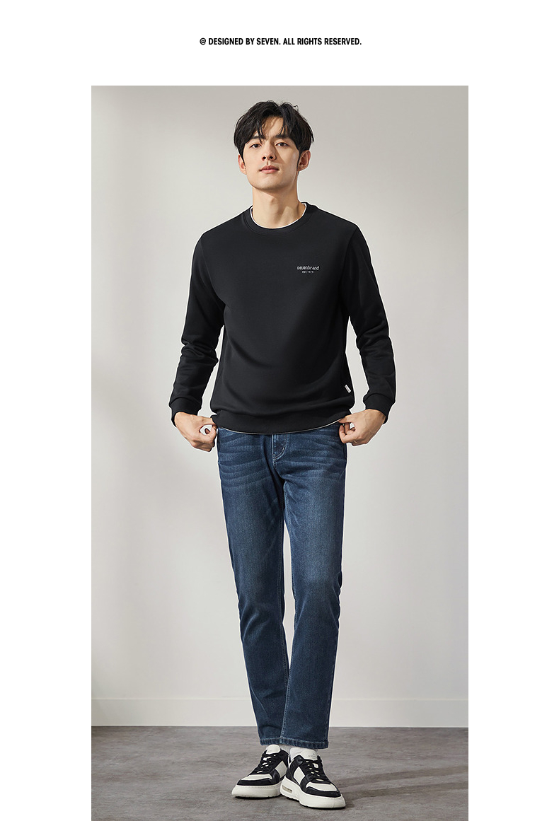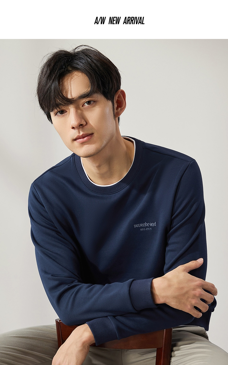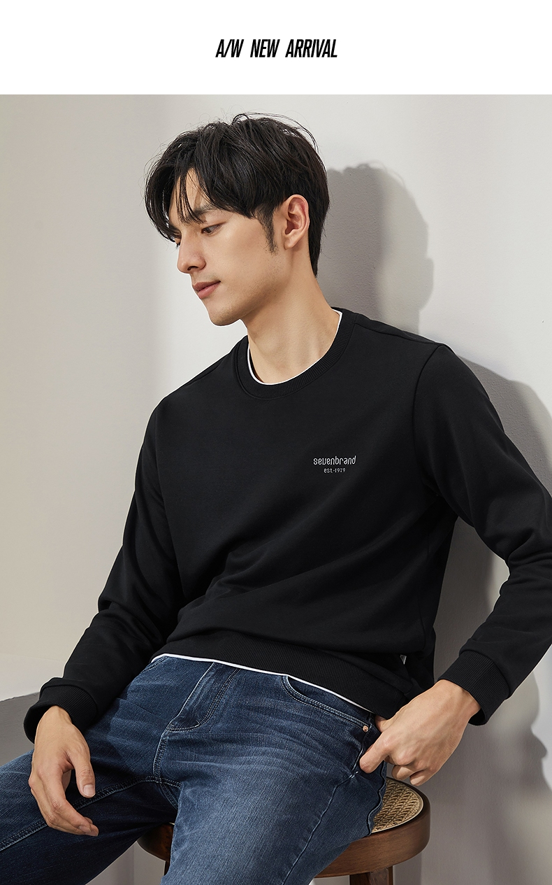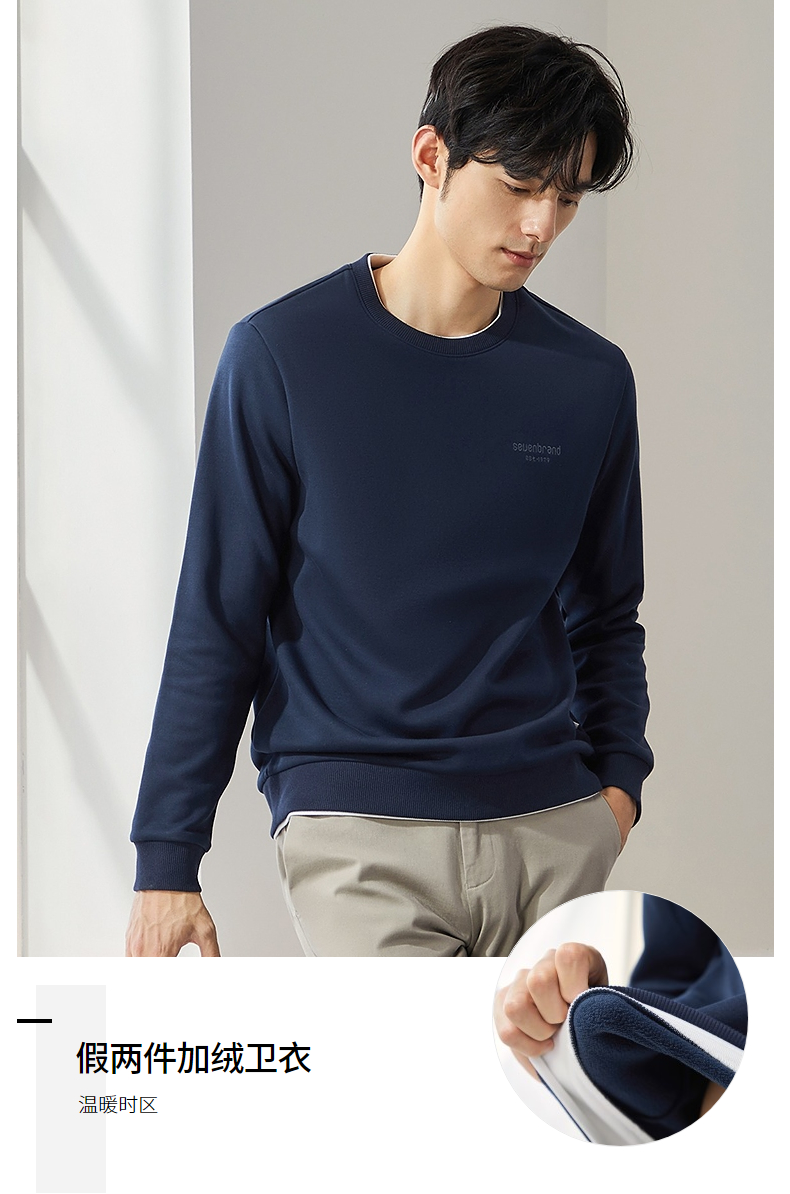柒牌假两件卫衣男2024秋冬新款时尚休闲加绒保暖男士百搭圆领上衣 127W70550