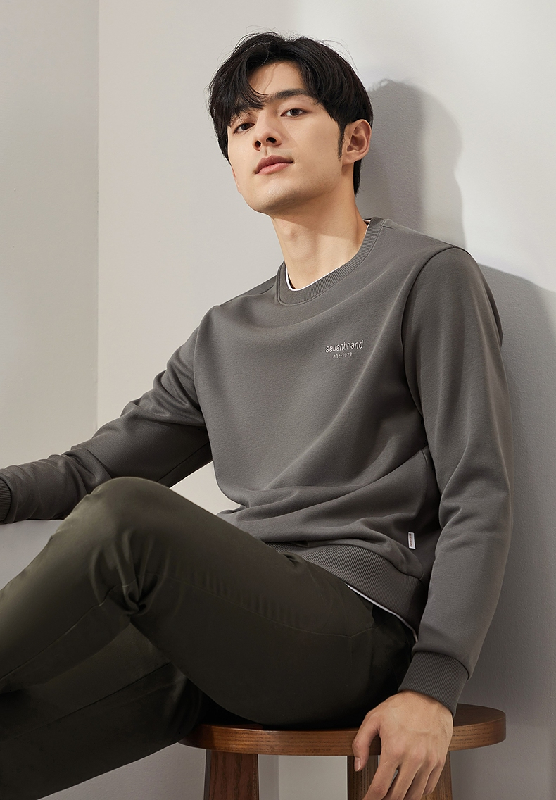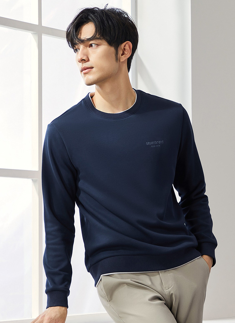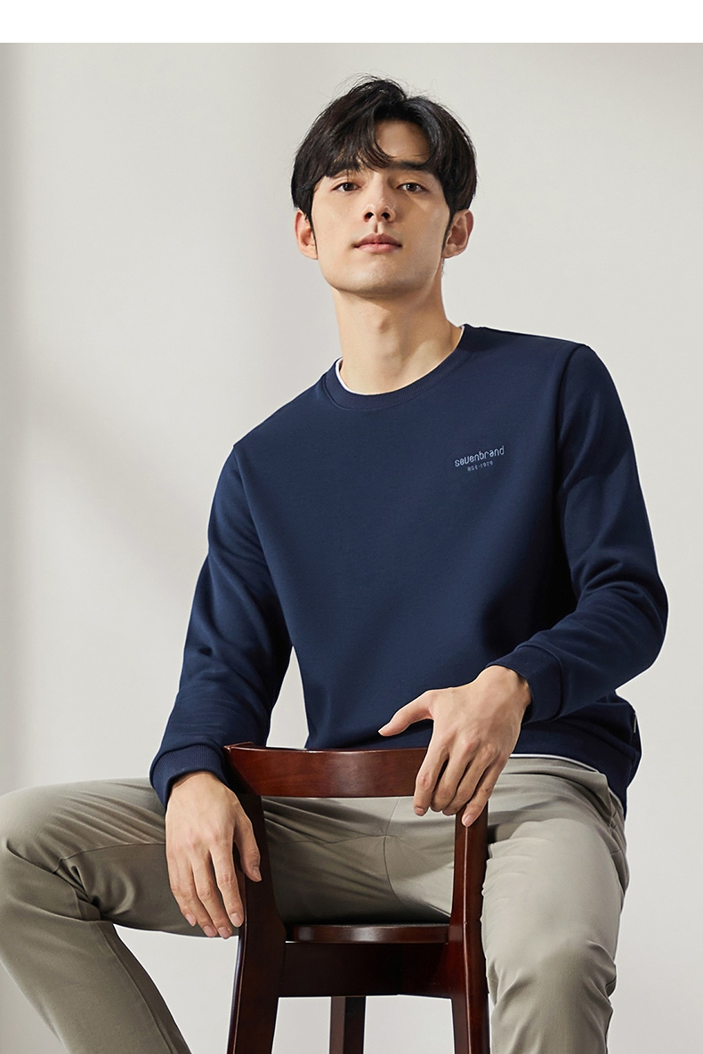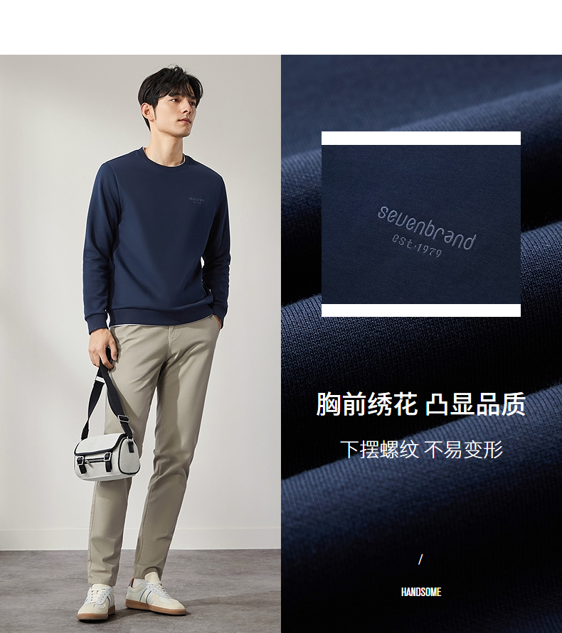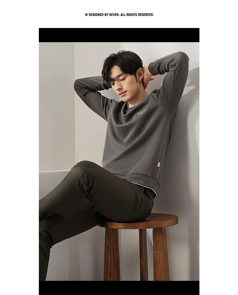 柒牌假两件卫衣男2024秋冬新款时尚休闲加绒保暖男士百搭圆领上衣 127W70550