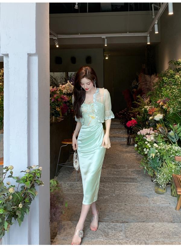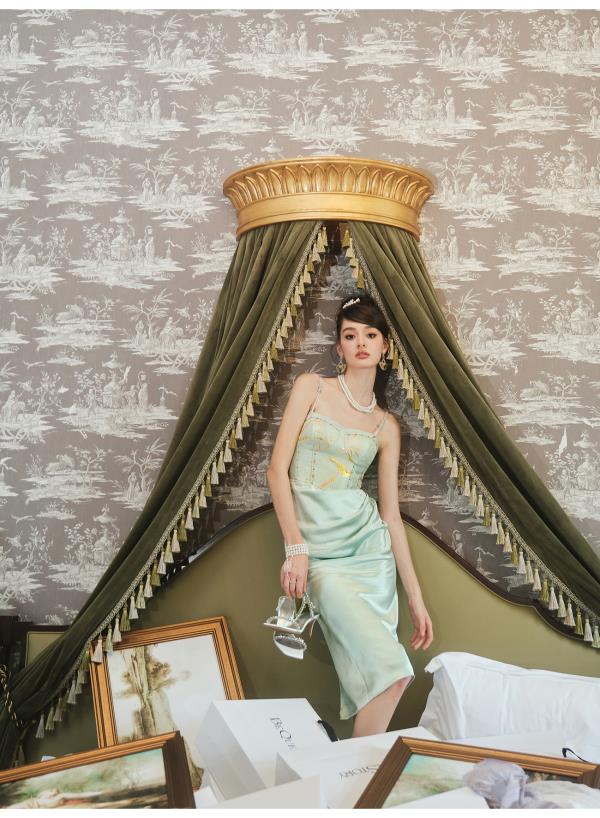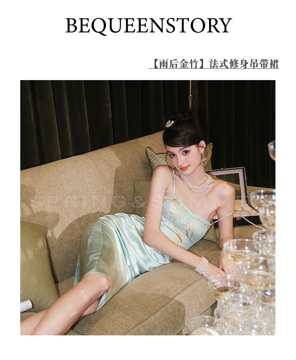 【大货福利,不退不换】 【雨后金竹】法式名媛气质修身吊带连衣裙女2023夏季