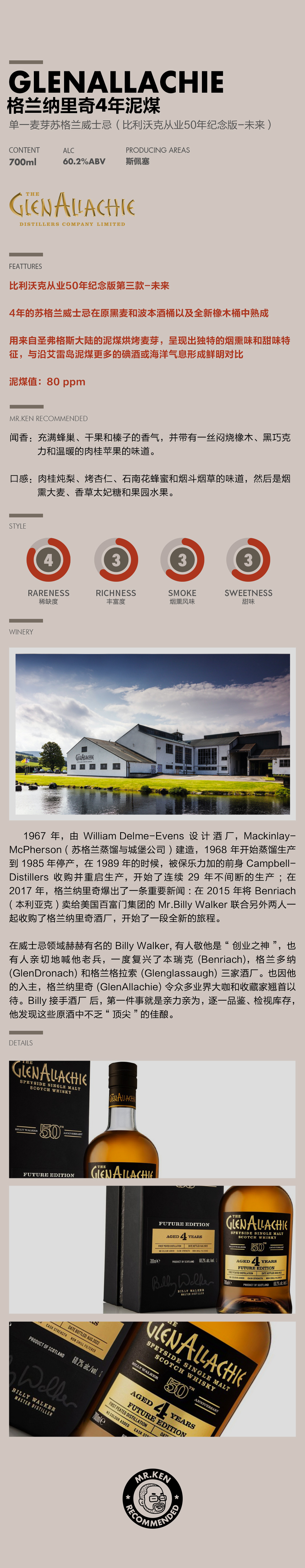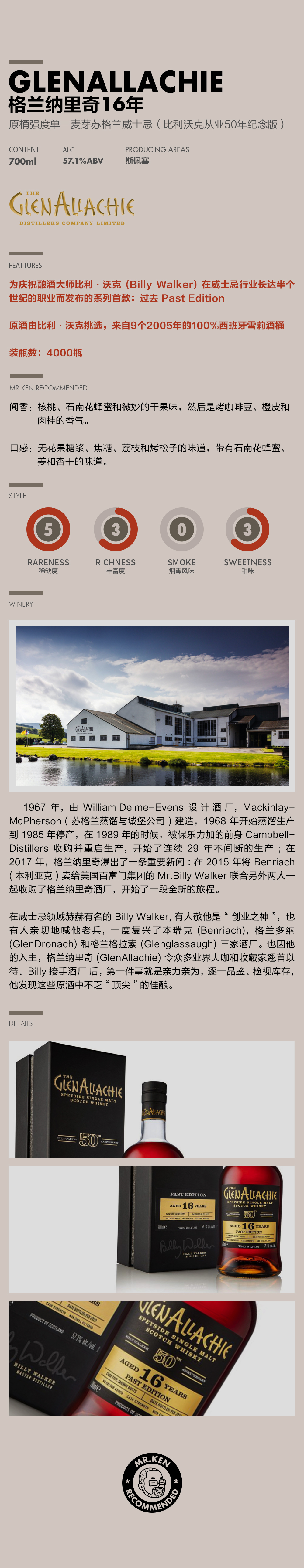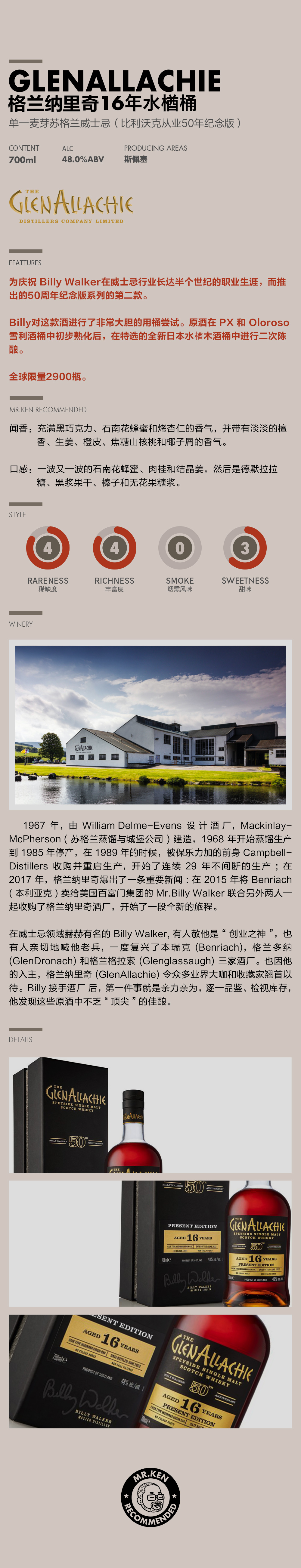 格兰纳里奇(Glenallachie)比利·沃克从业50年套组(16年雪莉/16年水楢/4年泥煤)