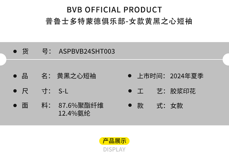 【官方正版】多特蒙德足球俱乐部|黄黑之心女生T恤足球迷撞色速干短袖