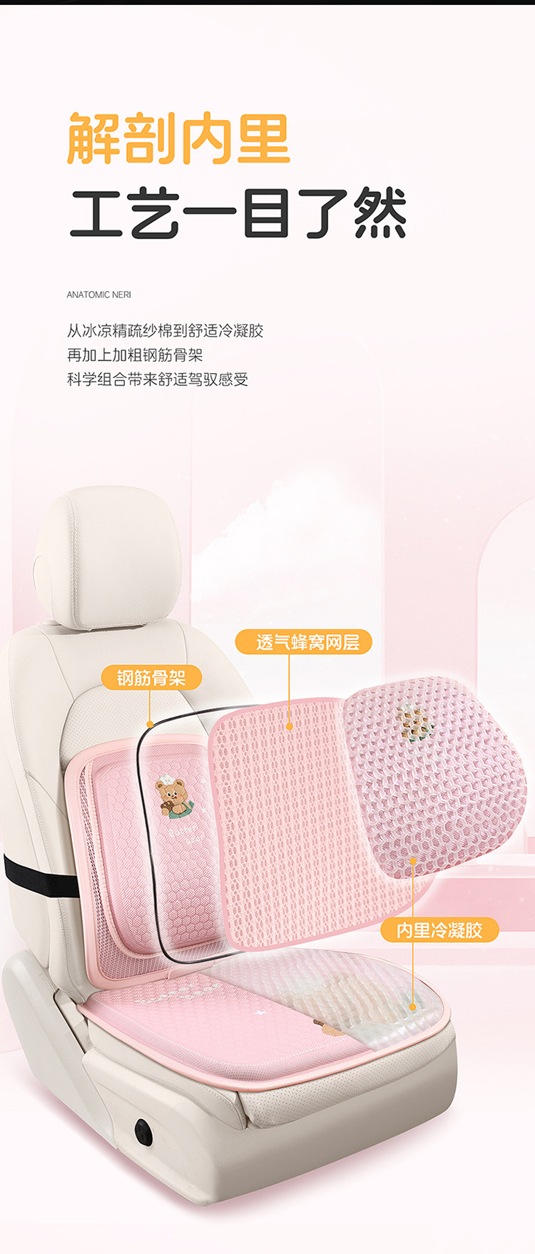 【汽车坐垫腰靠】四季通用 夏季凉垫透气通风 主驾座椅凝胶垫办公室坐垫