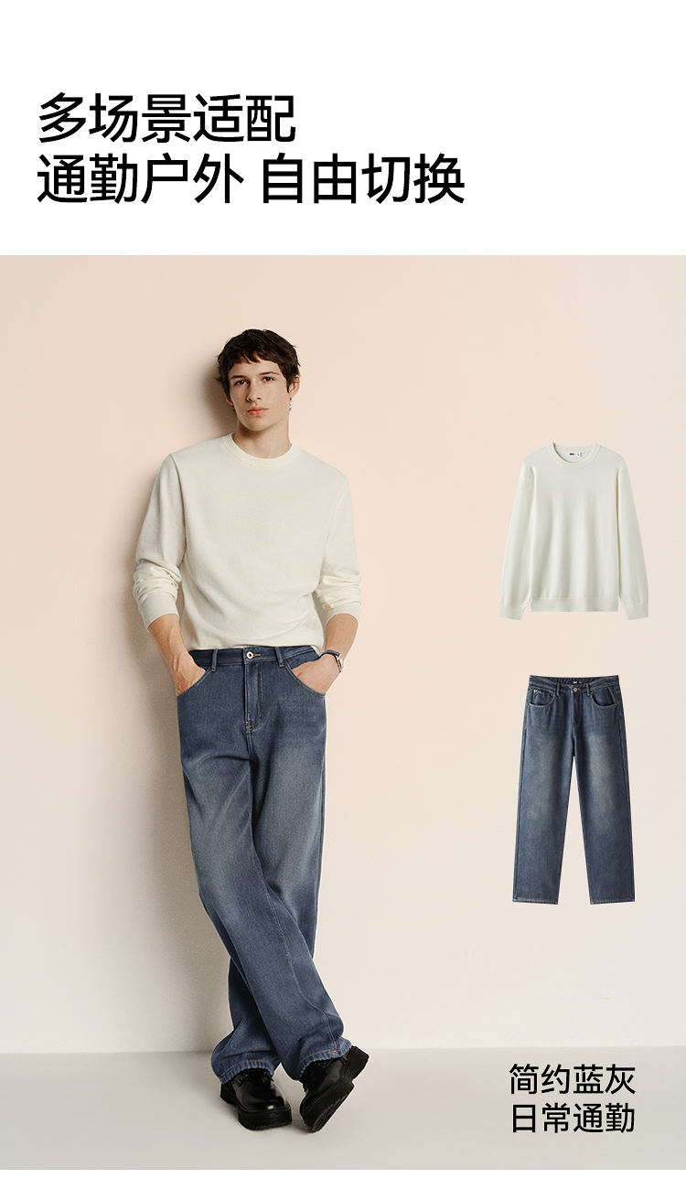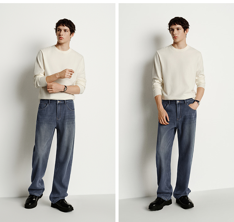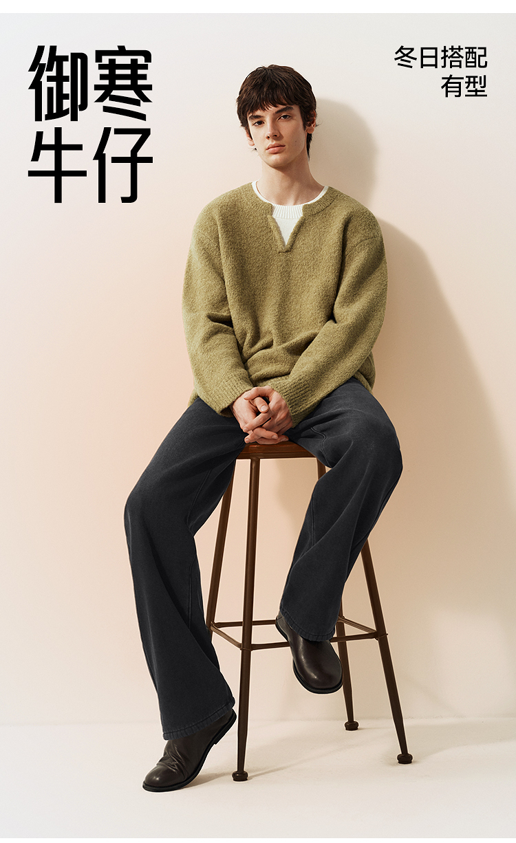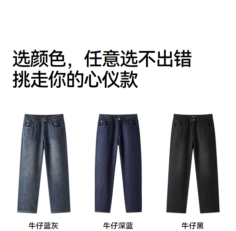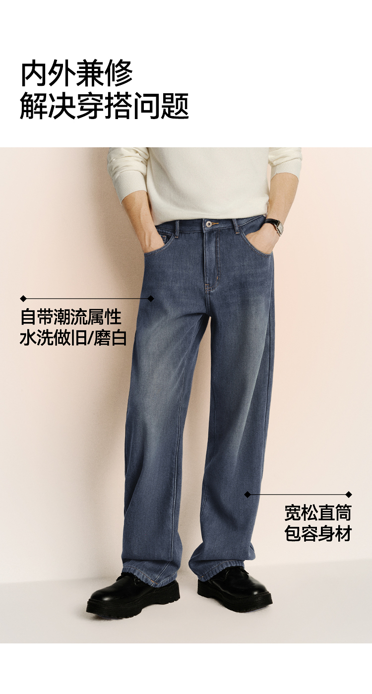 森马牛仔裤男冬加绒加厚保暖宽松直筒裤2025新款做旧复古百搭裤子
