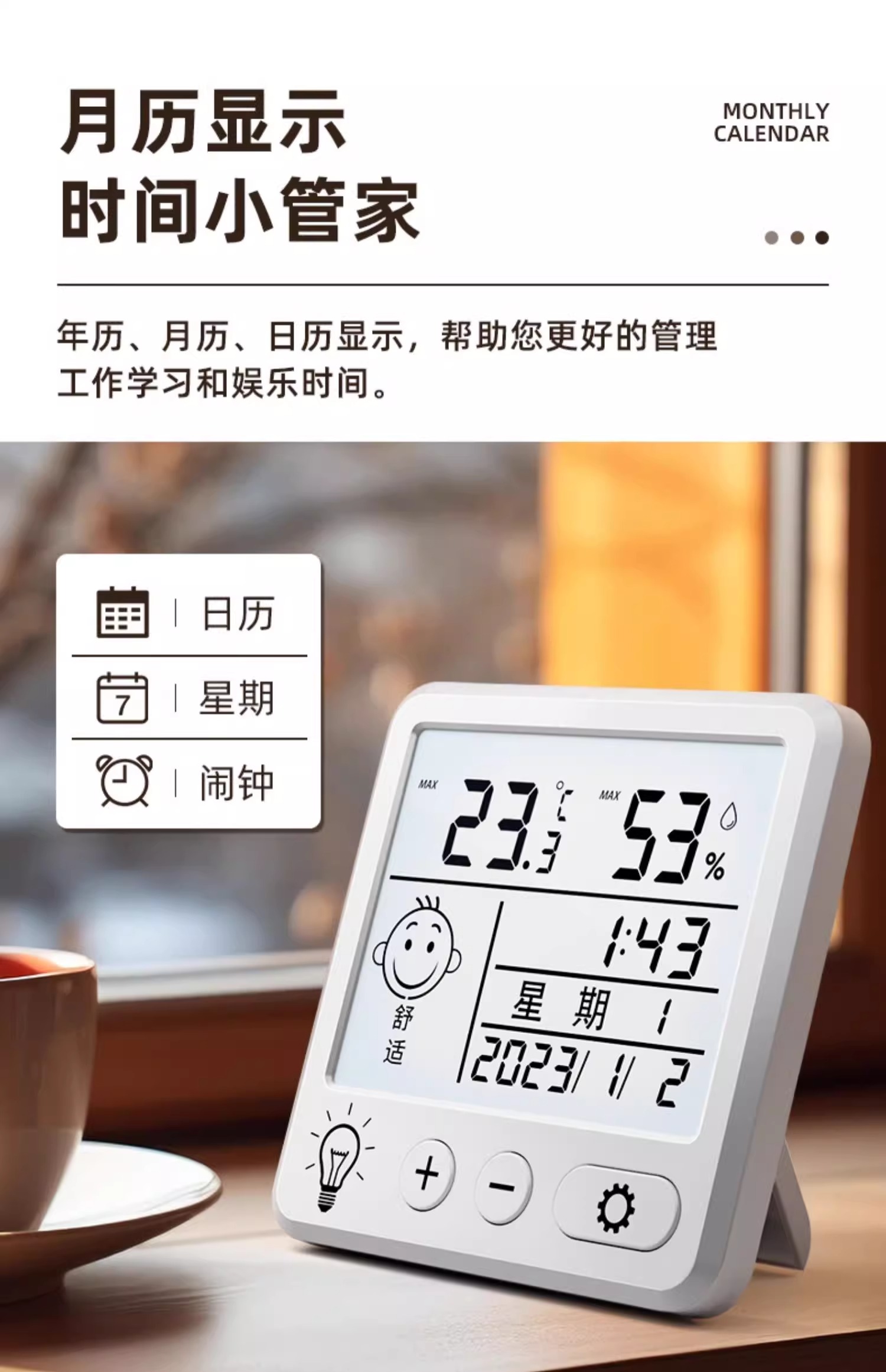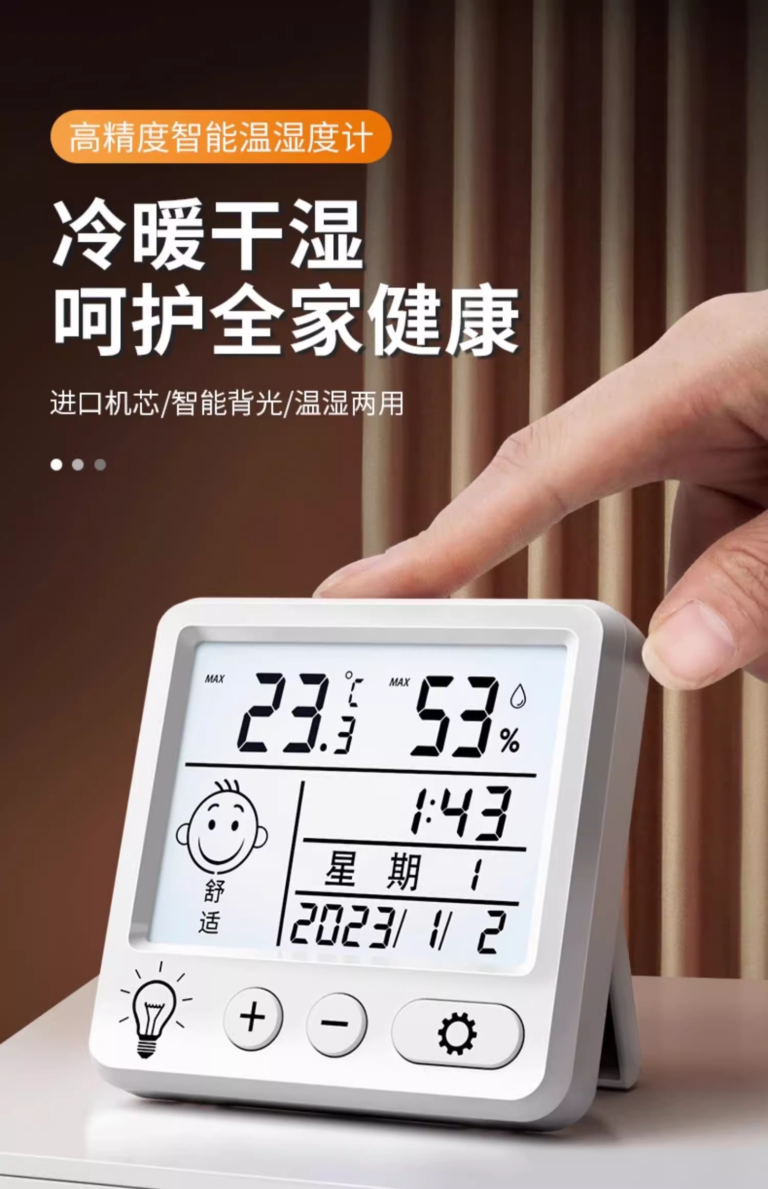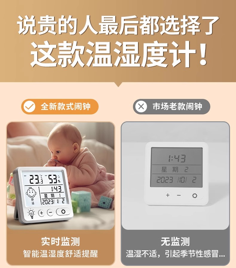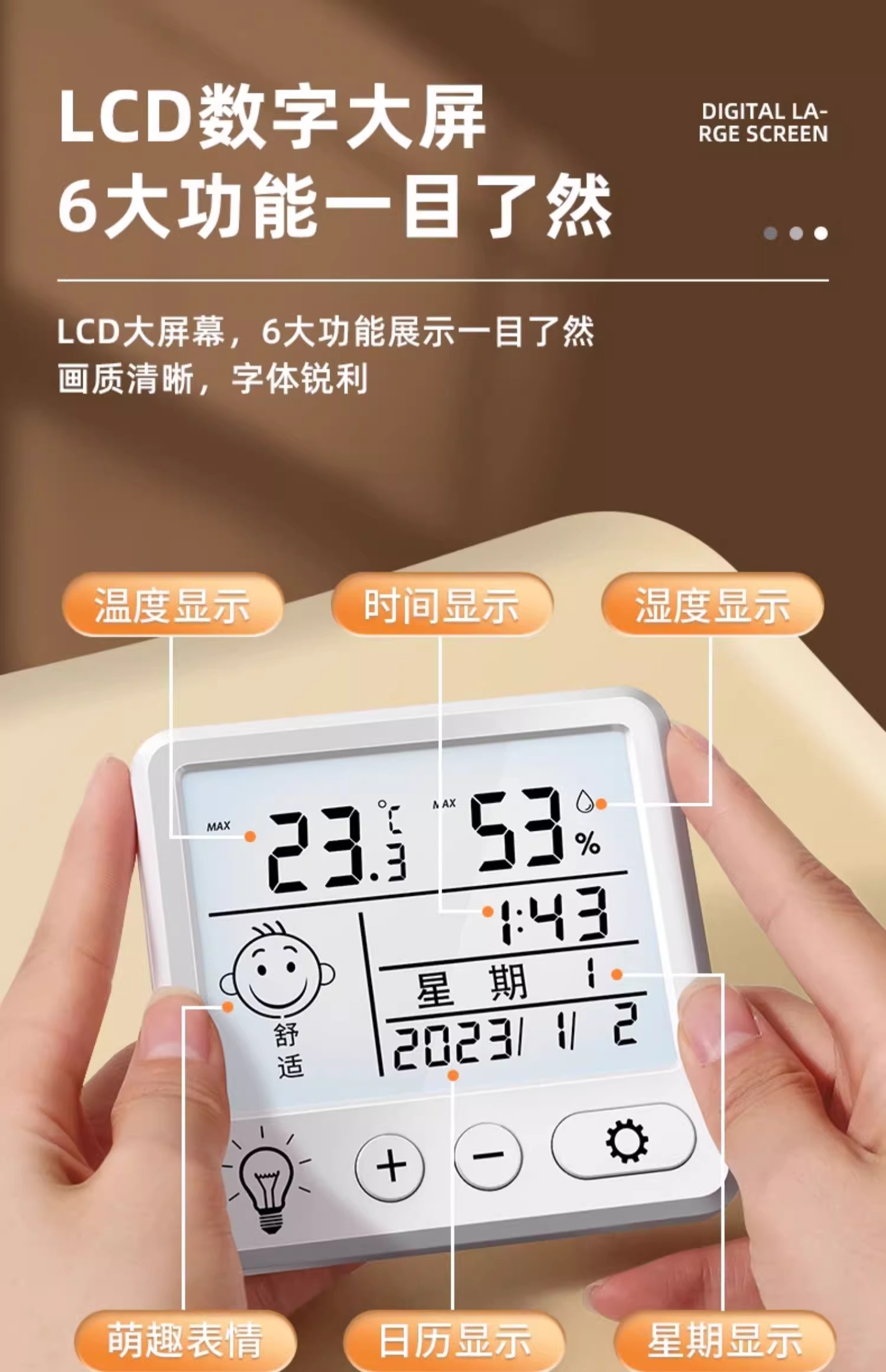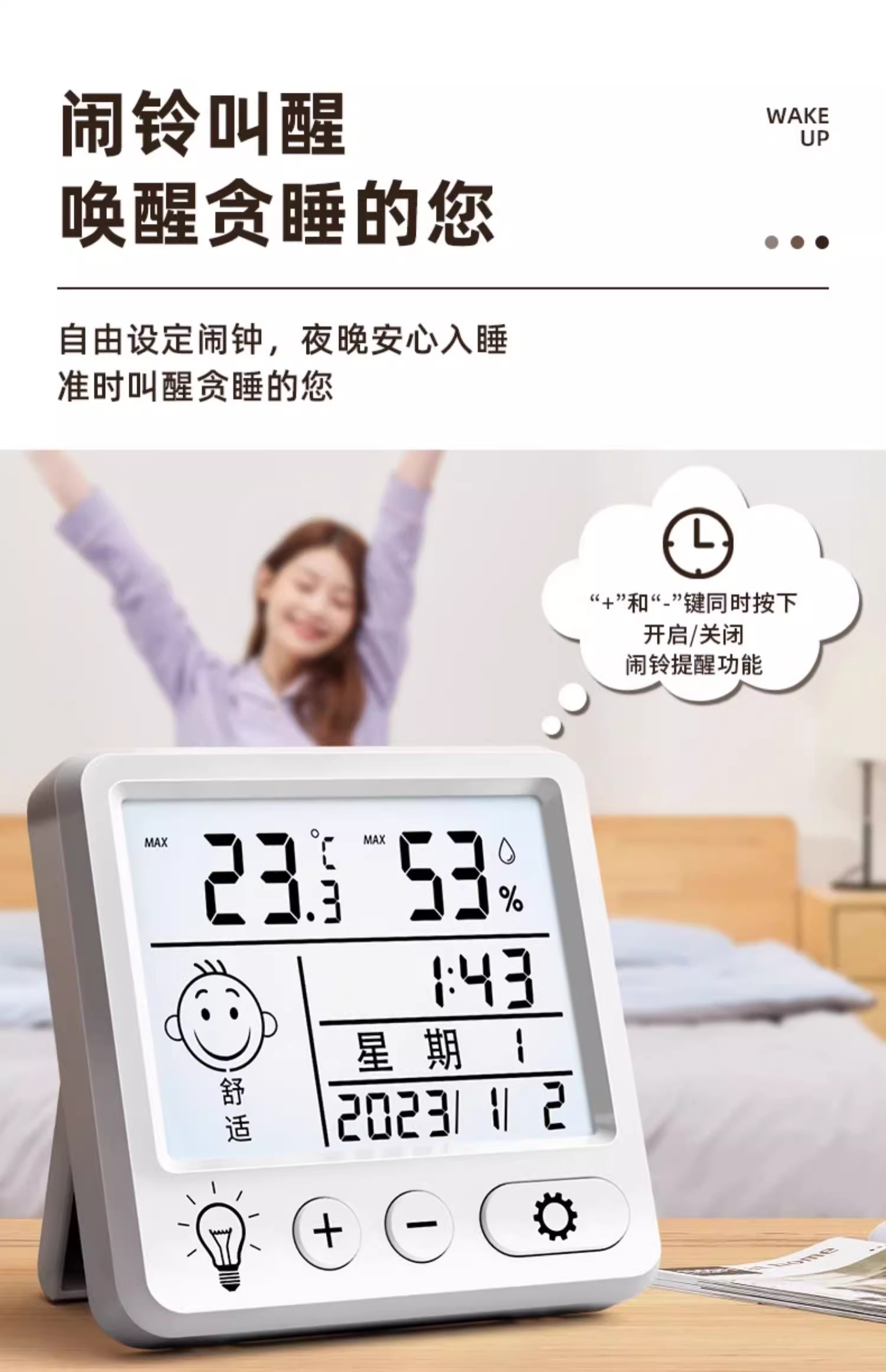 精准数显温度计桌面电子温湿度计闹钟母婴家用壁挂温湿度室内室外