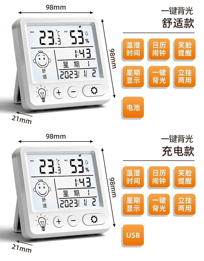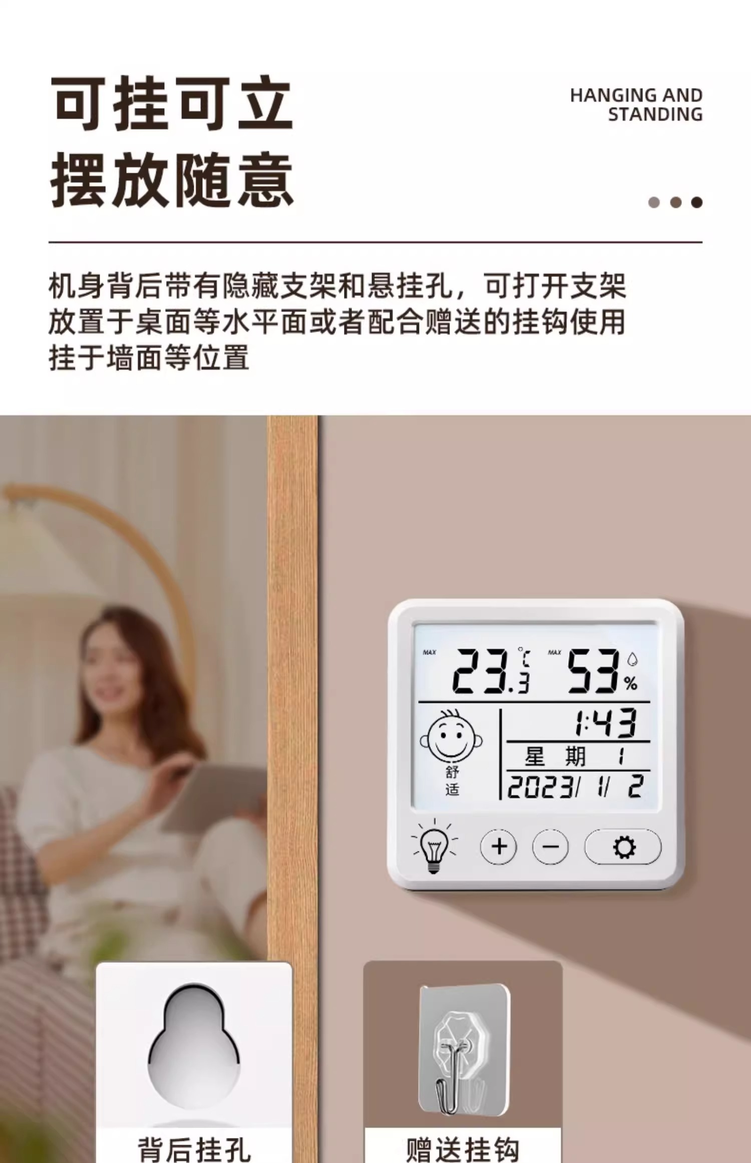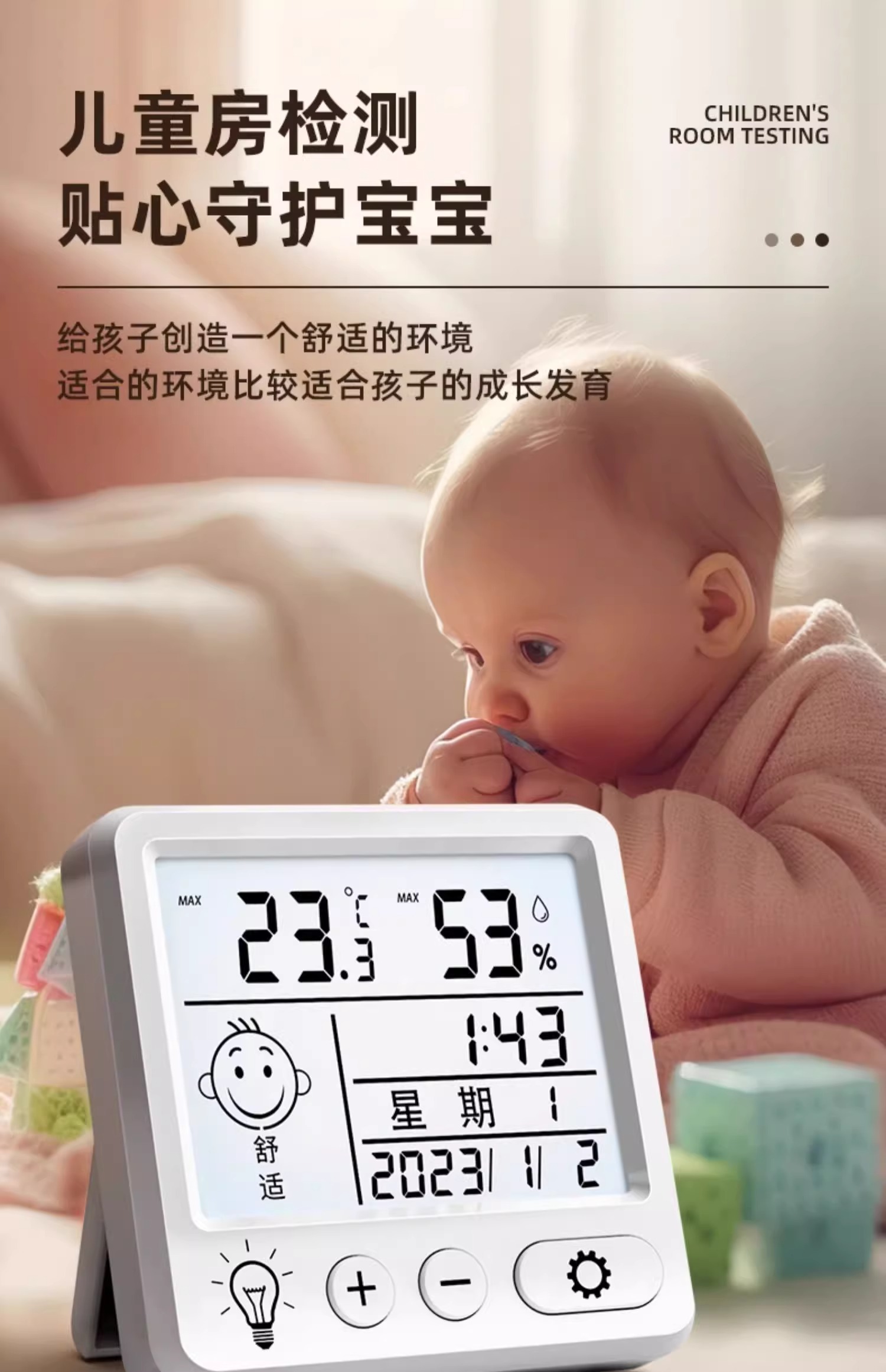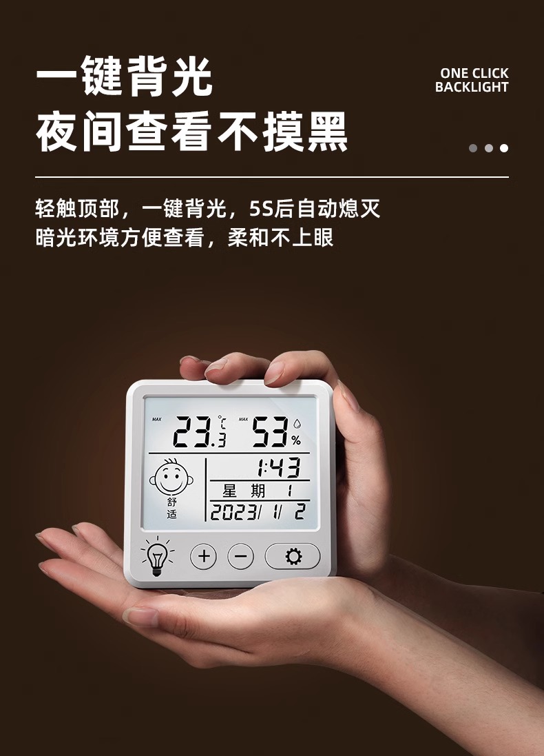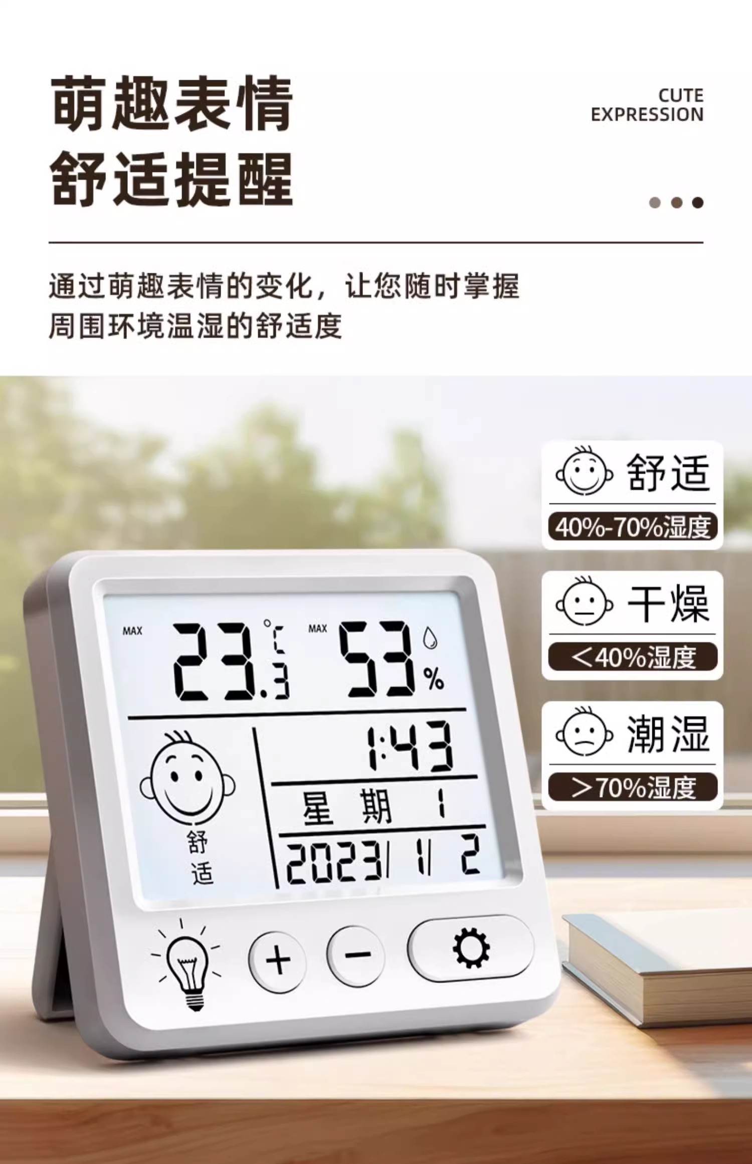 精准数显温度计桌面电子温湿度计闹钟母婴家用壁挂温湿度室内室外