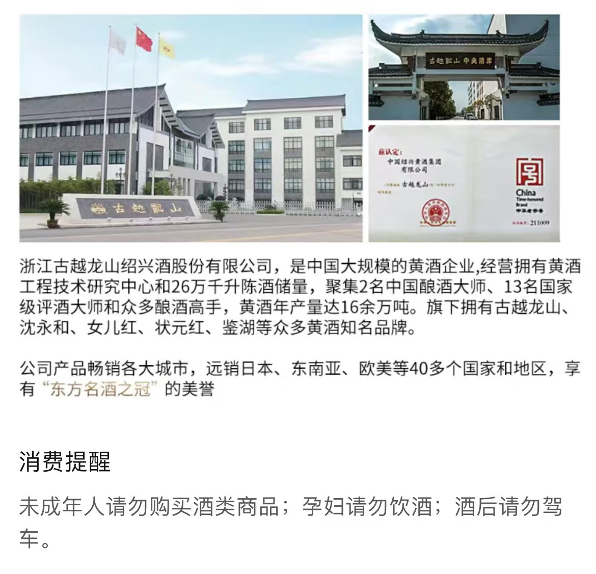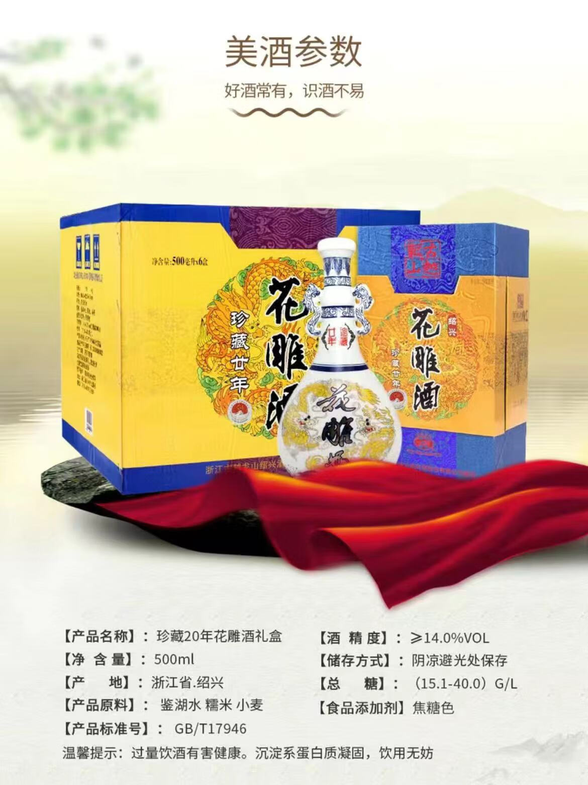古越龙山•绍兴黄酒【珍藏20年】陈酿花雕酒15度 500ml/瓶