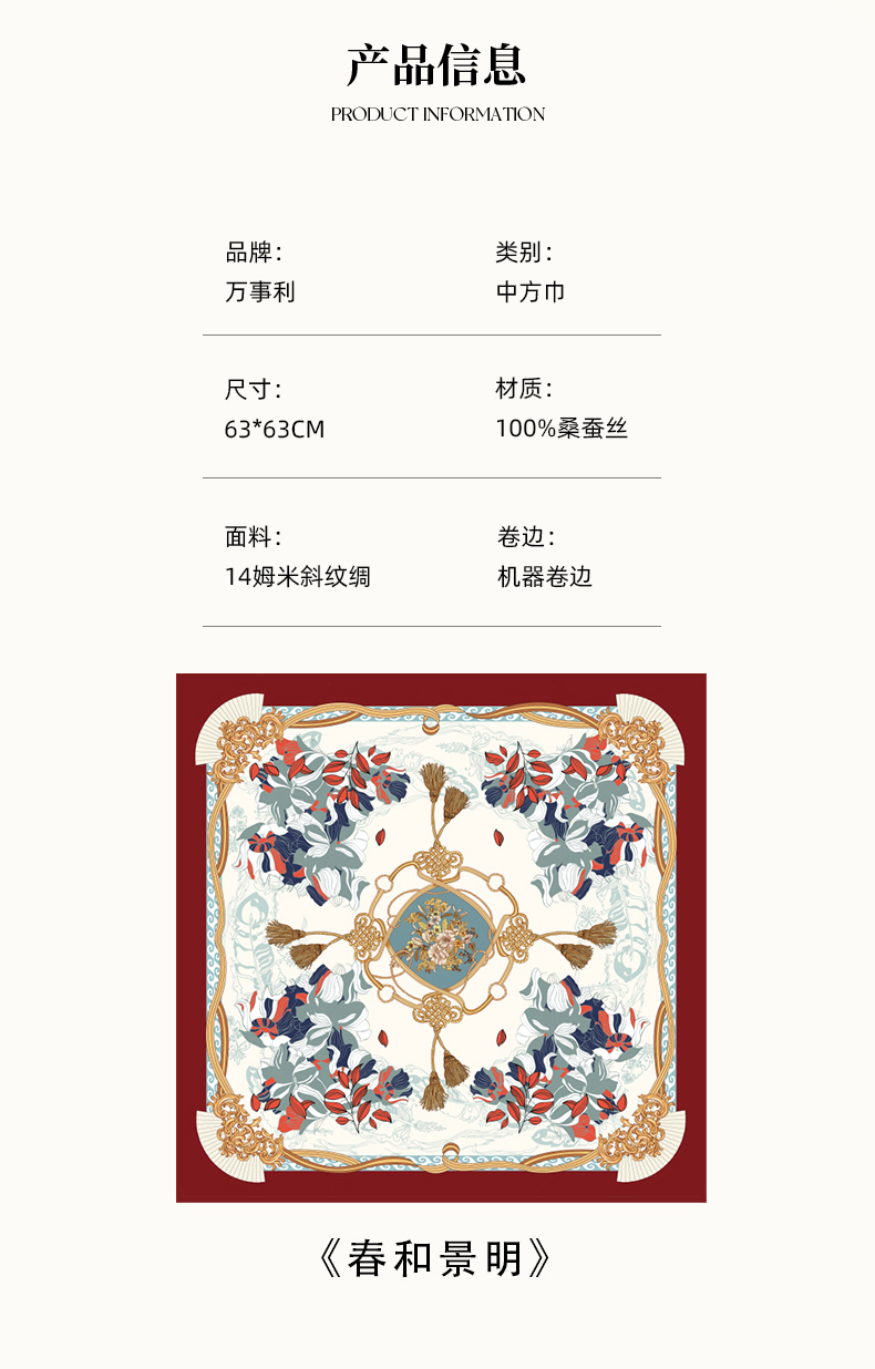 万事利“春和景明”63厘米双面印花真丝中方巾