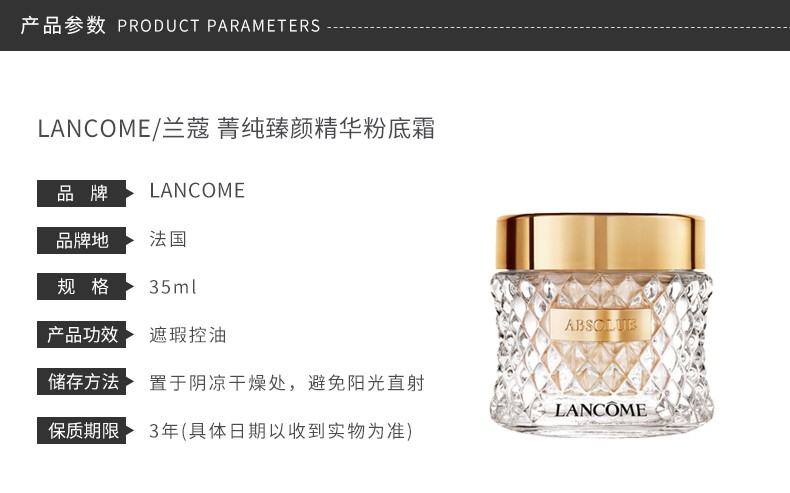 LANCOME兰蔻 菁纯臻颜精华粉底霜#100 35ml