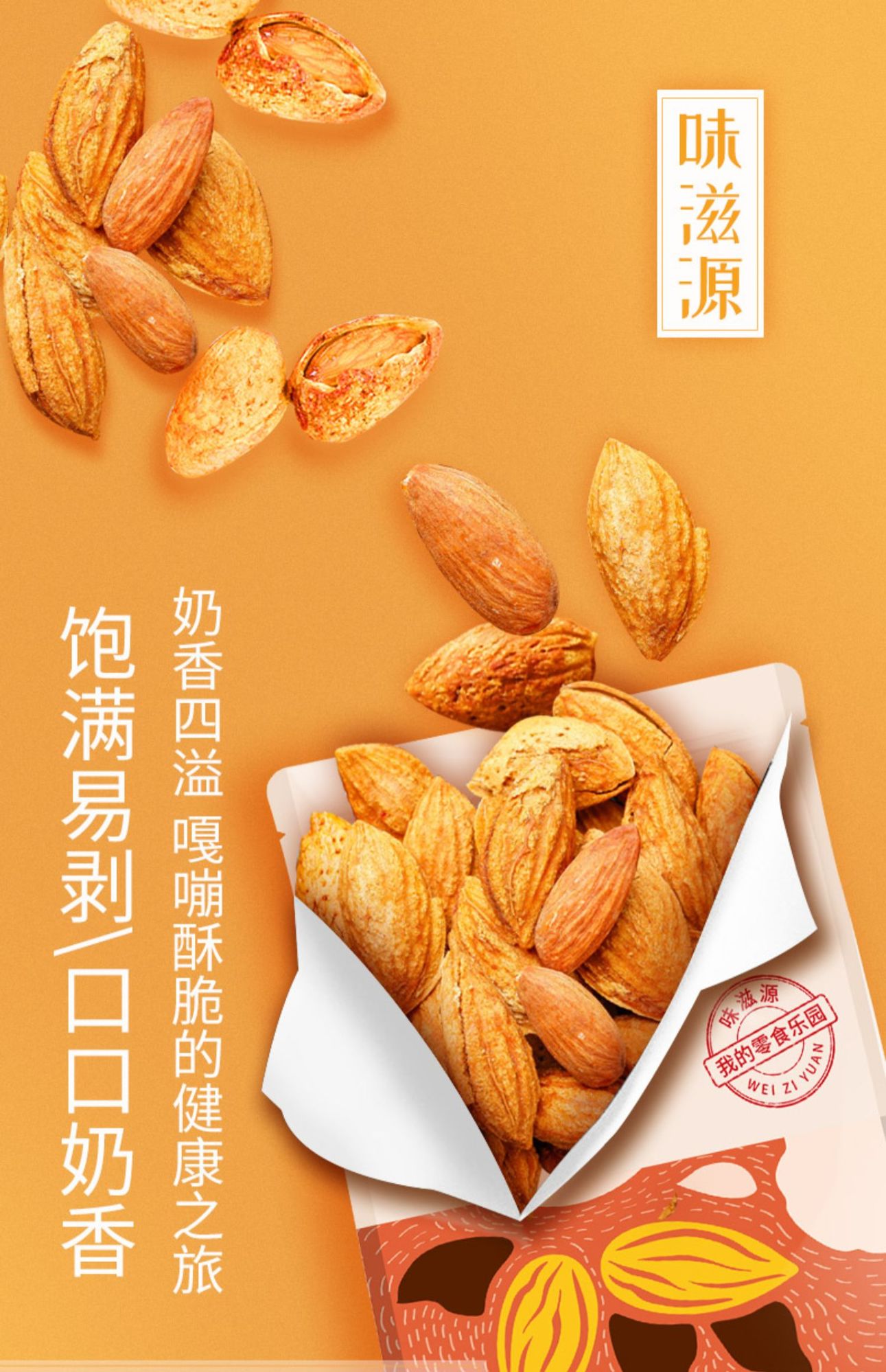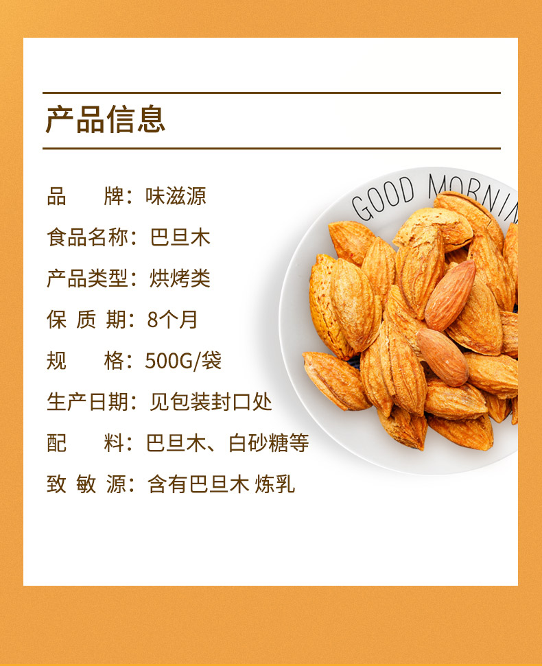 味滋源巴旦木仁500g大杏仁坚果零食1斤装5扁桃仁 【分销】