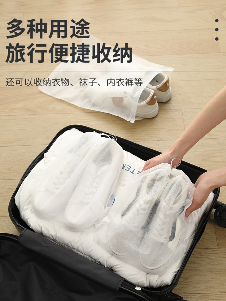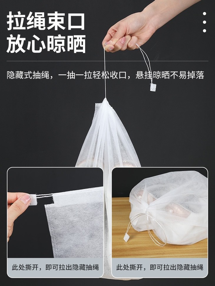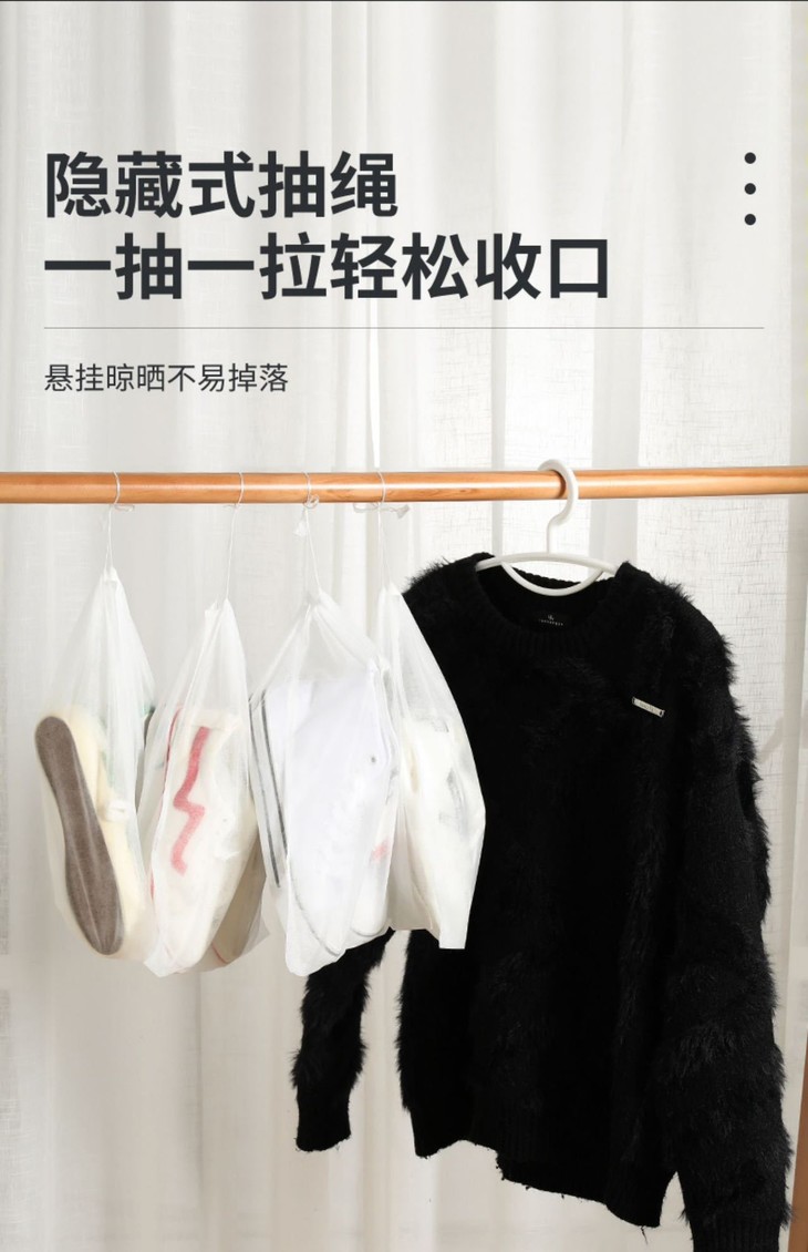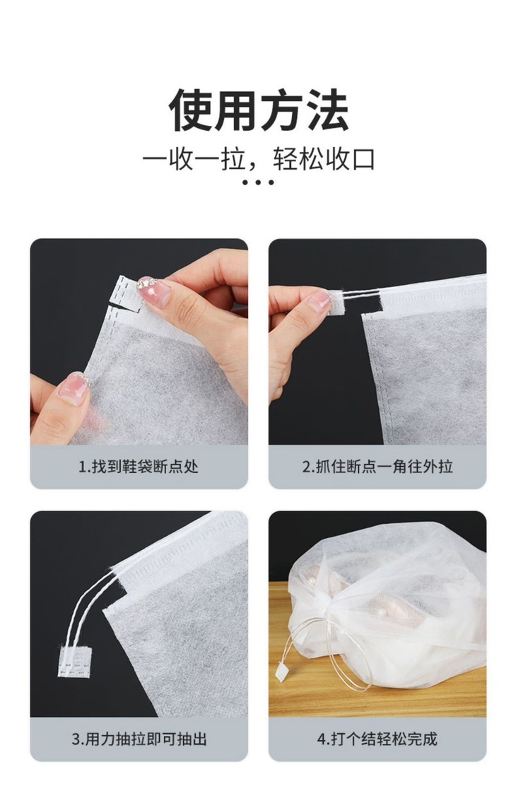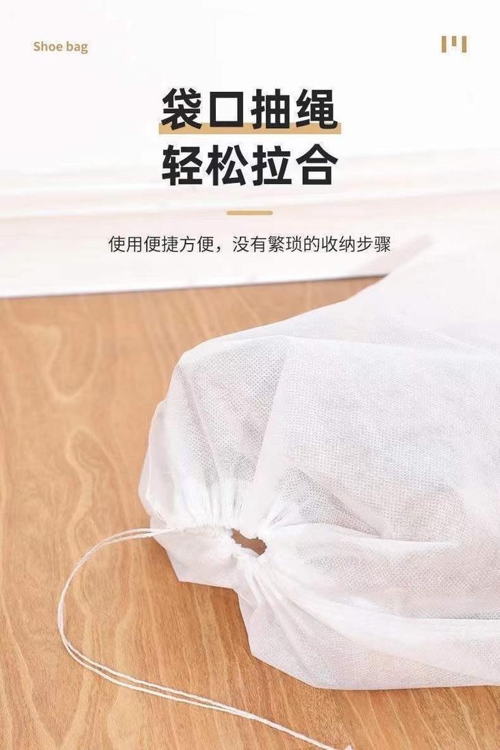 他不但经济实惠 一包50只收纳袋,超大容量 选用加厚无纺布,可以重复使用 而且采用漱口拉绳设计,防尘,防潮 是我们日常生活中不可多得的收纳小帮手