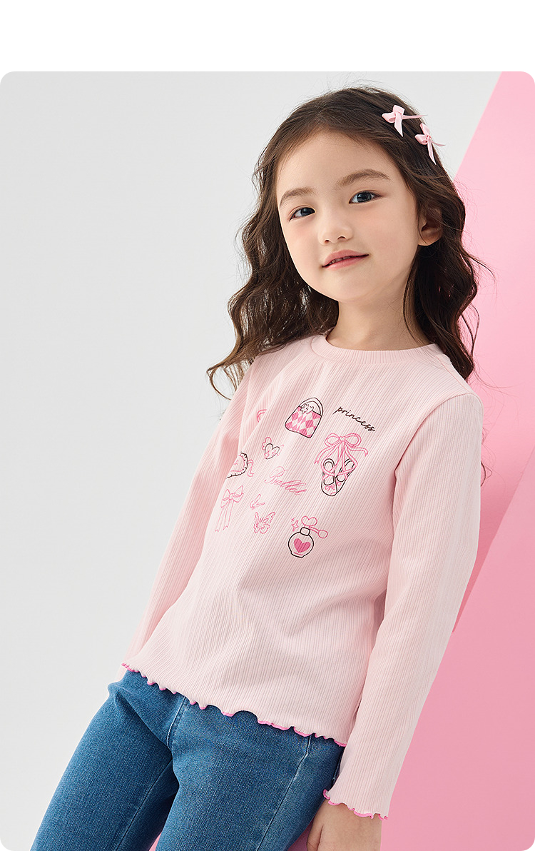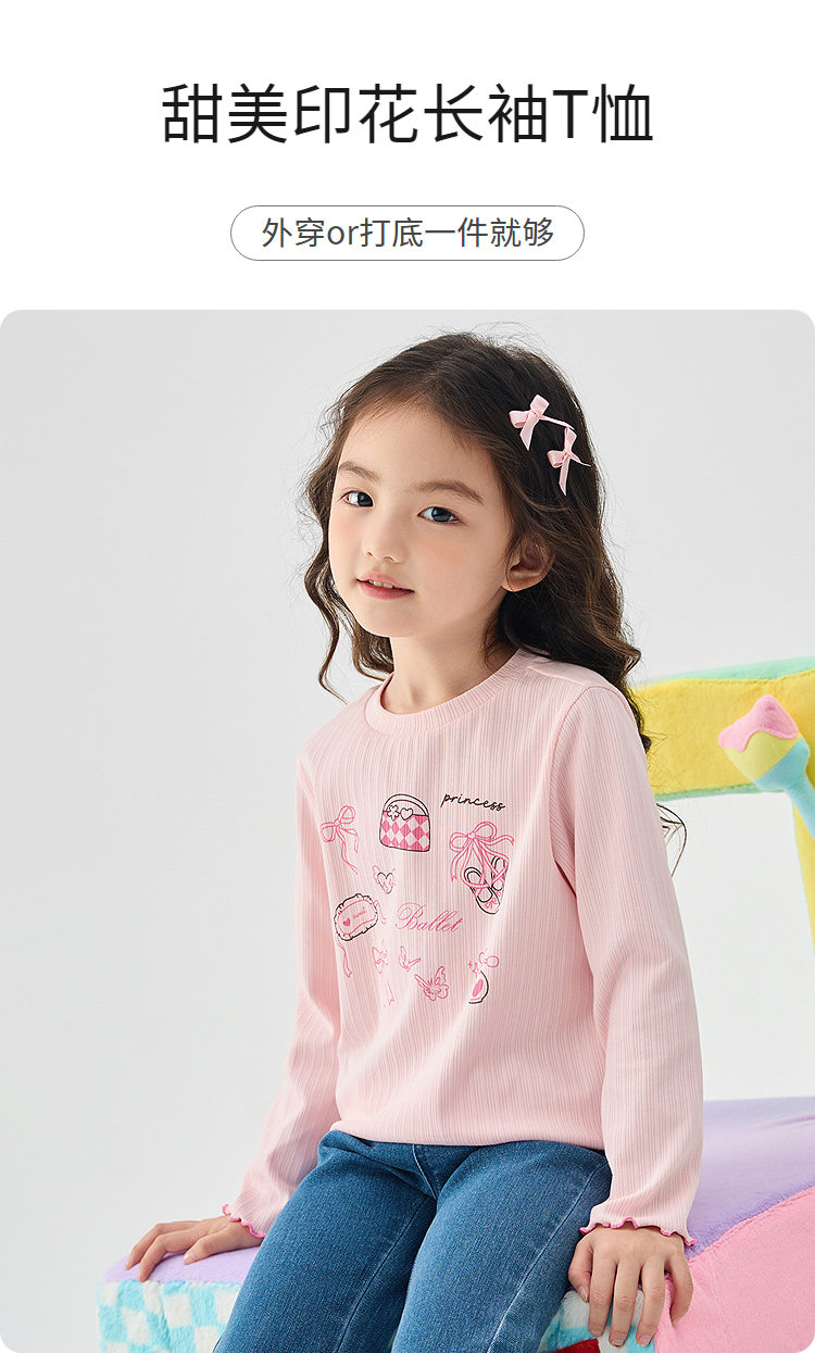 巴拉巴拉童装儿童长袖T恤女童2025新款春装甜美印花上衣宝宝打底
