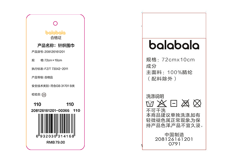 【balaOne】巴拉巴拉儿童围巾男女童2025年新款冬季小童可爱保暖