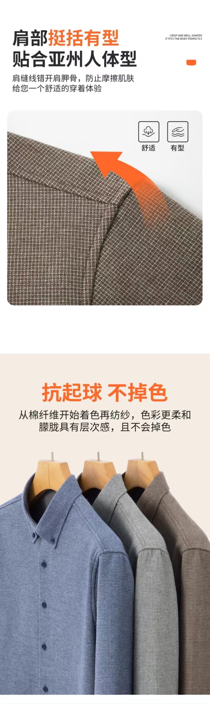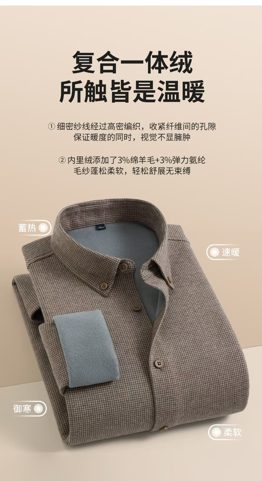 【绵羊毛内胆】男士加绒棉衬衫千鸟格保暖格子衬衫纯棉磨毛加厚衬衫503