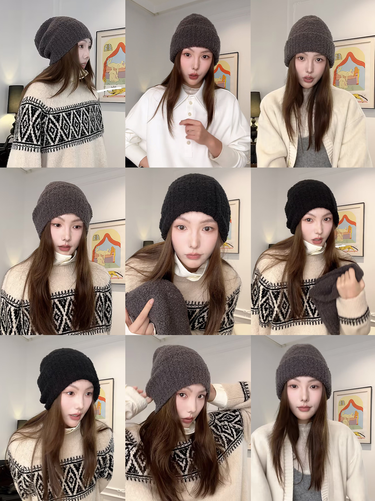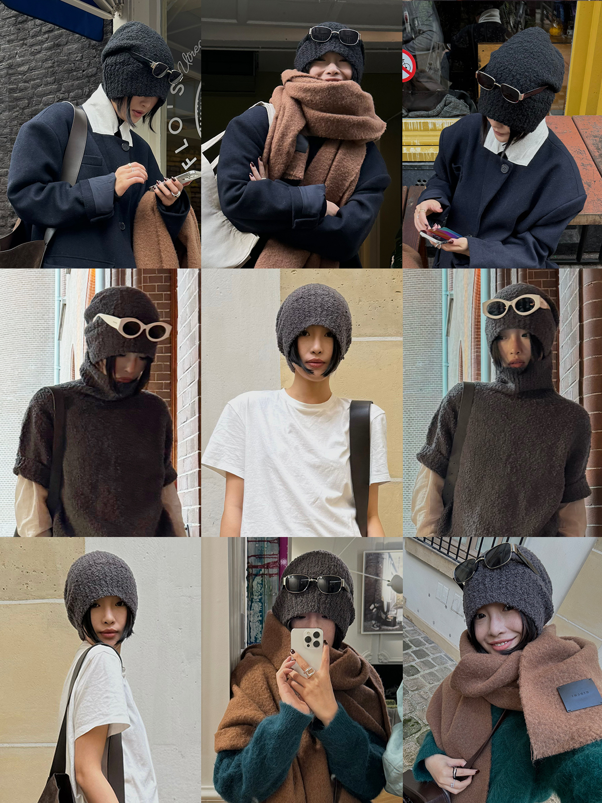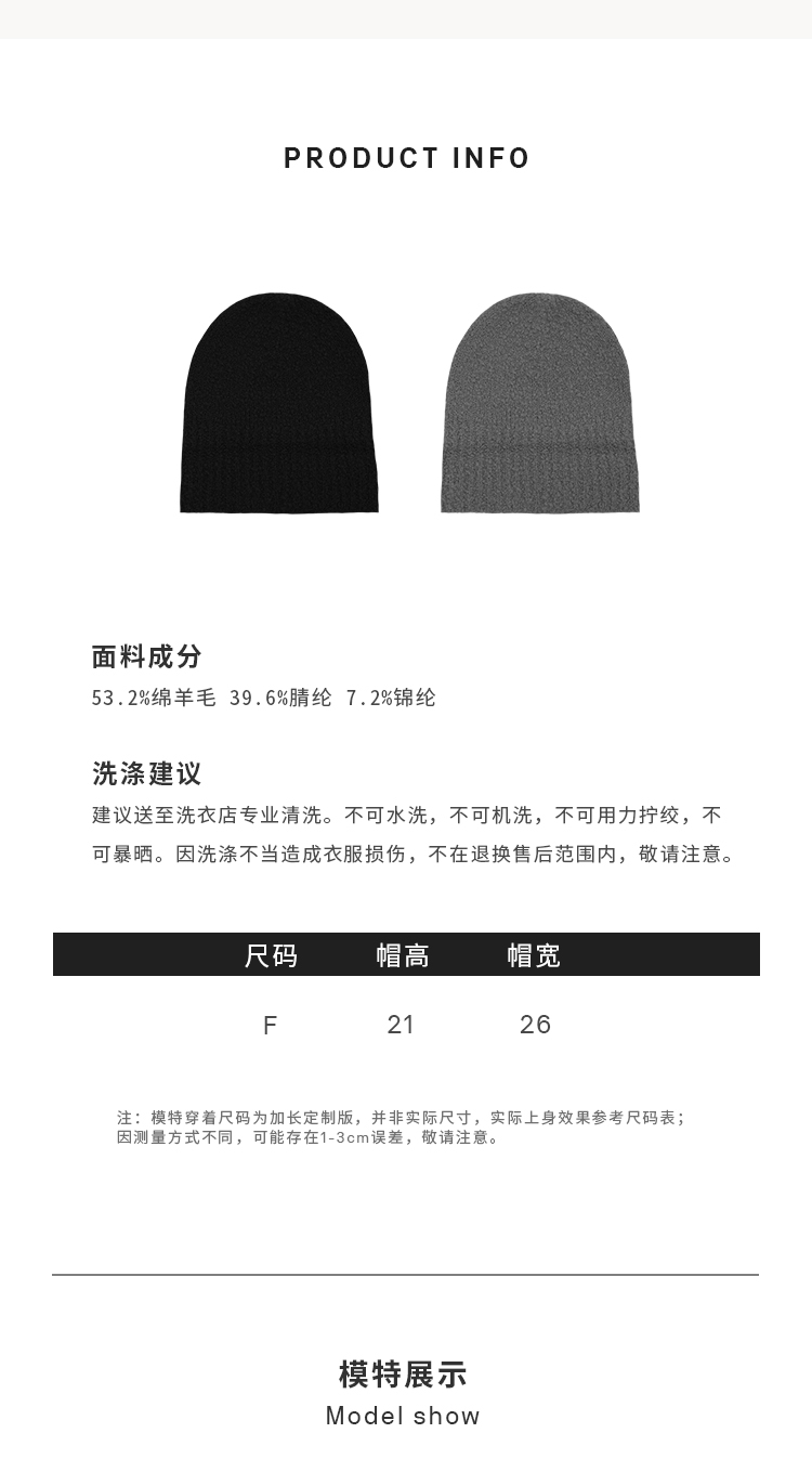 HIDEMI 【欧阳娜娜同款】进口澳毛强缩加厚弹力款多种戴法堆堆感冷帽 炭灰色|黑色