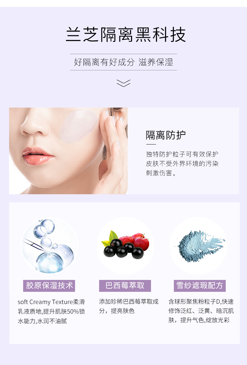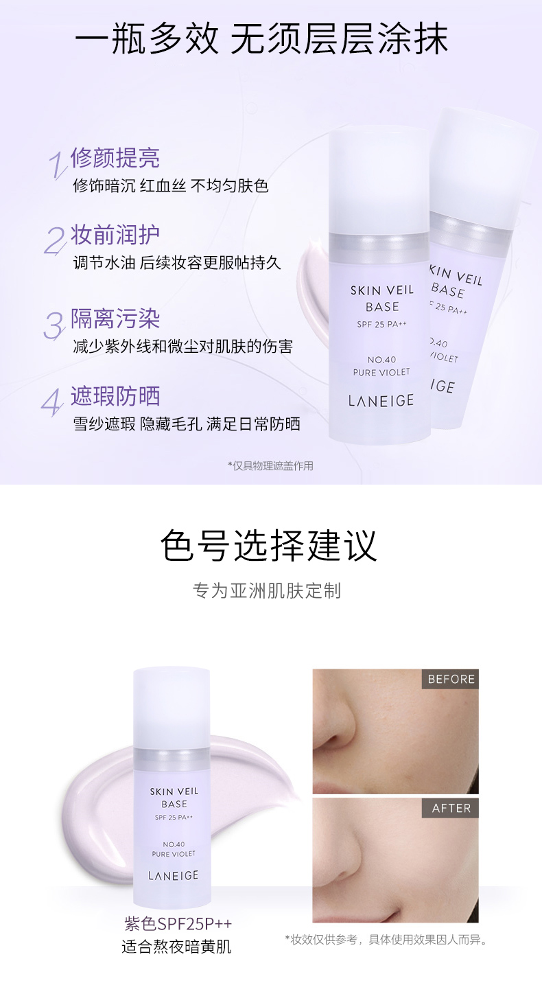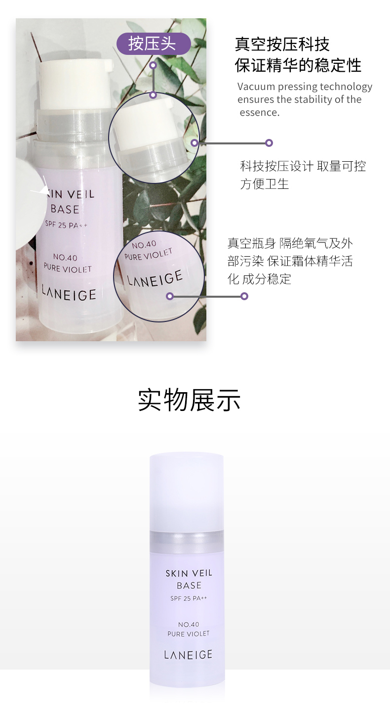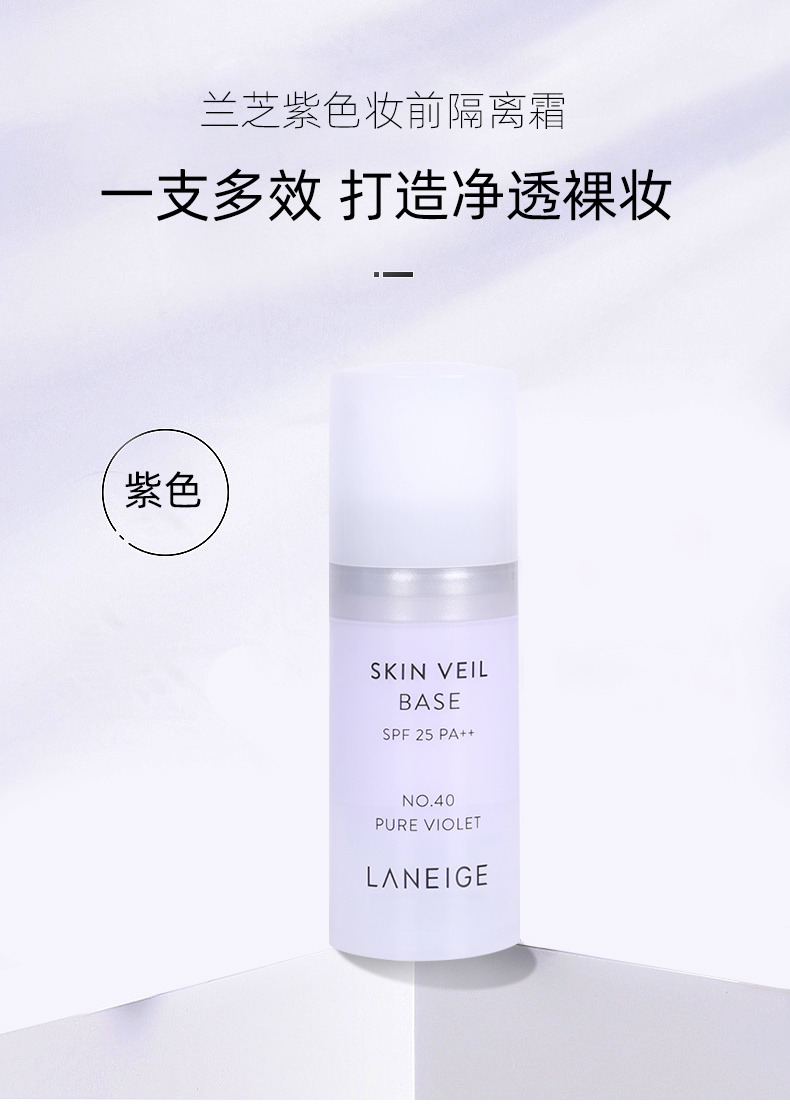 [商品名称]兰芝雪纱丝柔隔离霜中样[商品规格]10ml[商品产地]韩国[适用肌肤]所有肌肤[商品色号]40#紫色