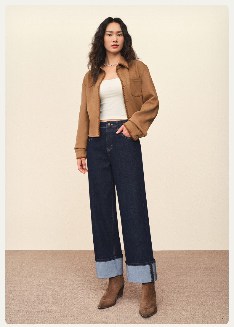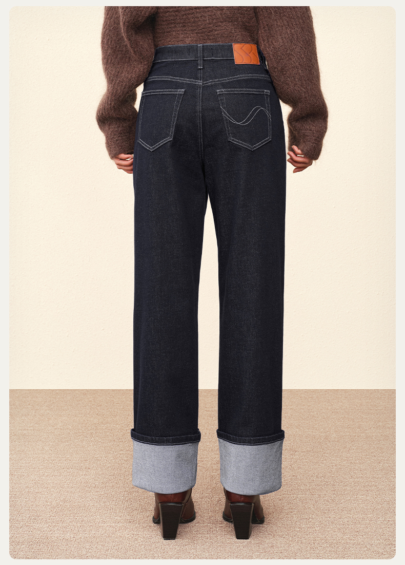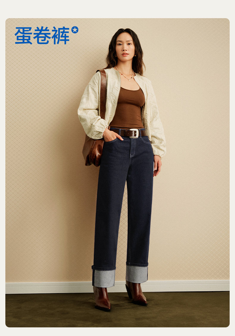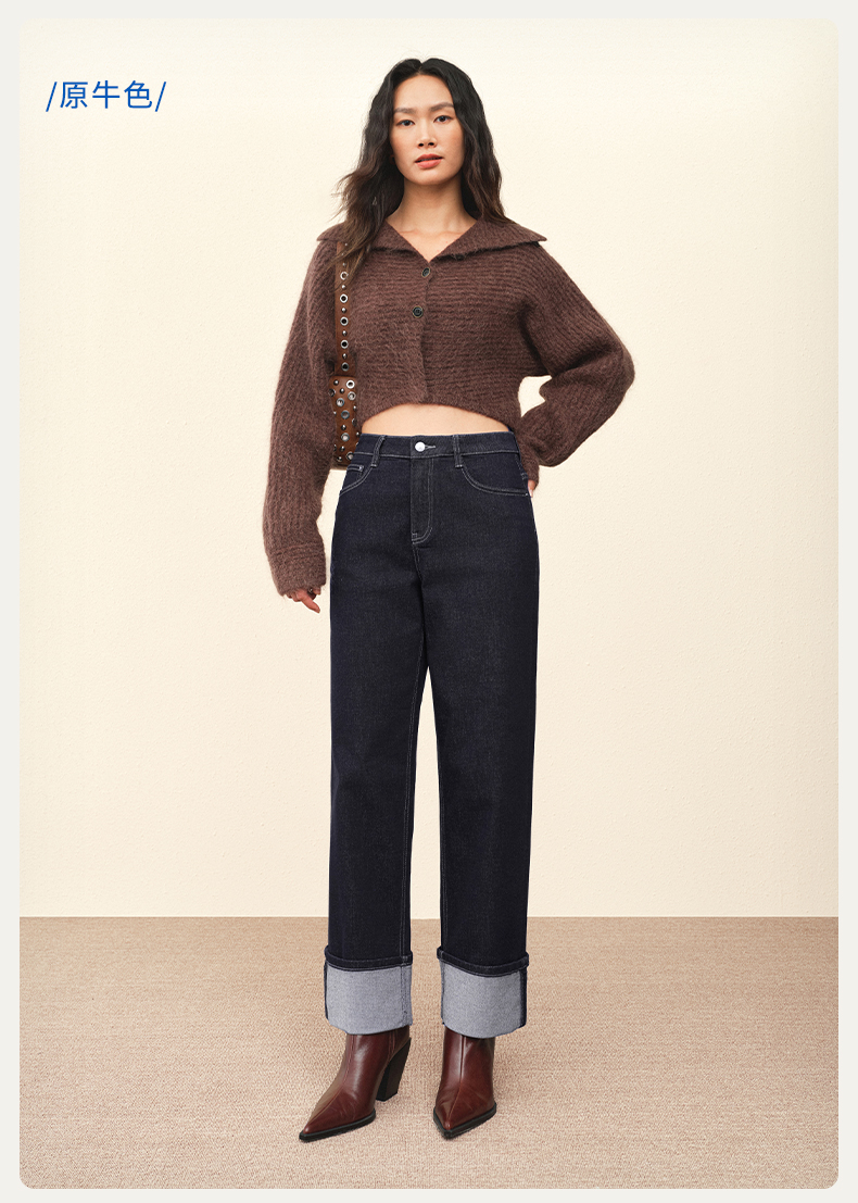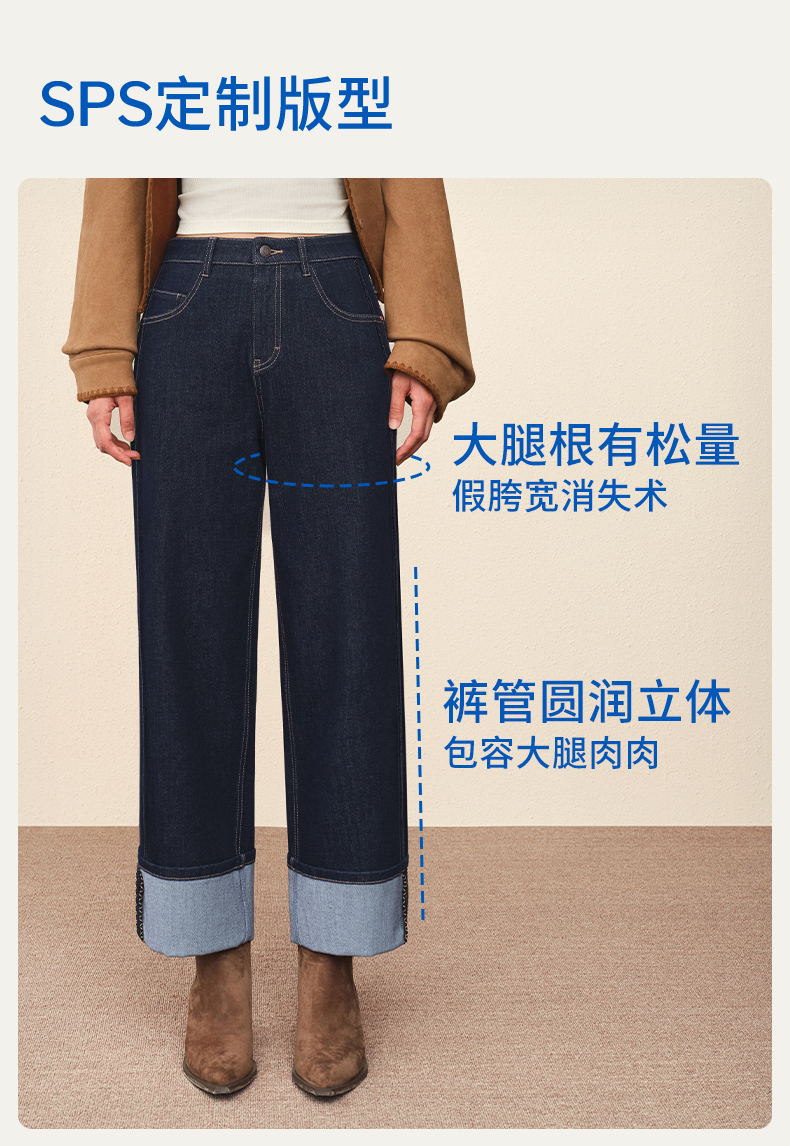 【原色宽松蛋卷裤】simplepieces秋SPS牛仔女原牛九分翻边直筒裤