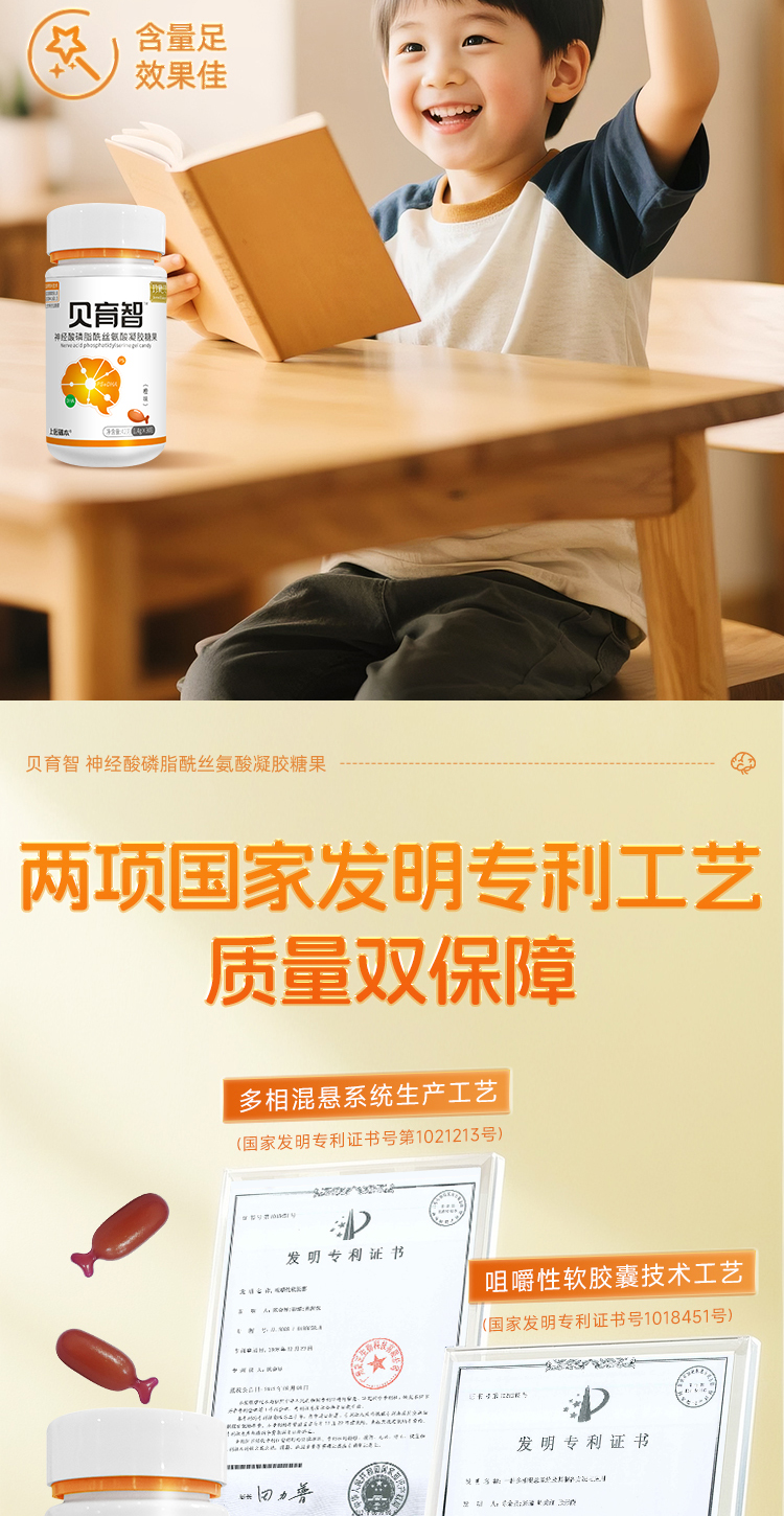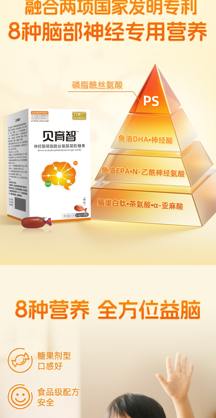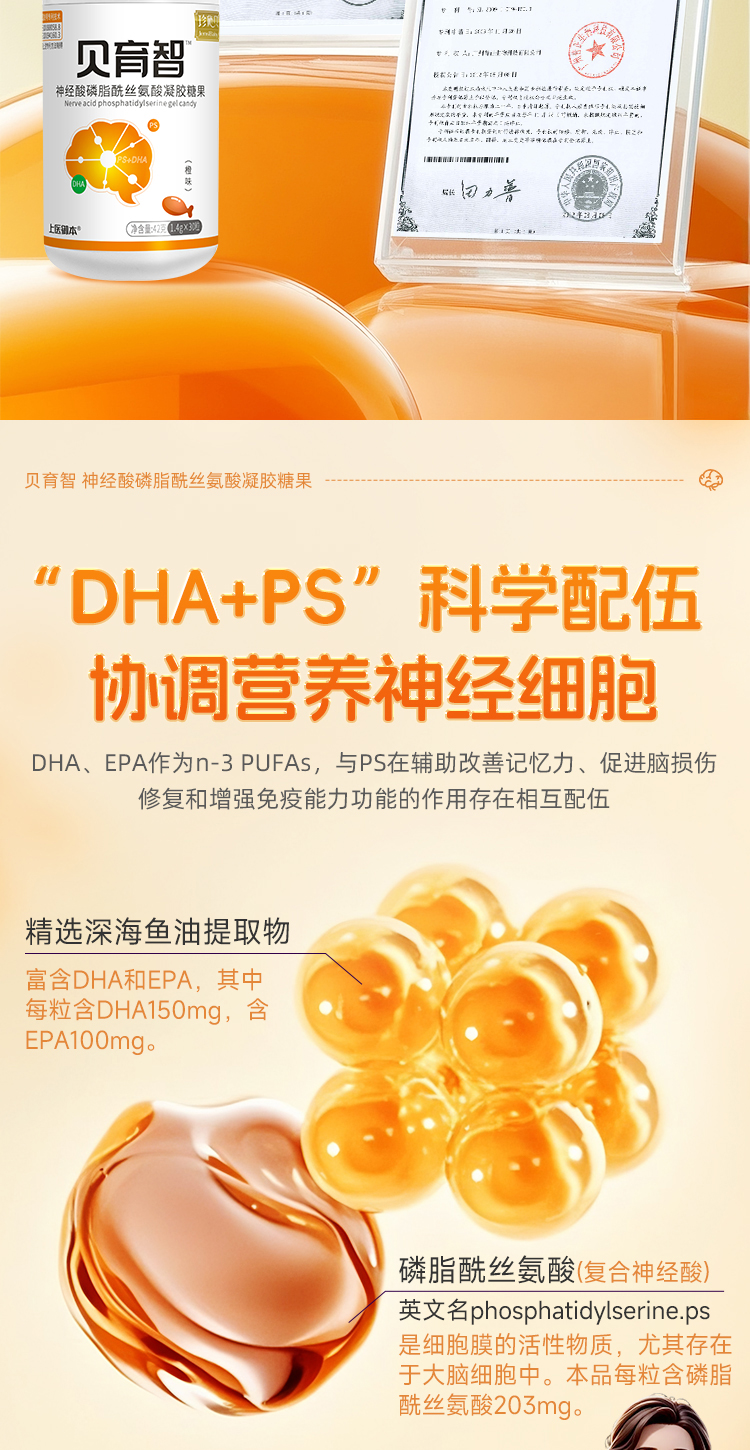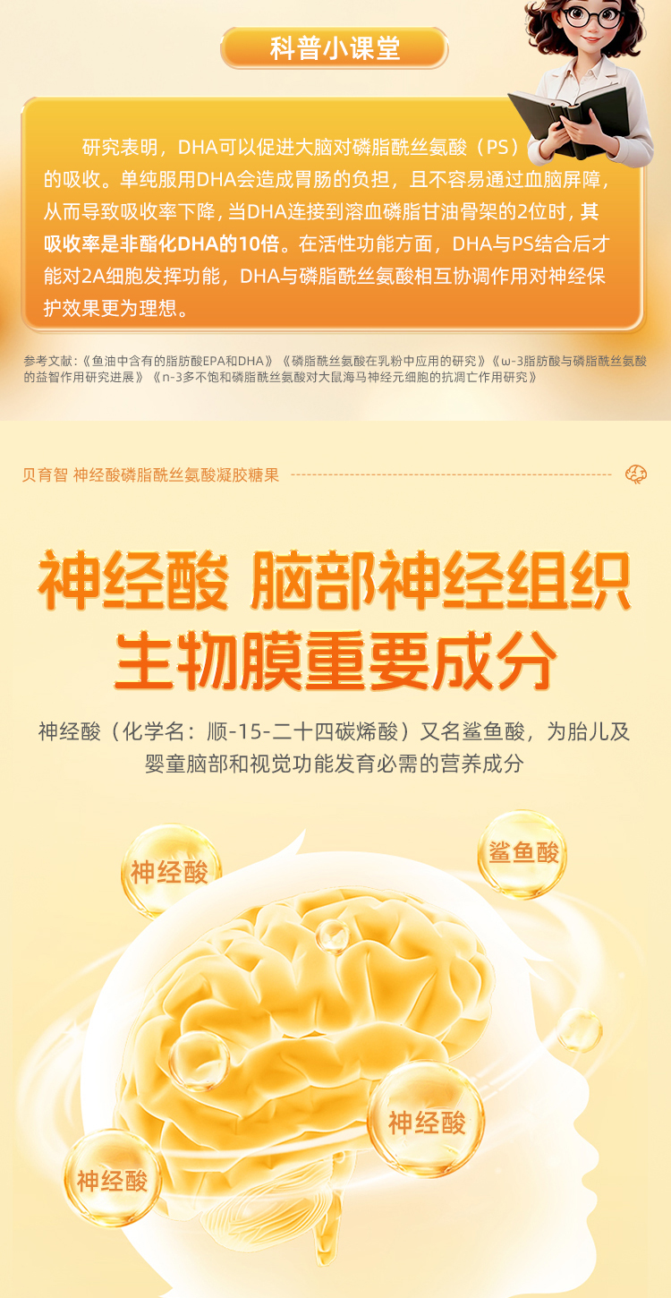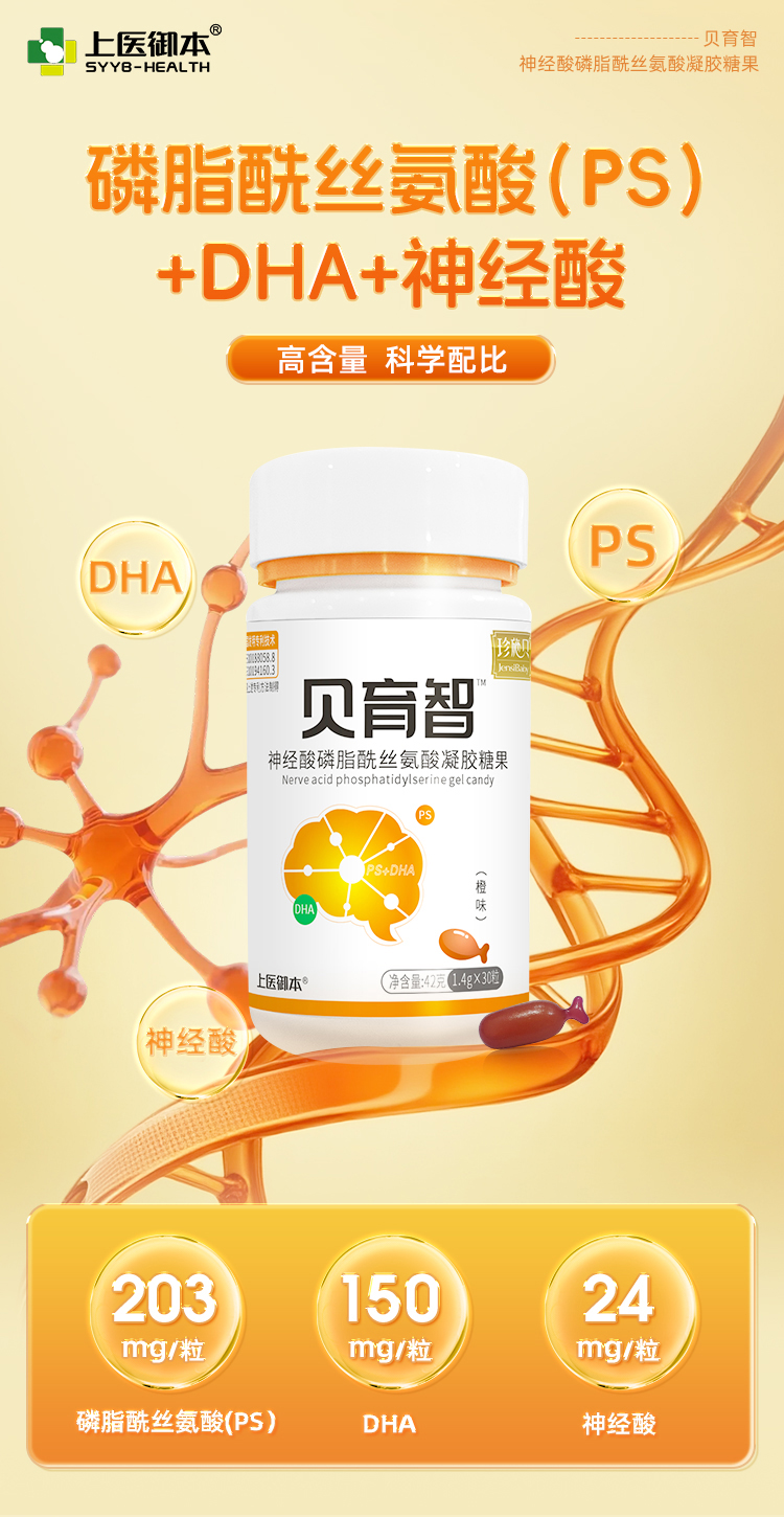 贝育智DHA磷酯酰丝氨酸高含量PS神经酸脑部营养发育多动抽动注意
