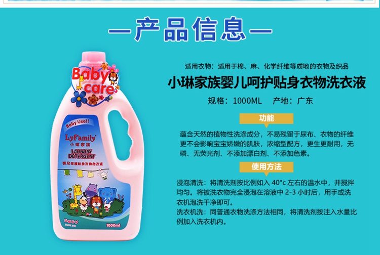 【小琳家族】婴儿呵护贴身衣物洗衣液 1kg/瓶 厂家直发