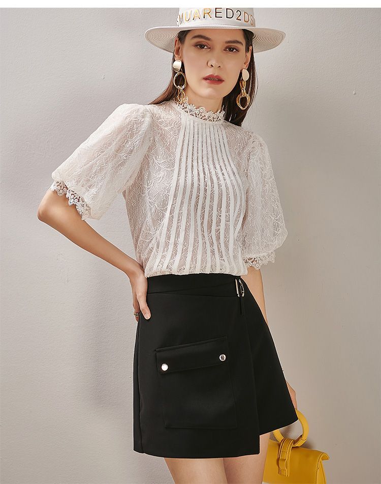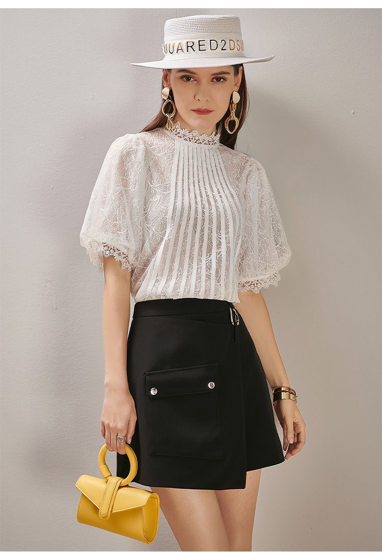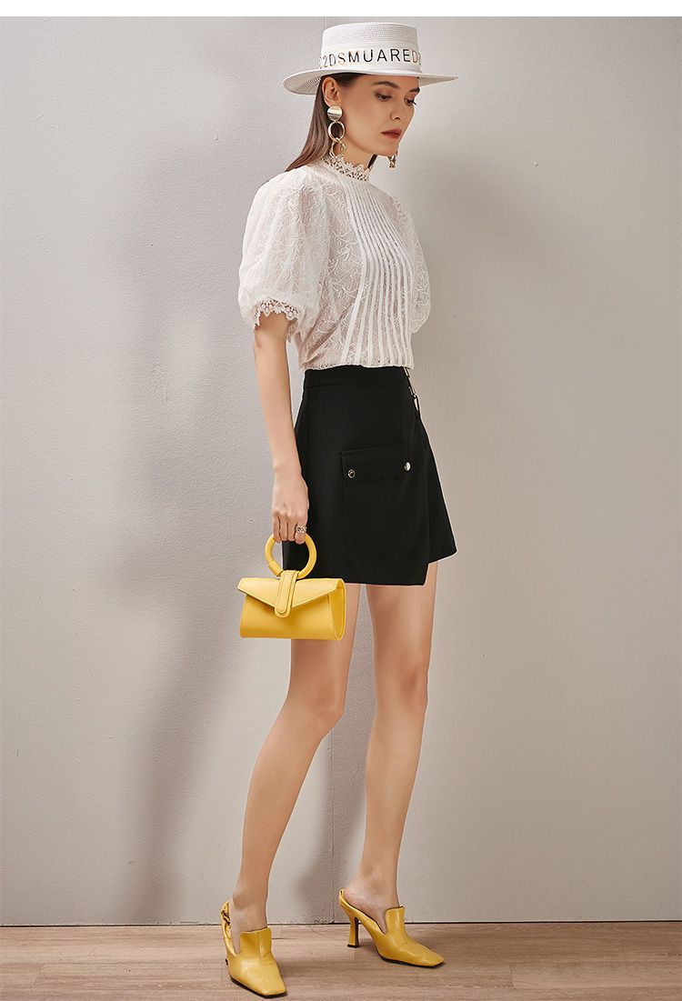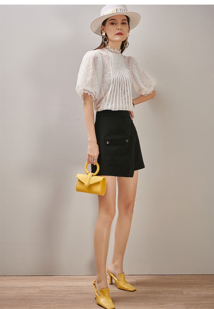 芳外 立体裁剪拼接新款立体拼接叠层设计口袋半半截裙8D21BI0924