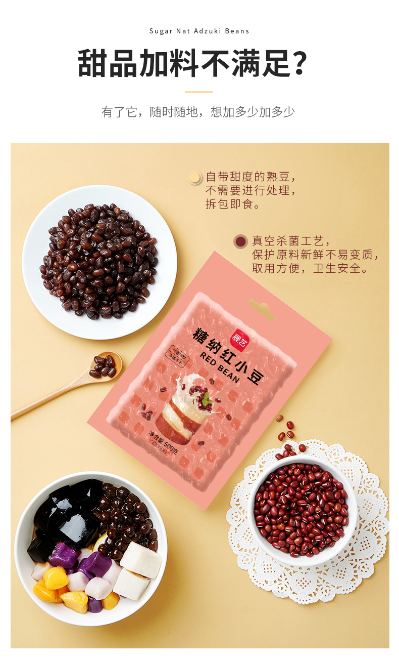 500g 展艺 糖纳红小豆 蜜豆沙馅即食馅料冰沙芋圆奶茶红豆