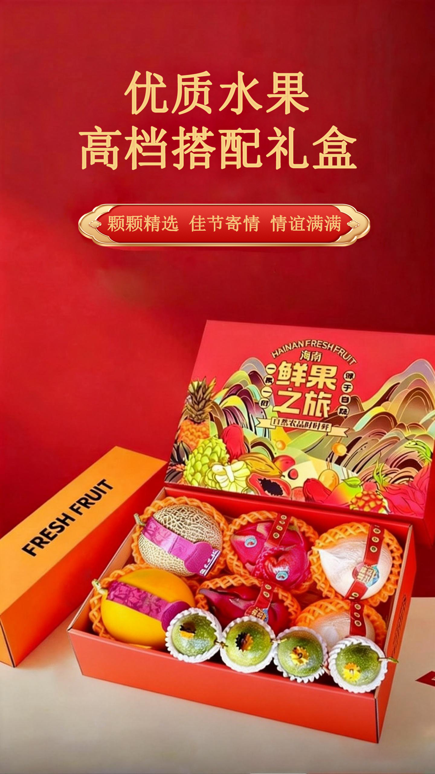 蜜瓜或海南芒果两个、红心火龙果两个、香水椰子两个、钦蜜九号百香果四个