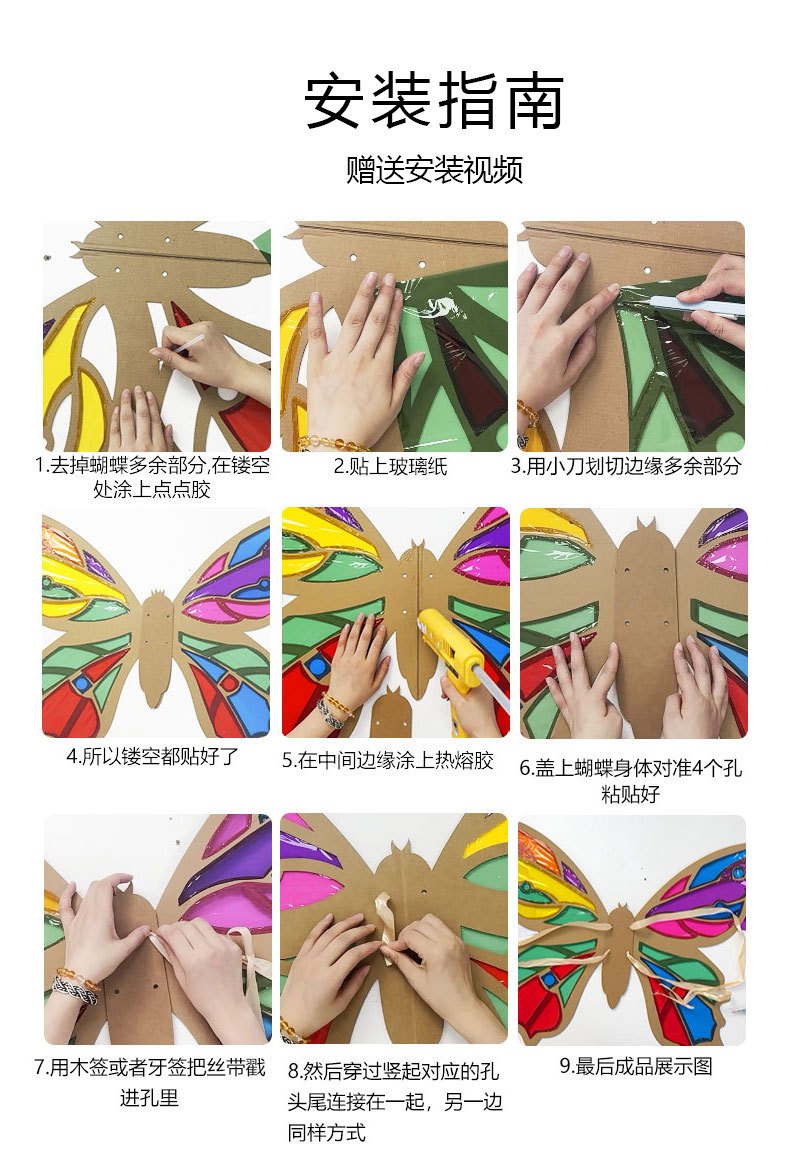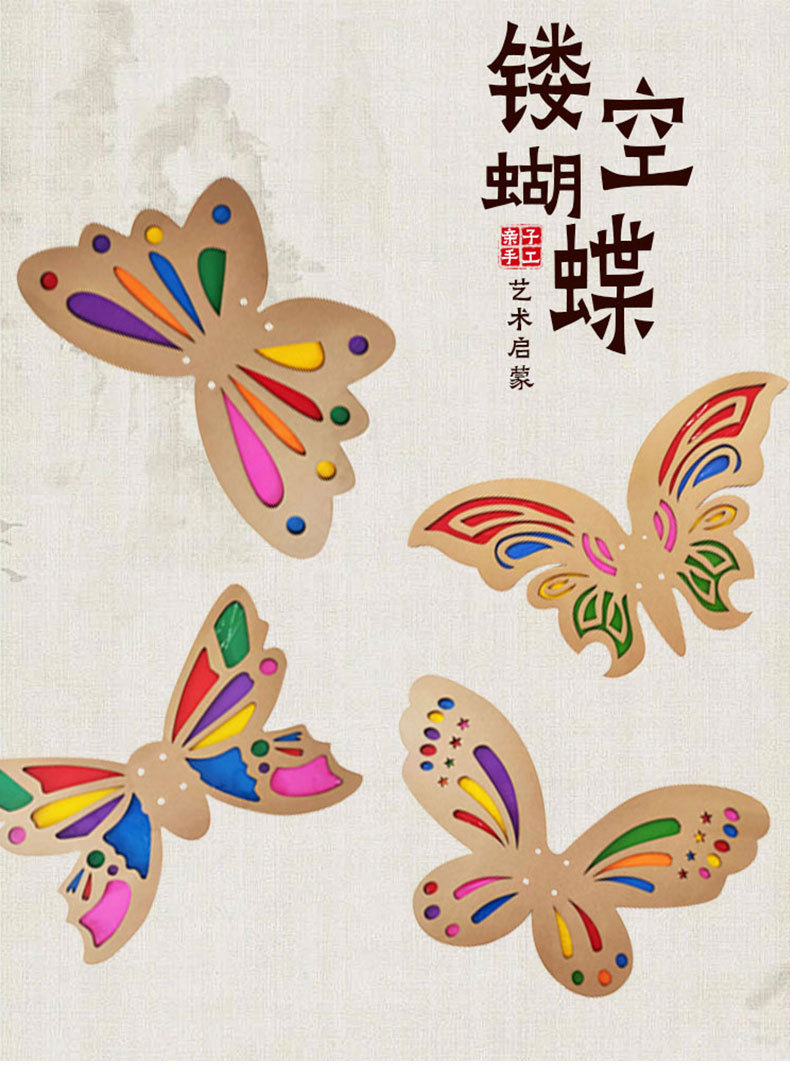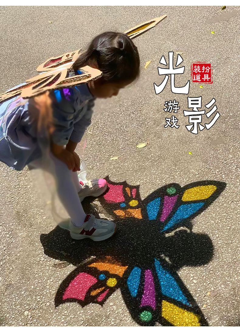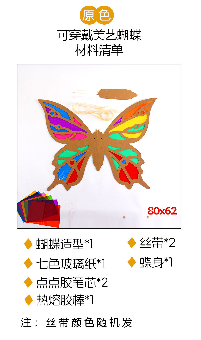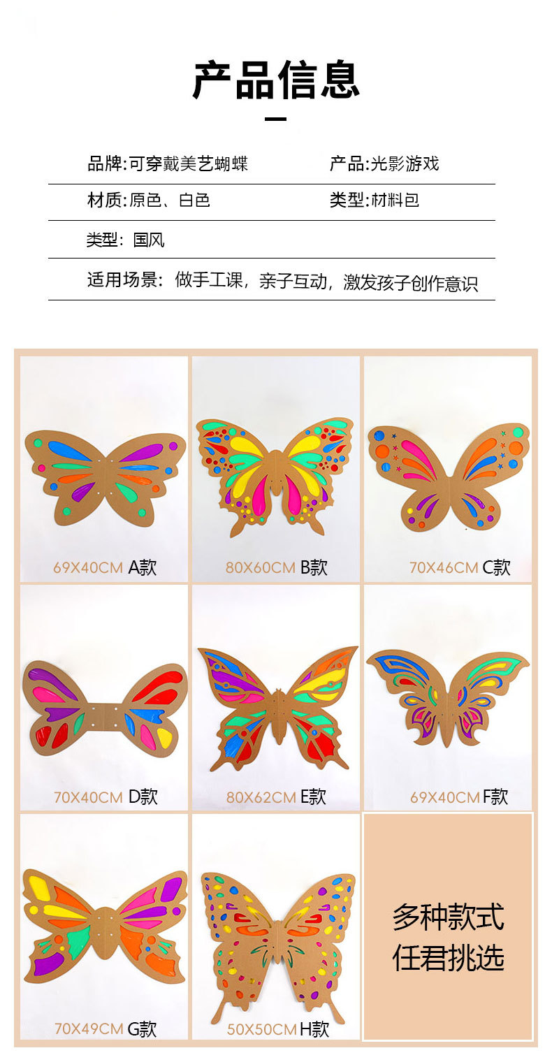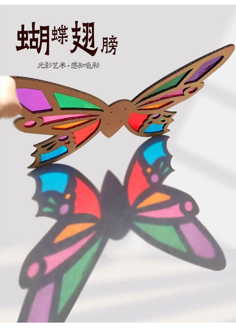 【赠安装视频】可穿戴美艺蝴蝶翅膀 镂空蝴蝶翅膀 光影游戏材料包 亲子互动 瓦楞纸板蝴蝶翅膀形状幼儿园学校表演手工DIY美术光影玻璃纸