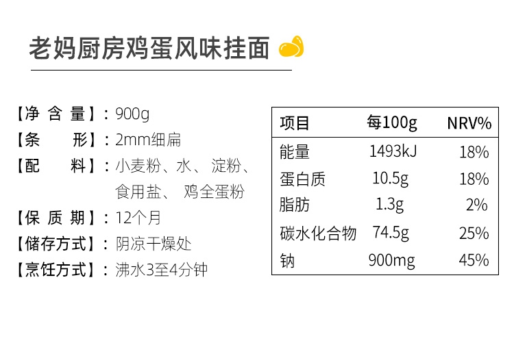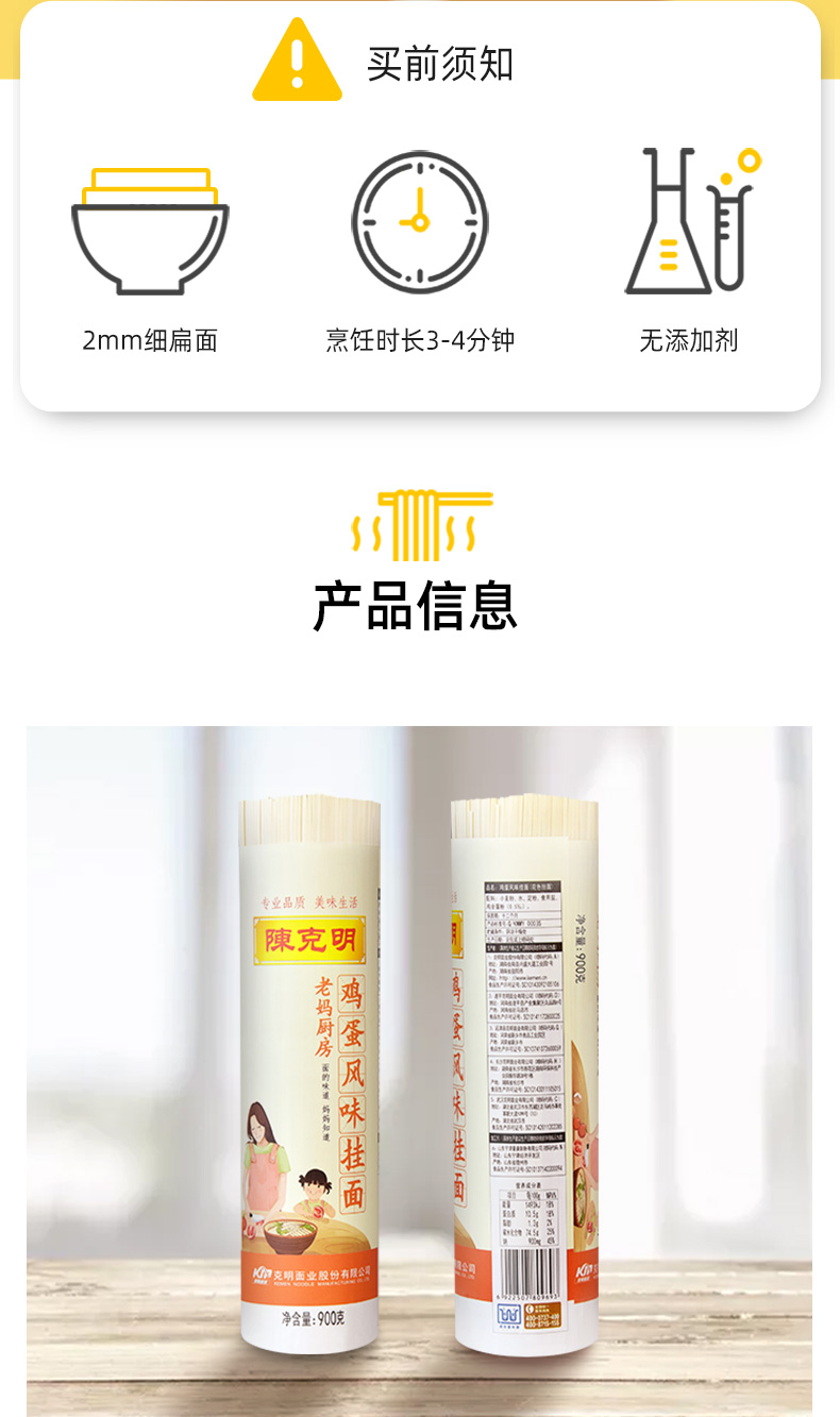 陈克明面条 老妈厨房鸡蛋风味挂面 挂面炸酱面拌面拉面营养挂面 900g