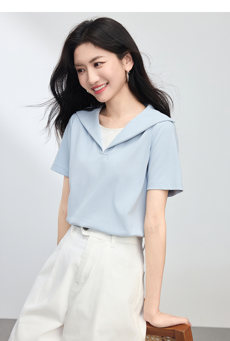 【专属特价】熙世界高级感蓝白条纹衬衫女短袖2025夏季新款学院风法式别致衬衣