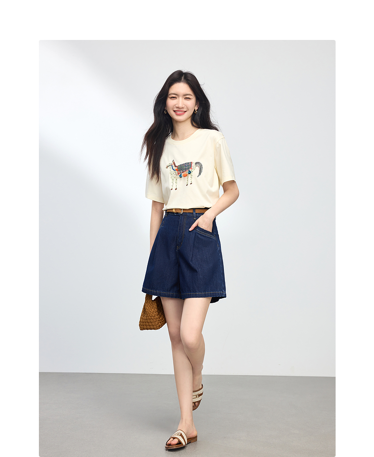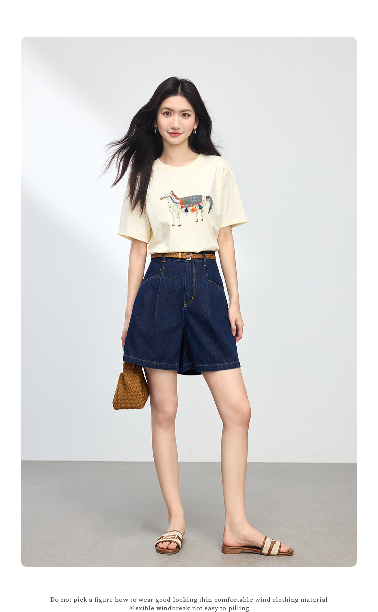 熙世界复古牛仔短裤女高腰显瘦夏季新款宽松休闲a字阔腿五分裤子