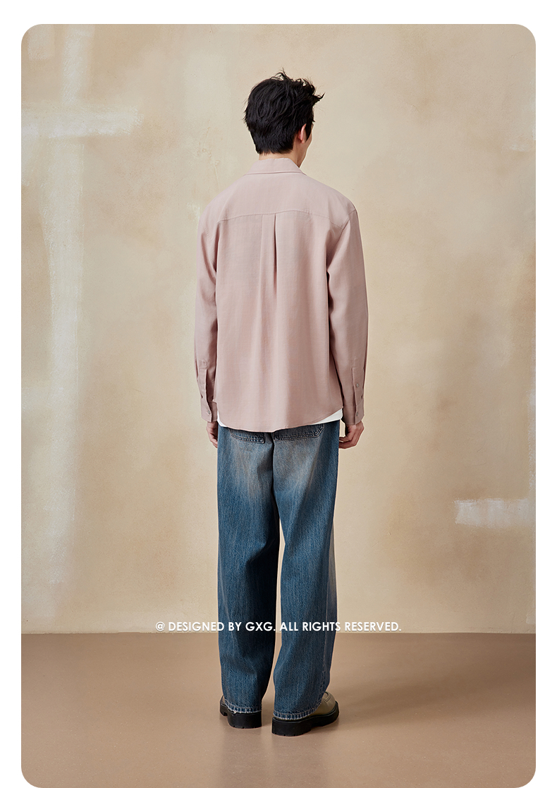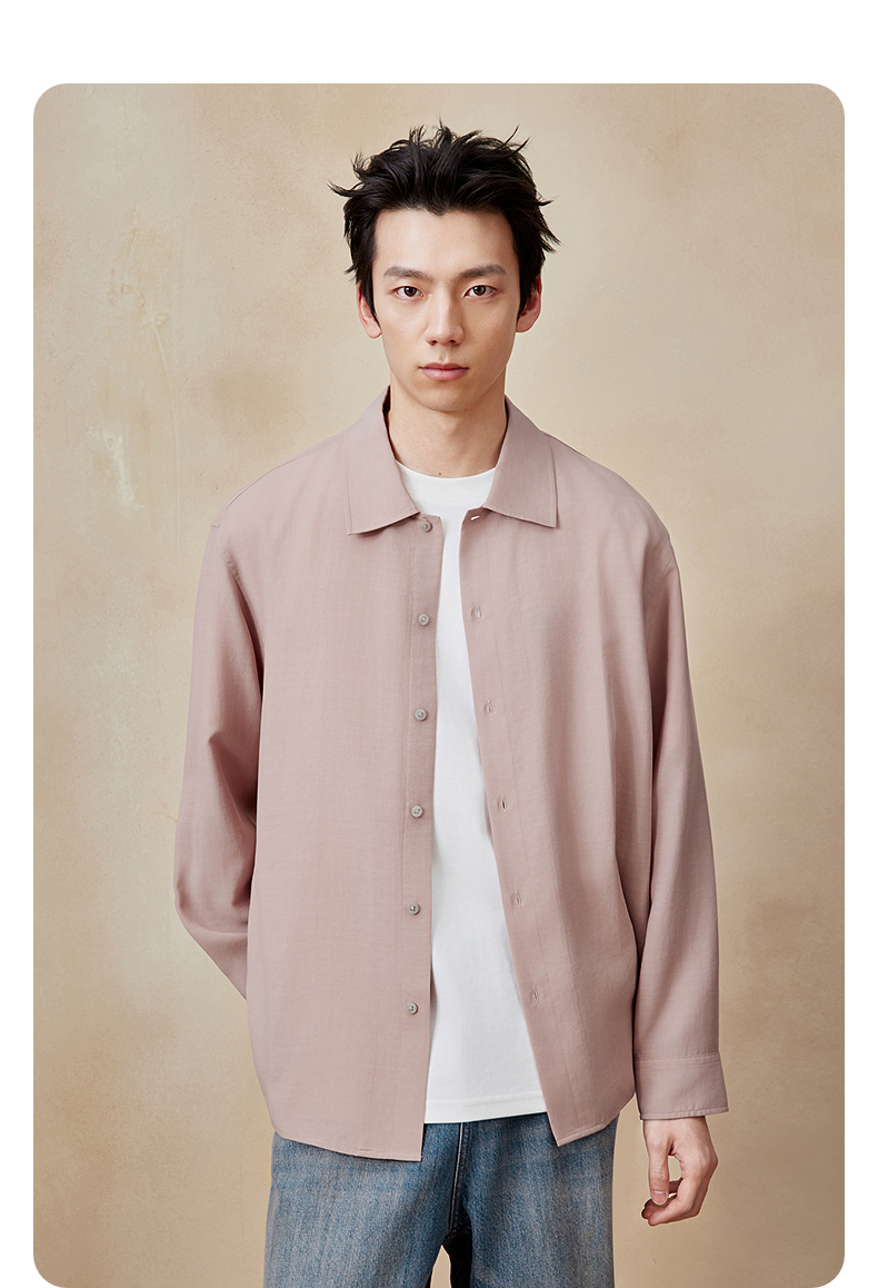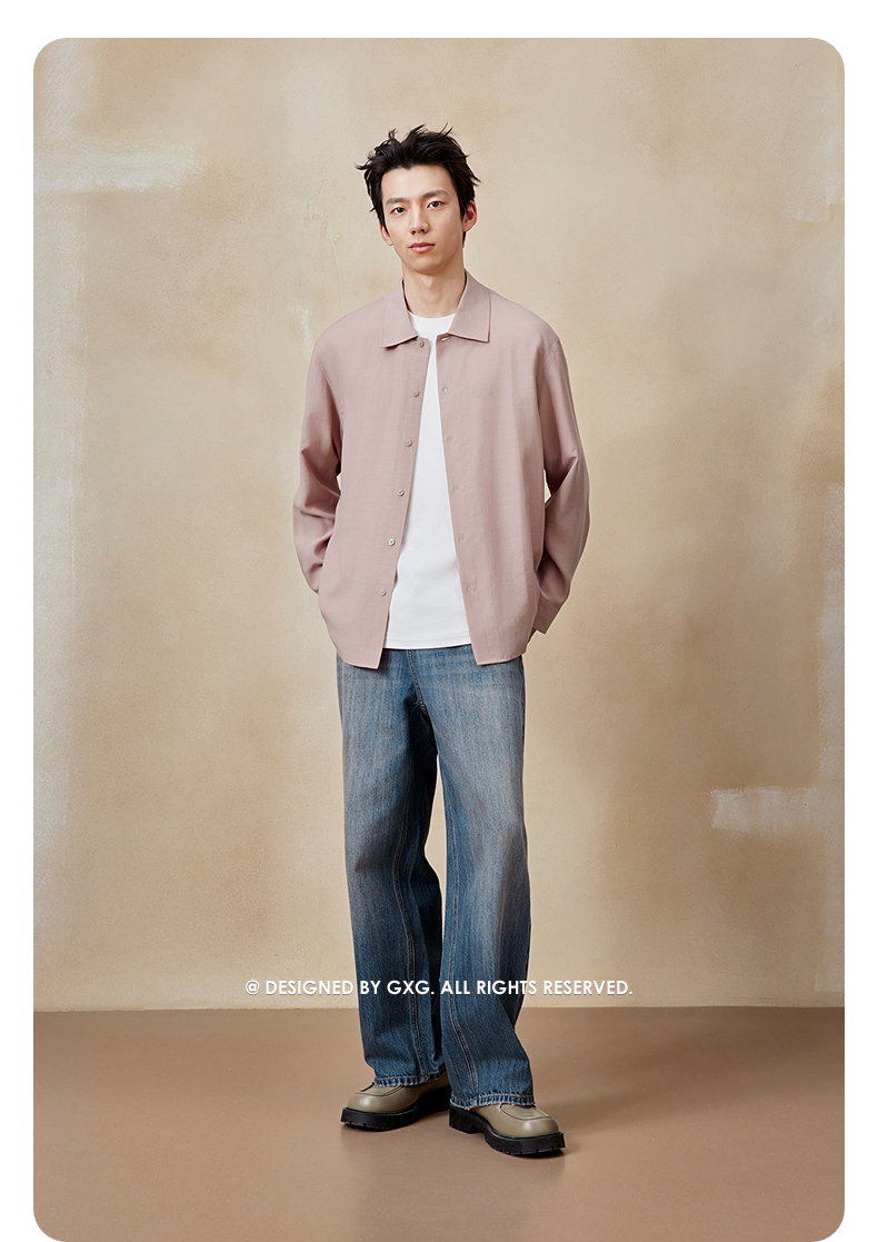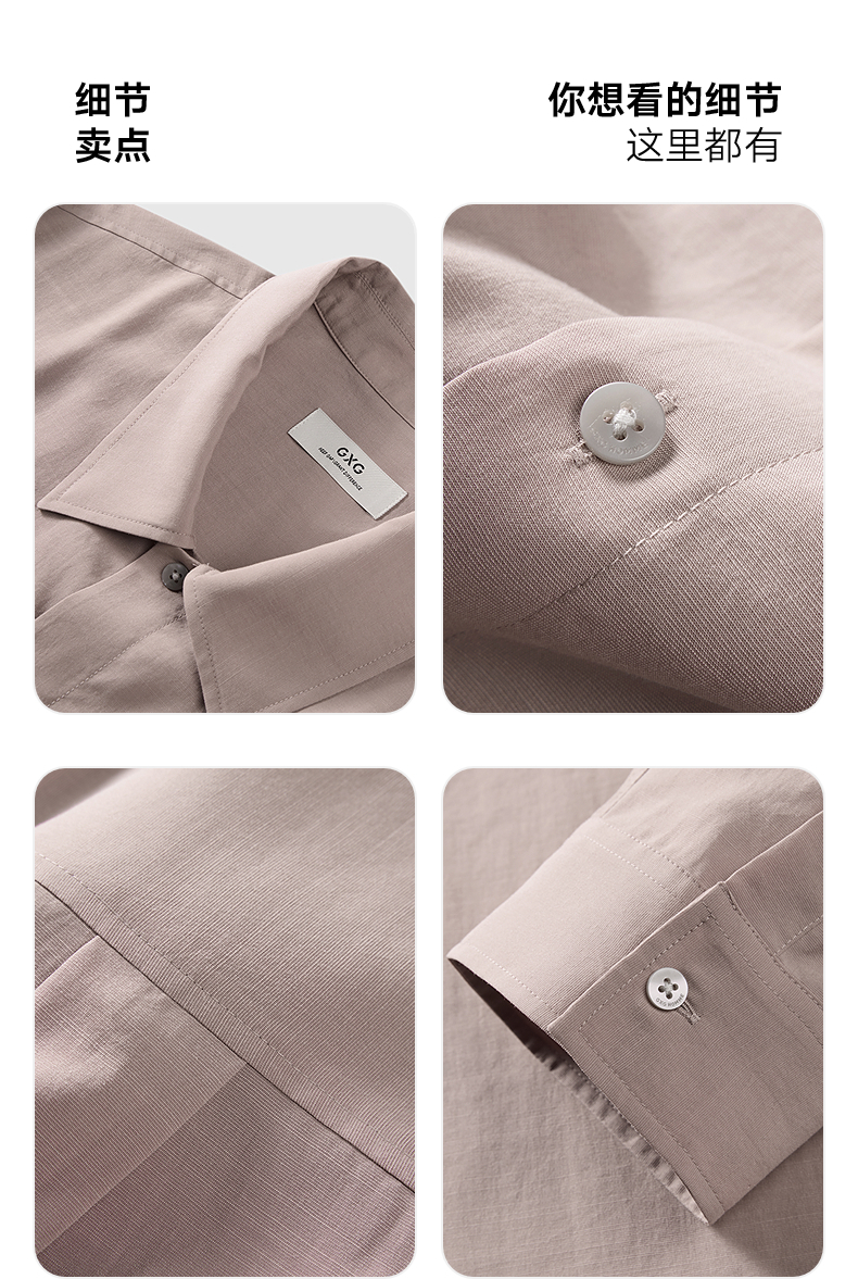 GXG男装 灰粉长袖衬衫休闲简约衬衣男外套25年夏季热卖G25X032036