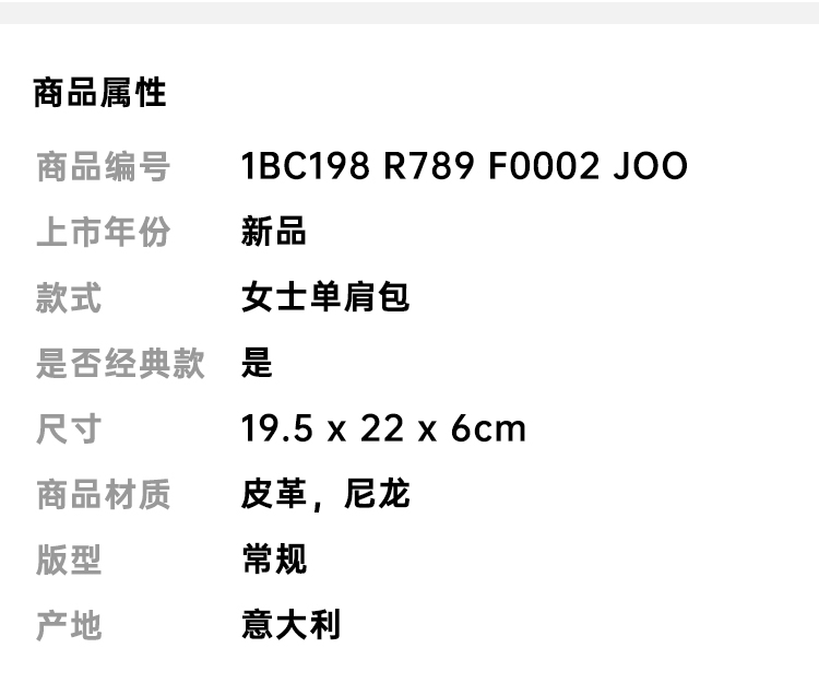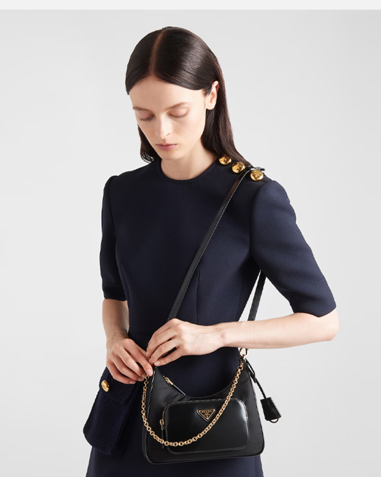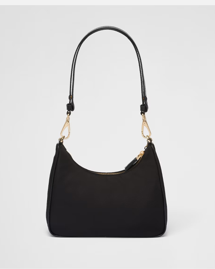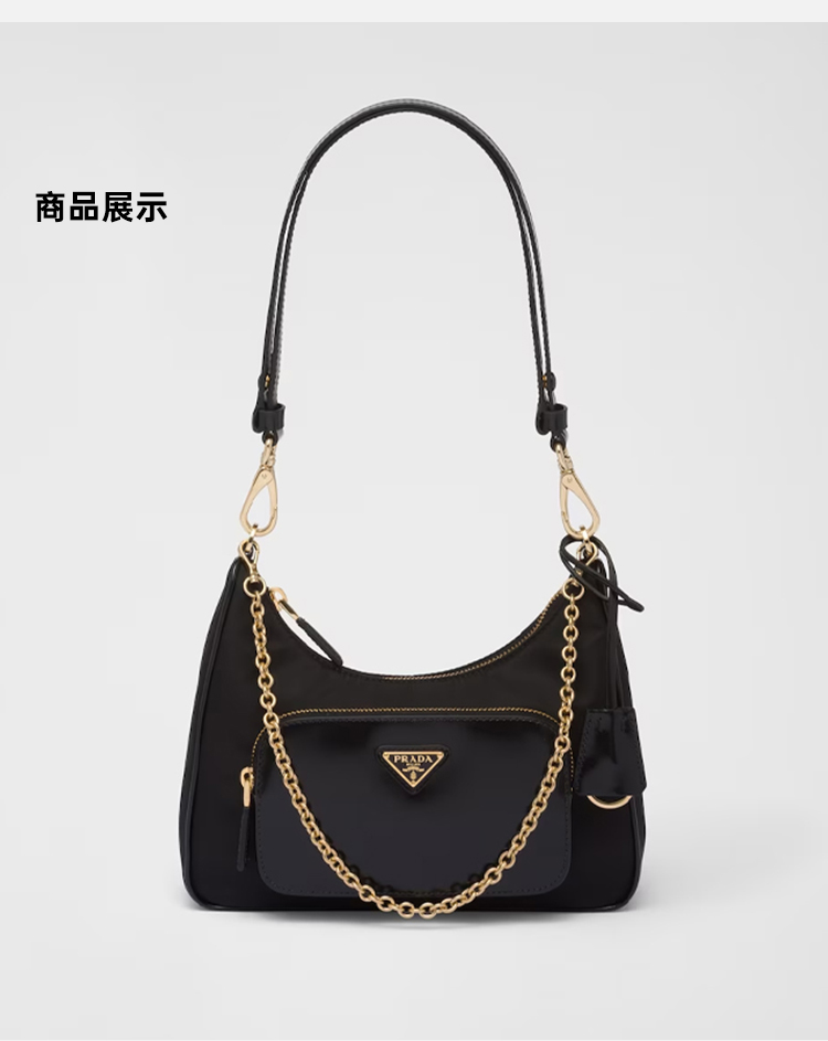 PRADA 普拉达 女士Re-Nylon与亮面皮革珐琅金属三角徽标迷你单肩包 黑色 1BC198 R789 F0002 JOO