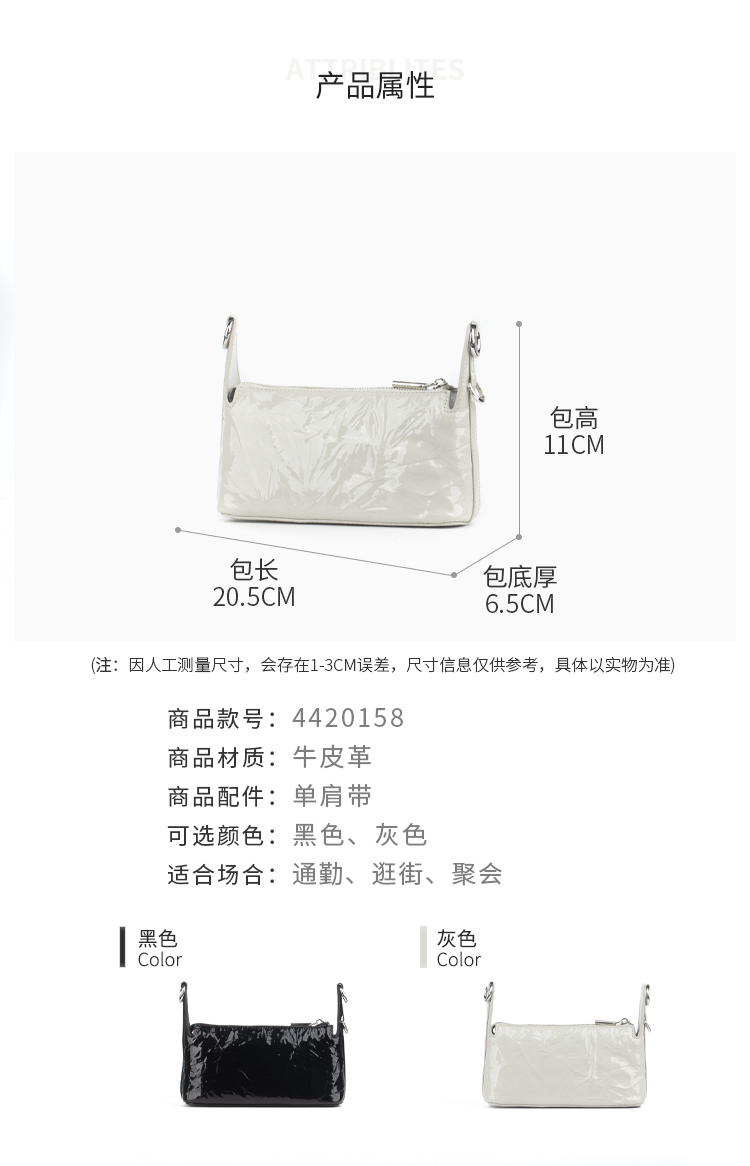 和诚行 2025新款时尚褶皱百搭单肩包女通勤休闲腋下包4420158