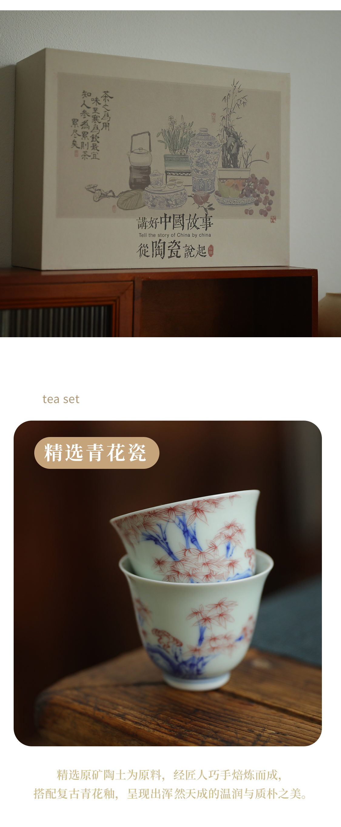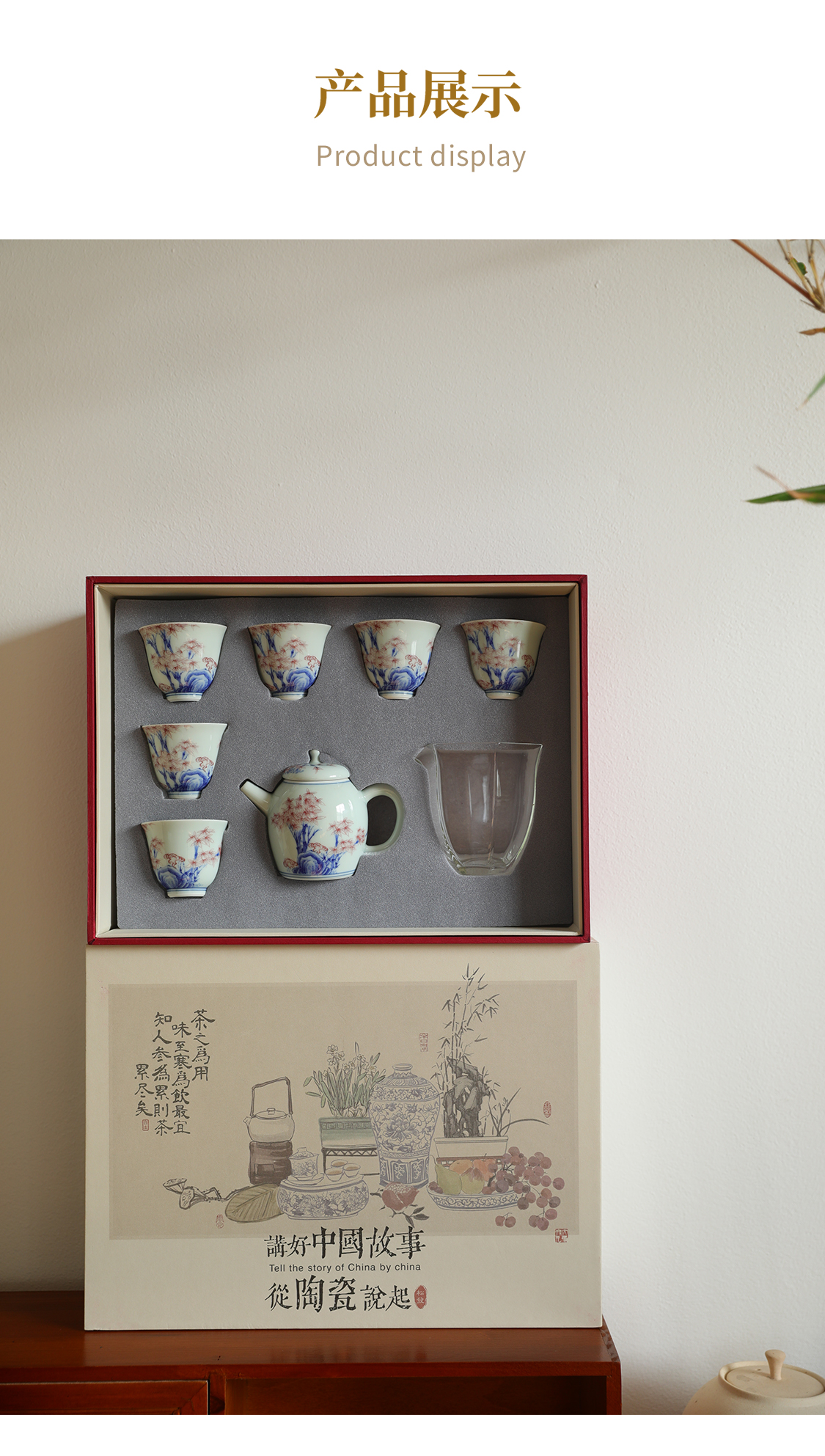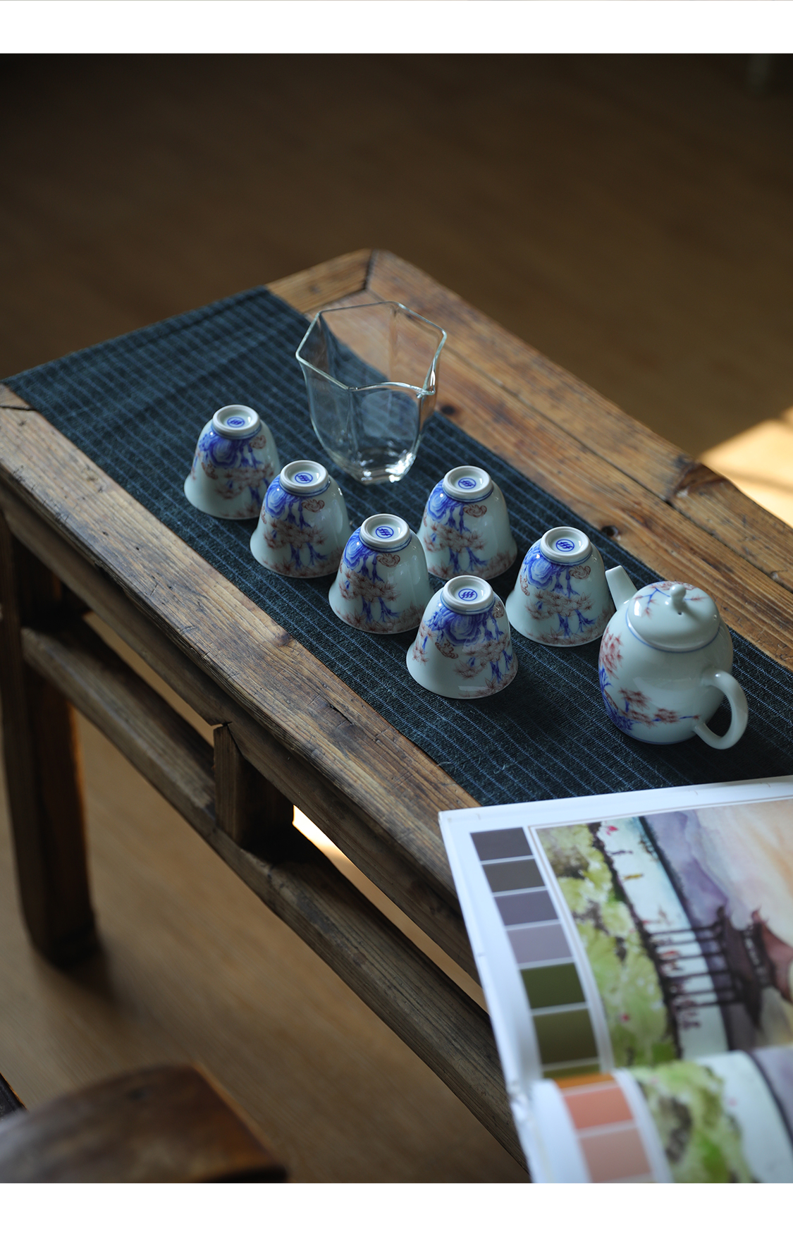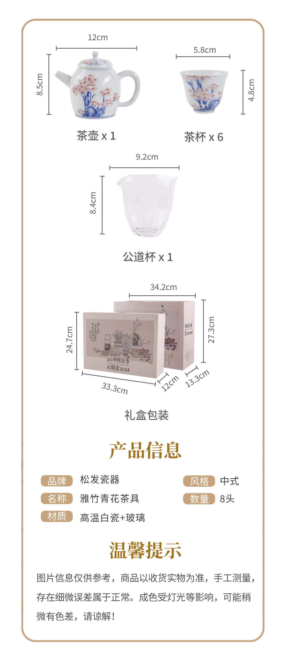 8头雅竹青花茶具