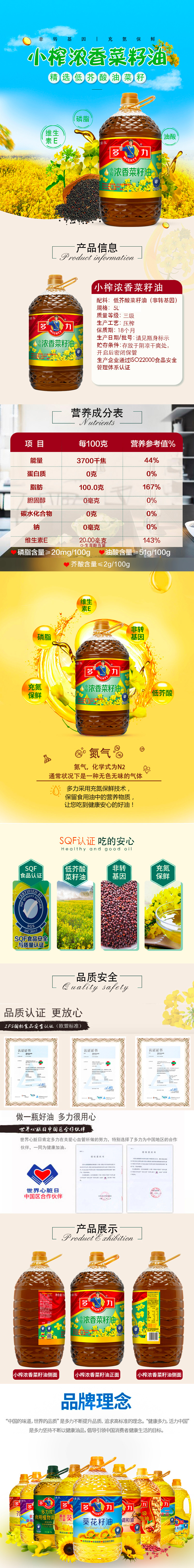 多力浓香菜籽油5L