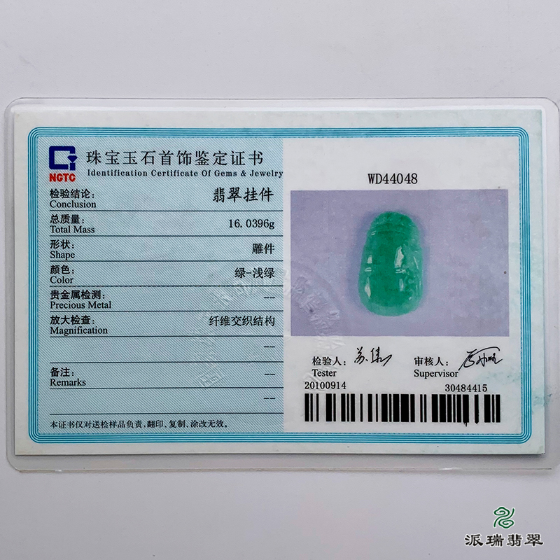 派瑞翡翠 翡翠挂件 糯种 绿色