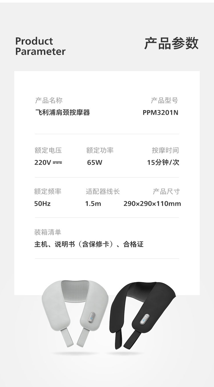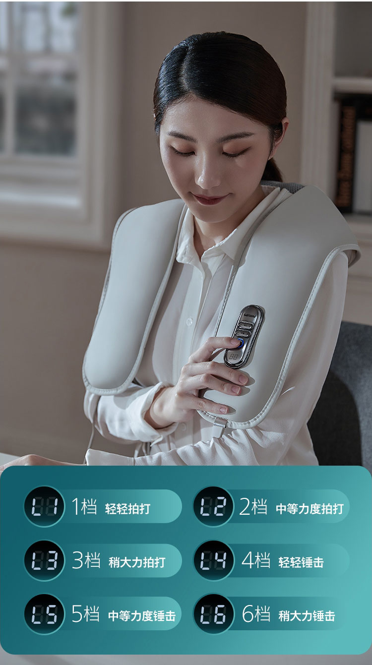 飞利浦按摩披肩部颈部背部颈椎热敷按摩器老人敲捶打肩颈仪捶背器-PPM3201N