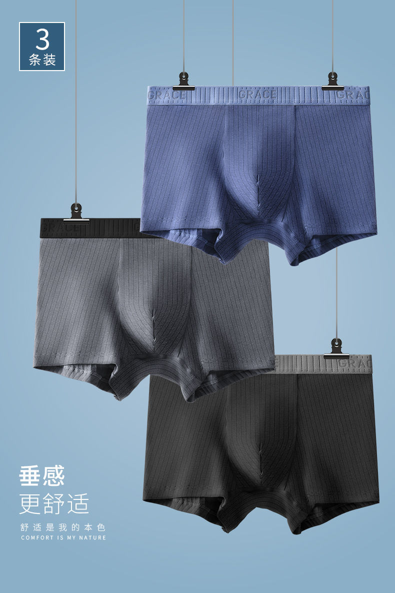 洁丽雅男士内裤纯棉透气中腰舒适平角裤学生春夏季新款吸汗裤衩